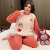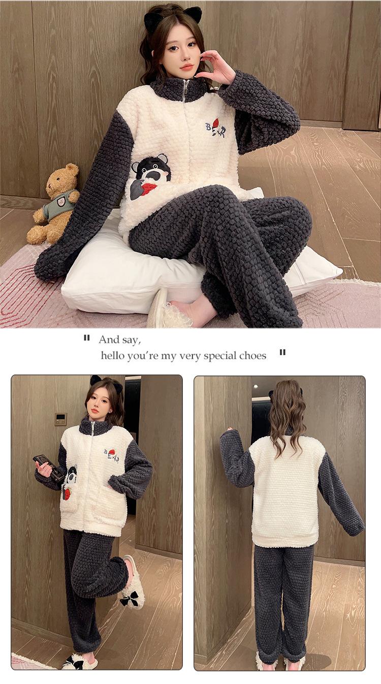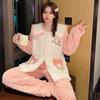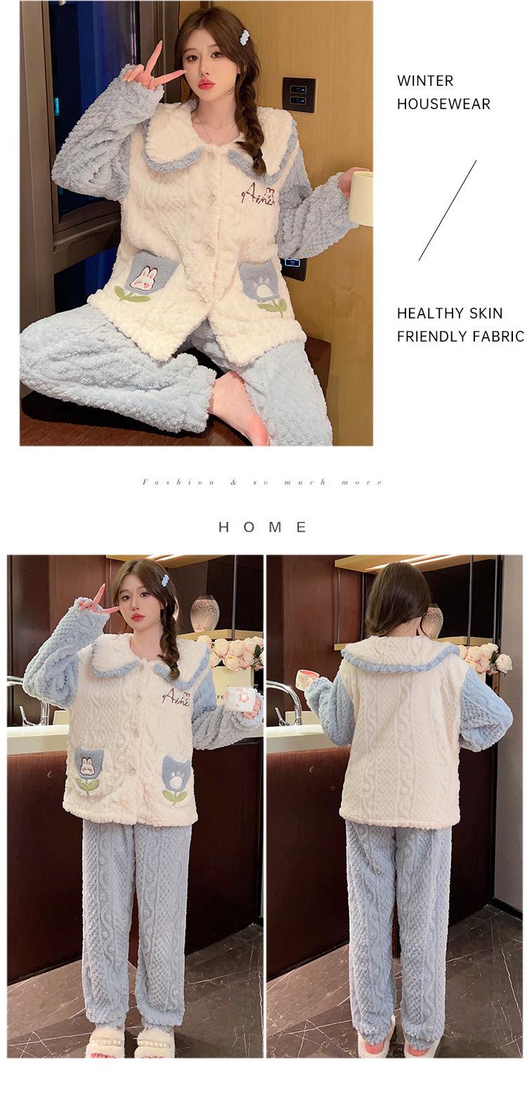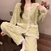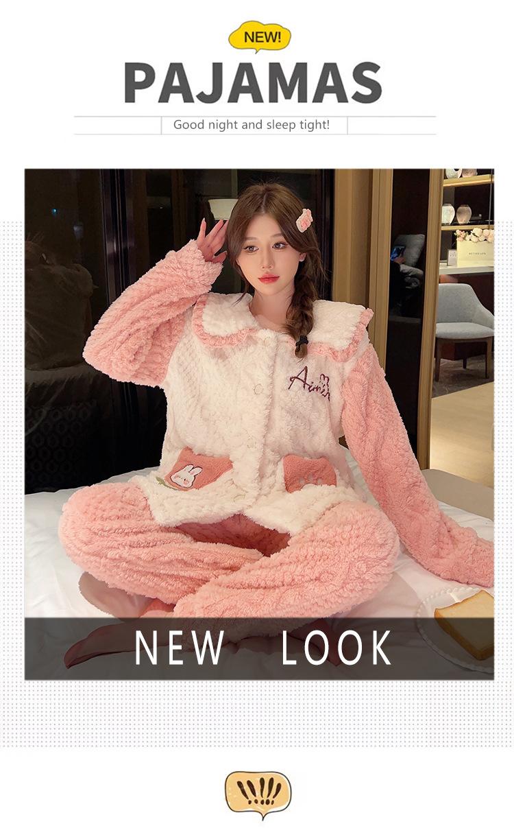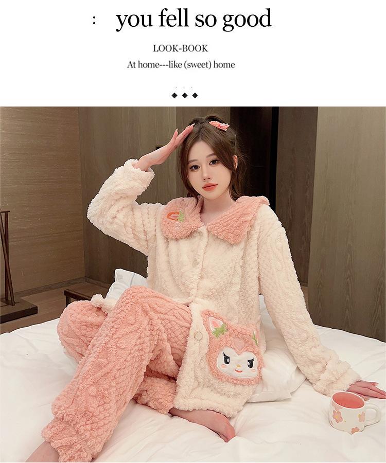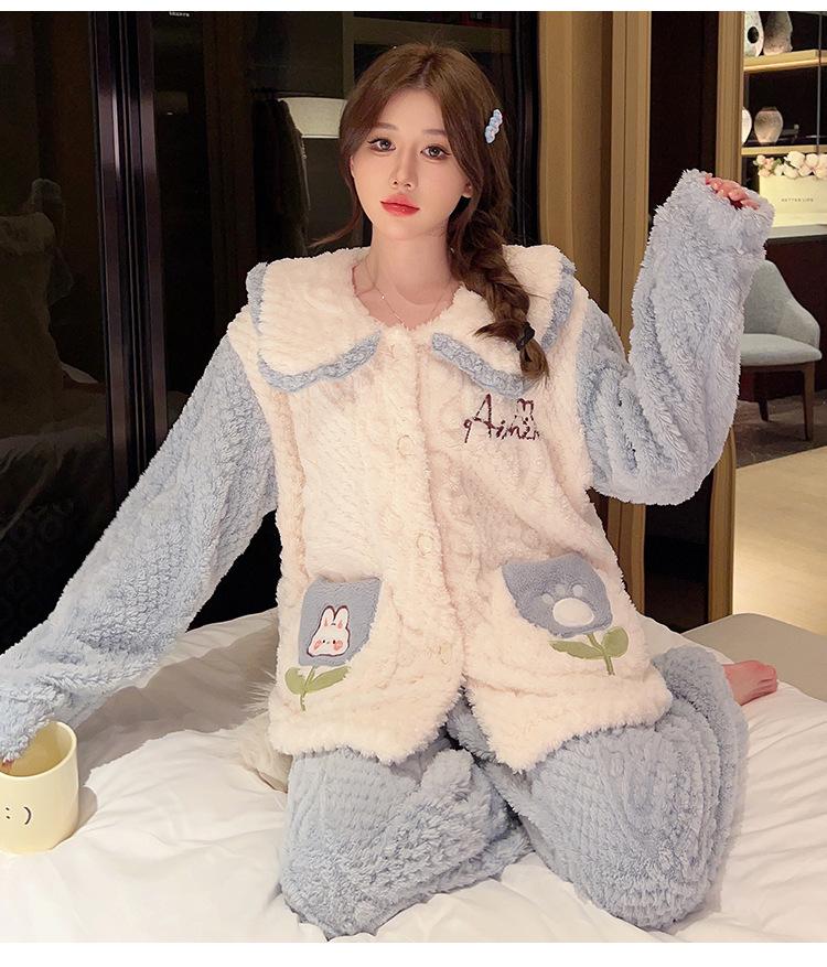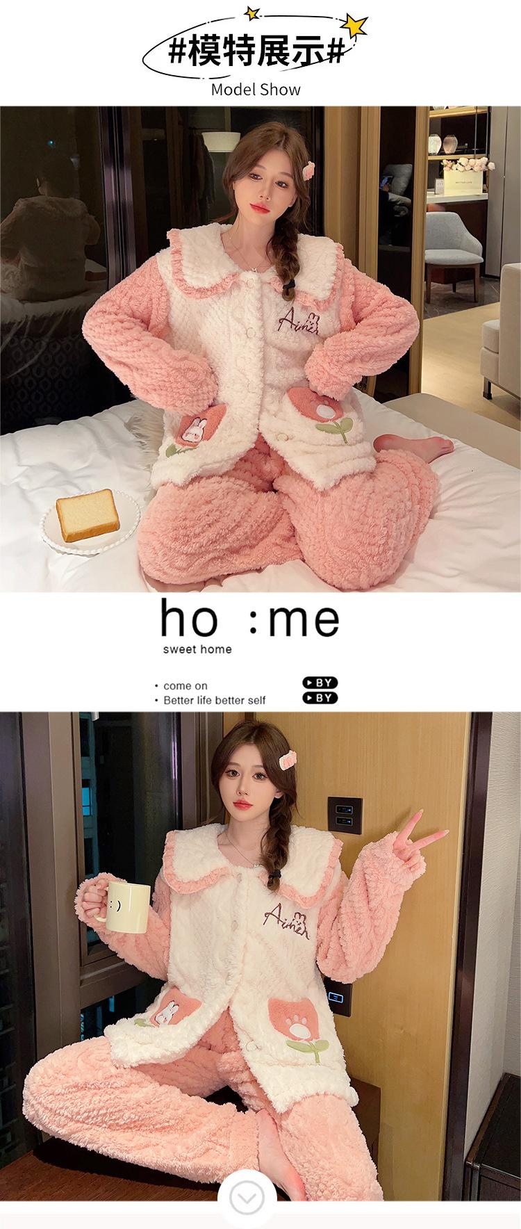Pijama de otoño e invierno para mujer, felpa dulce, cárdigan, pantalones de manga larga, forro polar de coral, talla grande para chica gordita, ropa para el hogar