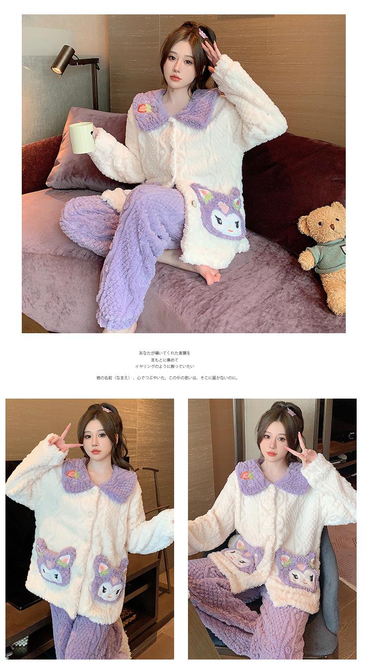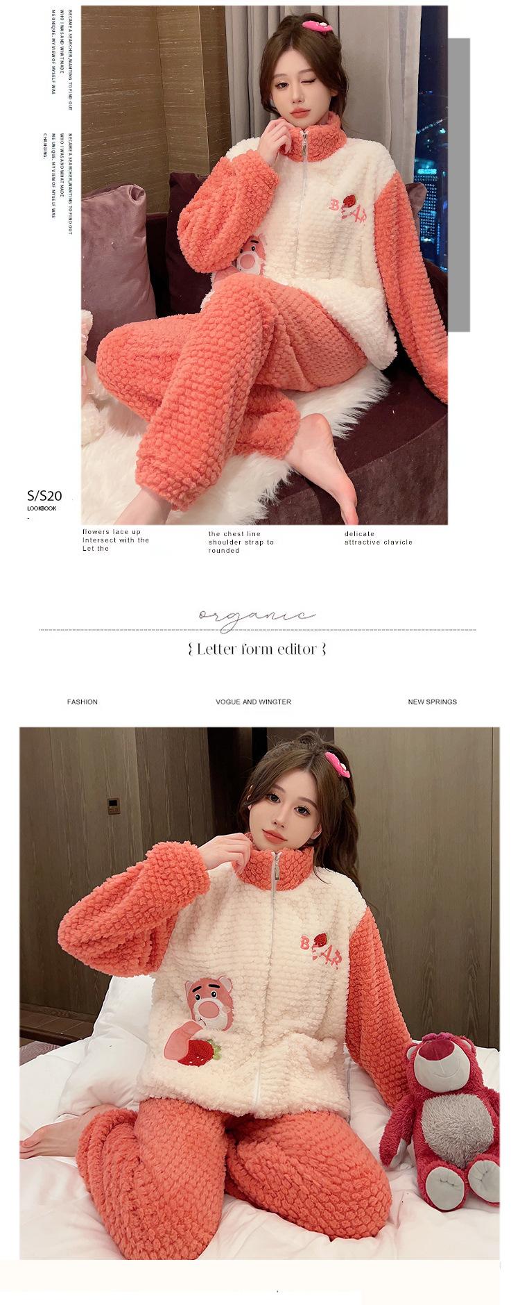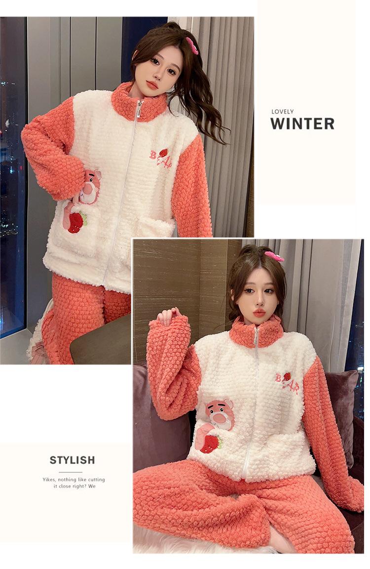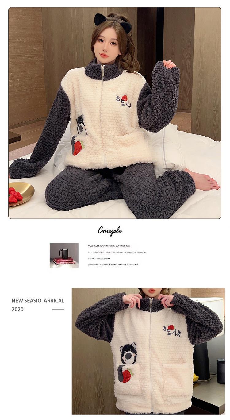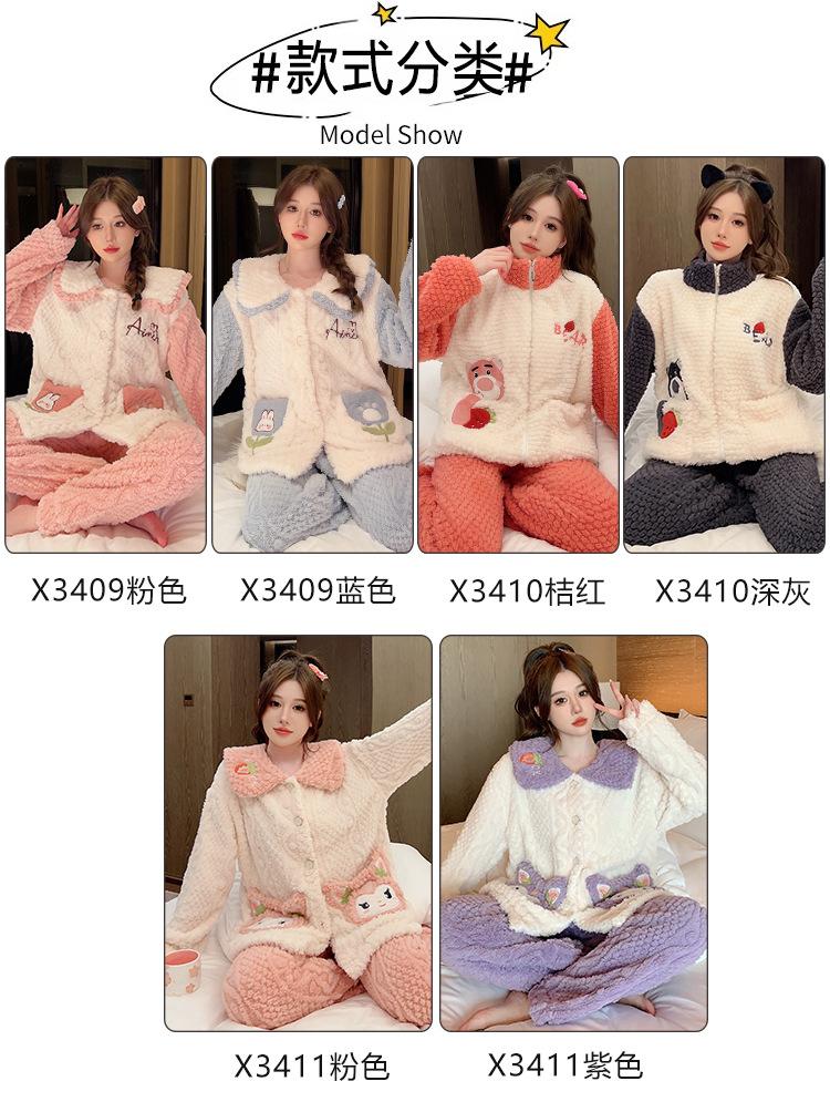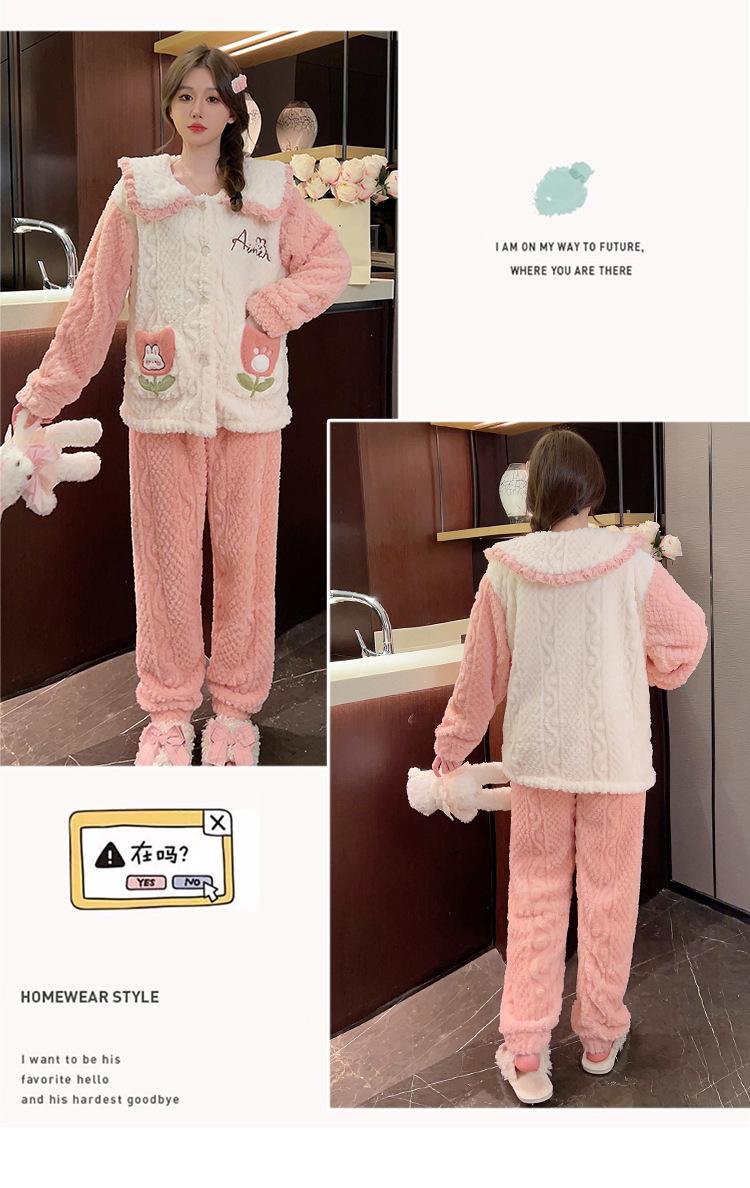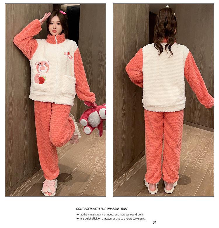 Pijama de otoño e invierno para mujer, felpa dulce, cárdigan, pantalones de manga larga, forro polar de coral, talla grande para chica gordita, ropa para el hogar