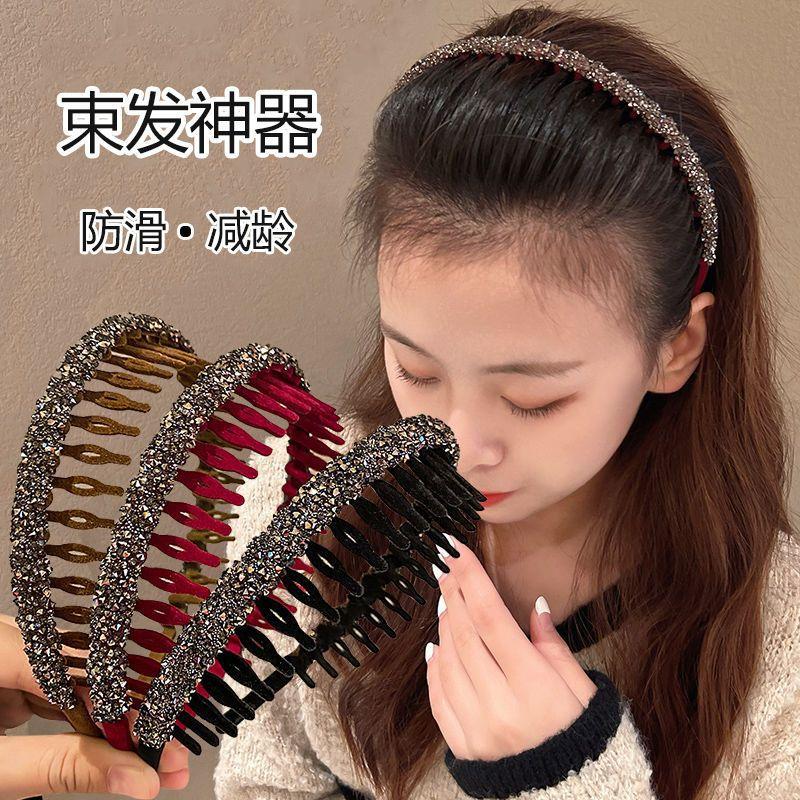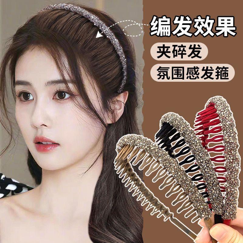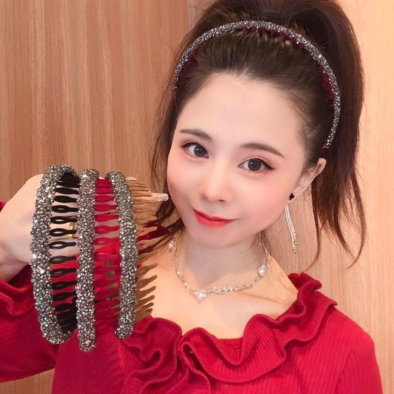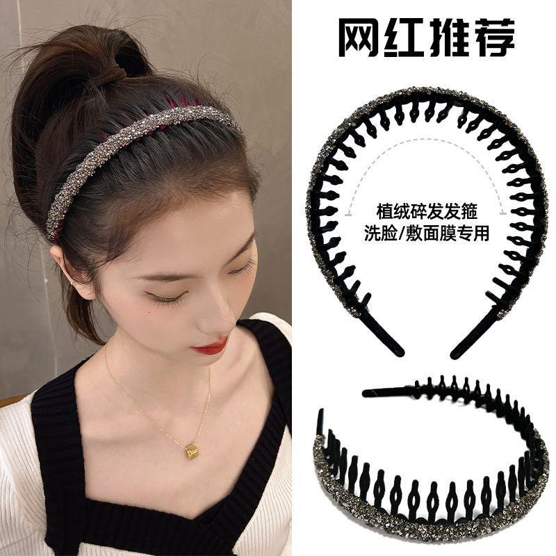Diadema dentada de nuevo estilo con flequillo de red roja para cabello roto, diadema de moda a prueba de humedad, tocado para lavarse la cara, diadema ondulada, accesorios para el cabello