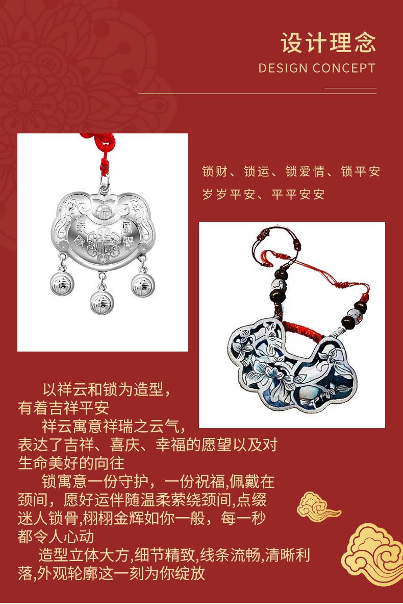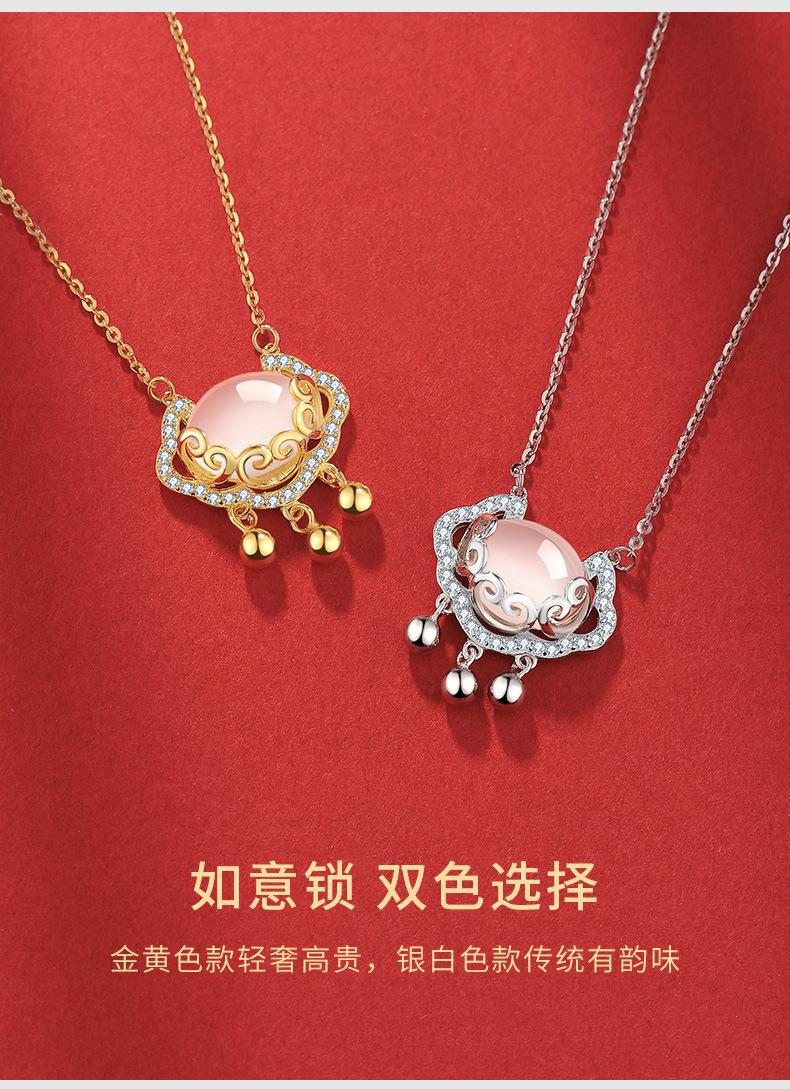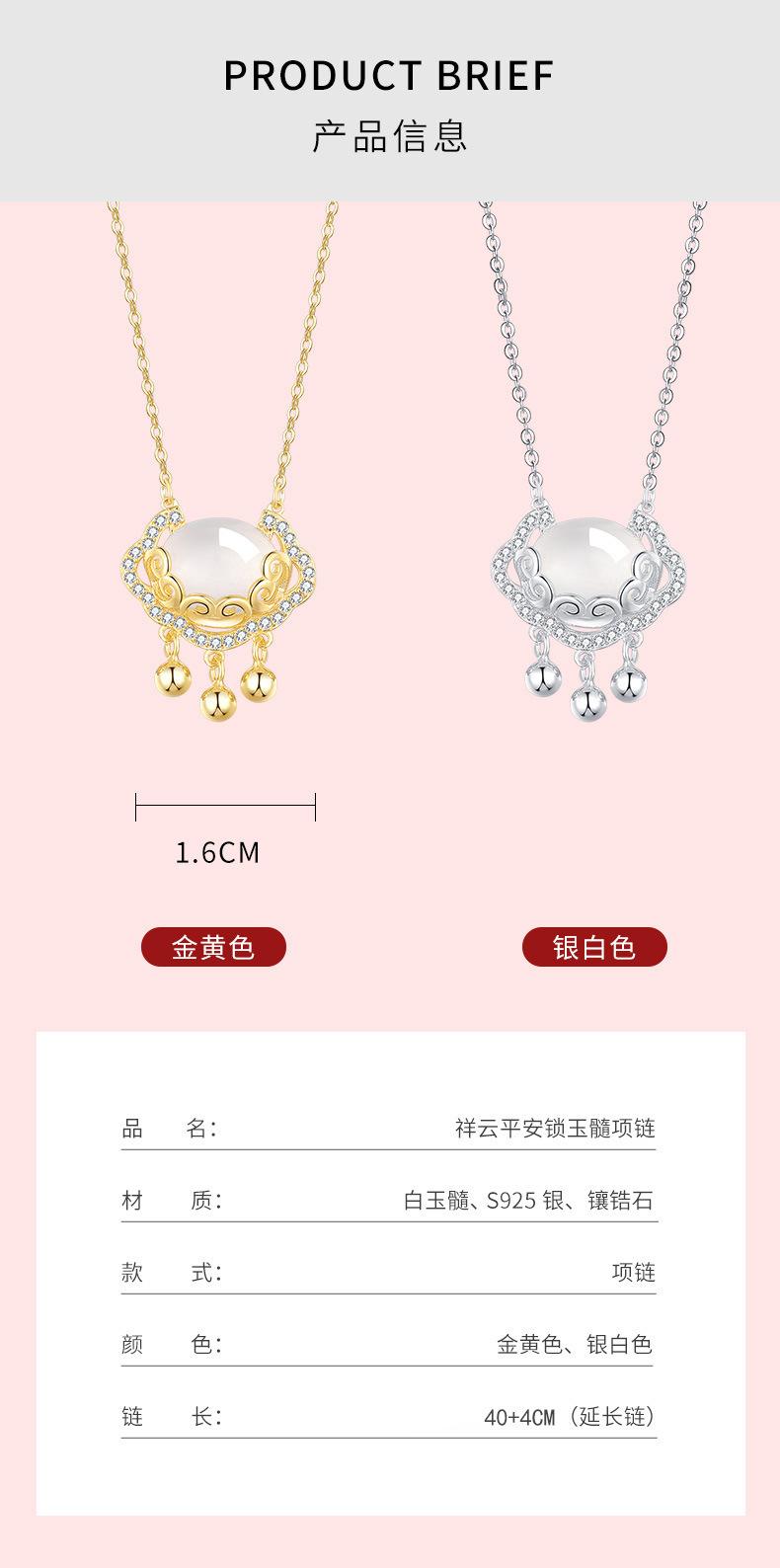 Colgante de calcedonia blanca con nube auspiciosa Ruyi de plata antigua S925, estilo nacional, retro, con cadena de clavícula y candado de longevidad Ruyi, venta al por mayor