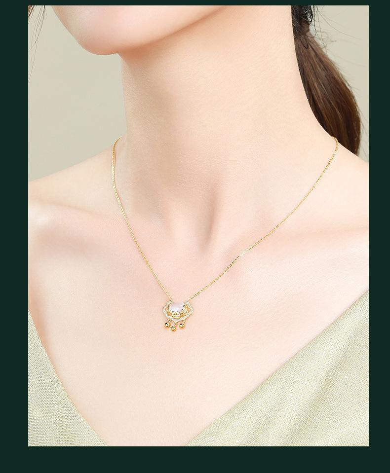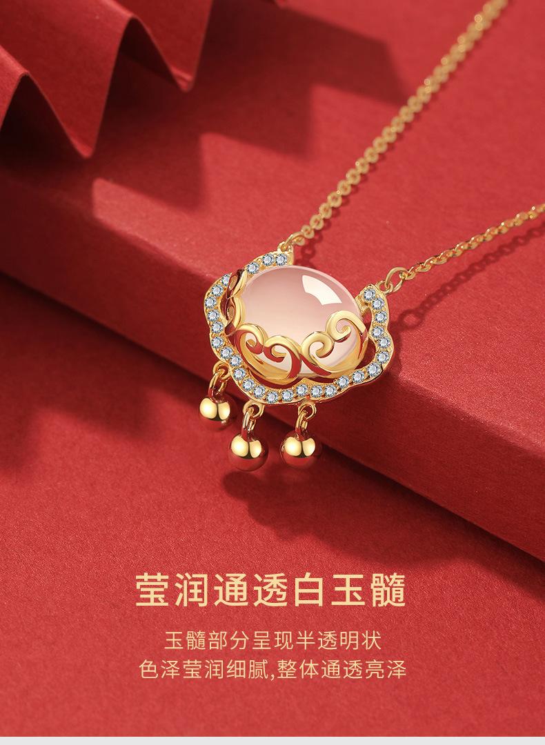 Xiangyun White Chalcedony Pendant + Silver Gold-plated Necklace + National Inspection Certificate + Jewelry Gift Box