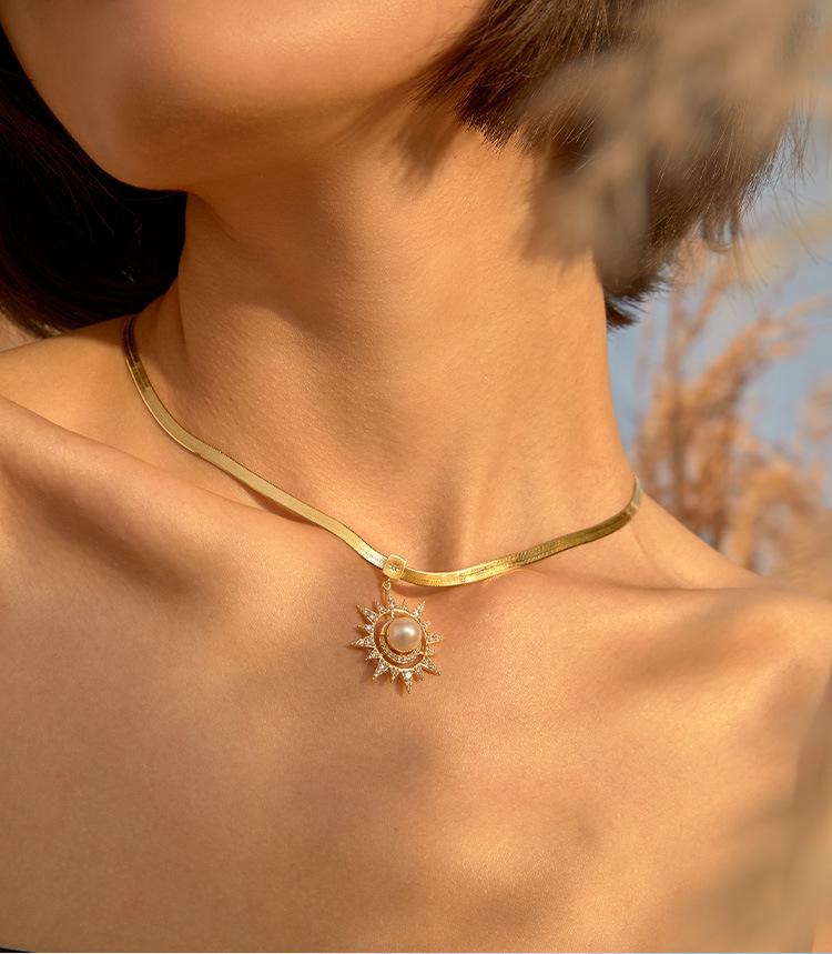Moda Joker Lujo Ligero Cadena Clavícula Collar de Perlas Colgante Cadena Hueso de Serpiente Girasol Regalo de San Valentín