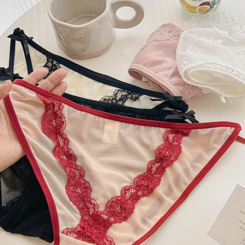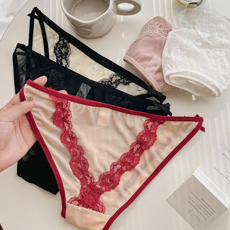 Ropa interior de encaje francés puro y sexy para mujer, novedad de verano 2023, bragas finas, cómodas y transpirables de cintura baja.