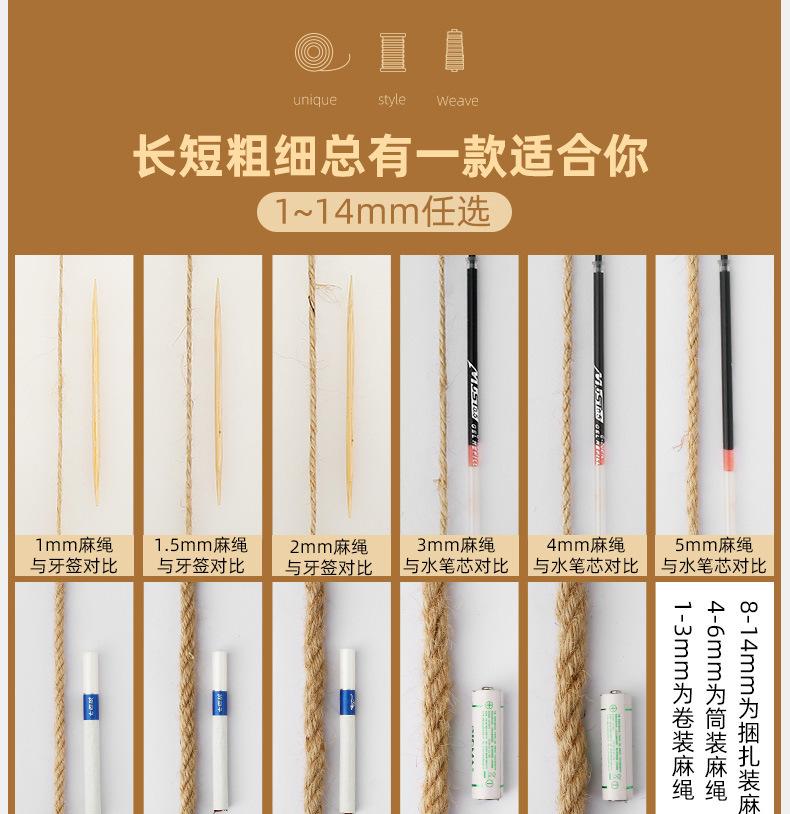 Cuerda de cáñamo, hilo de cáñamo, material de bricolaje, grosor, malla tejida a mano, decoración de pared de fotos, etiqueta de red, cuerda de atar