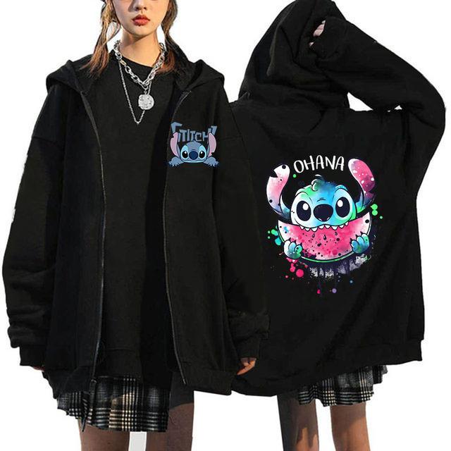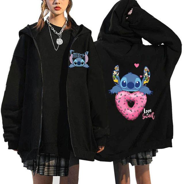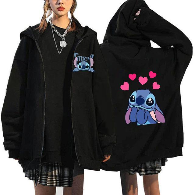 Chaqueta transfronteriza primavera y otoño superventas Stitch lindo abrigo estampado de dibujos animados hombres y mujeres suelta casual con capucha