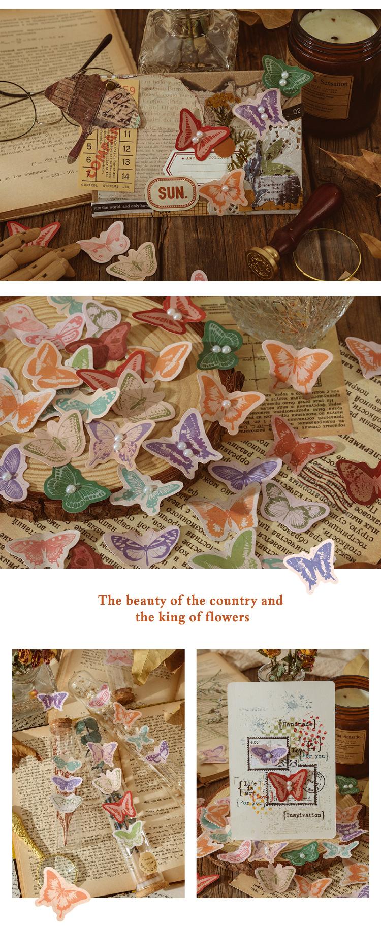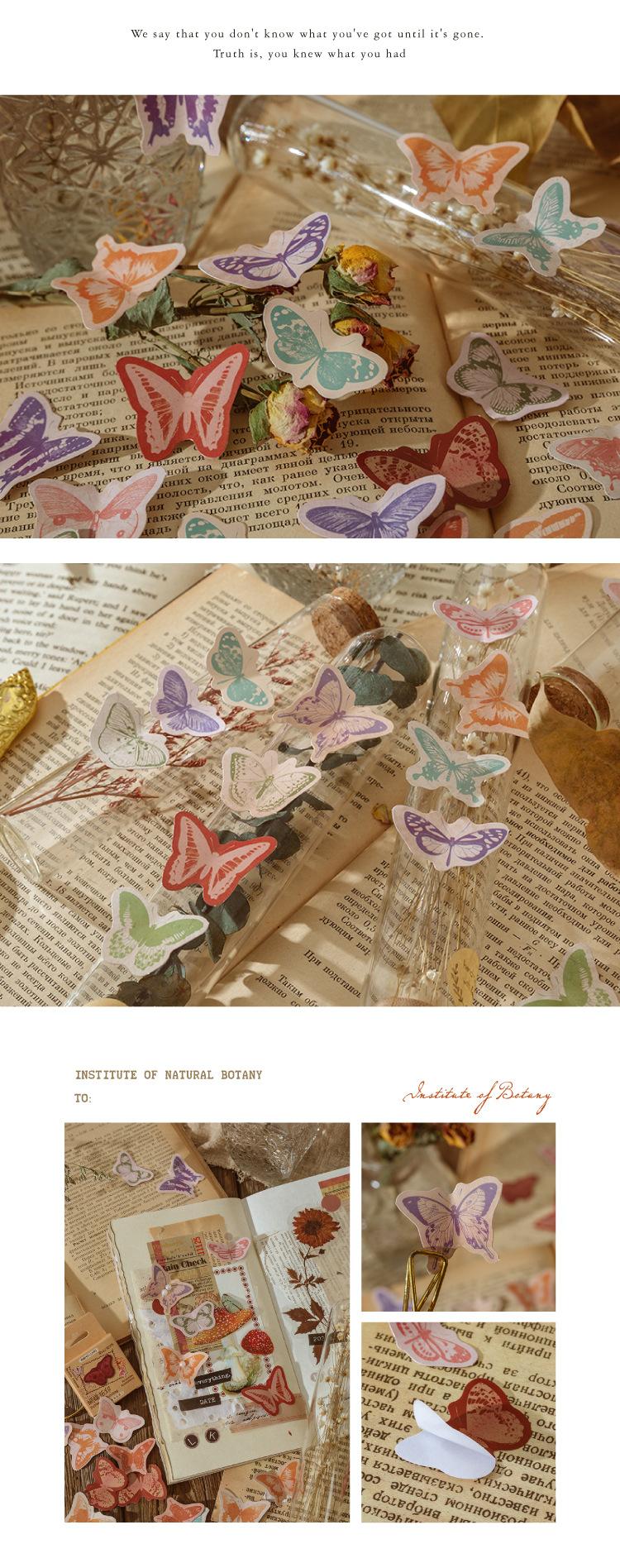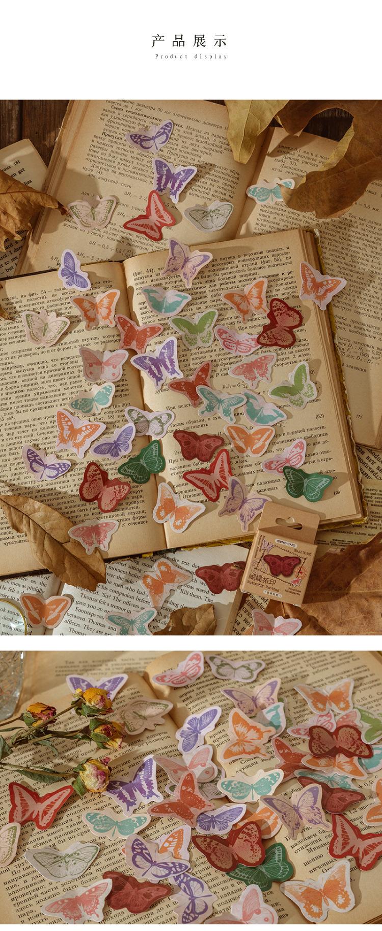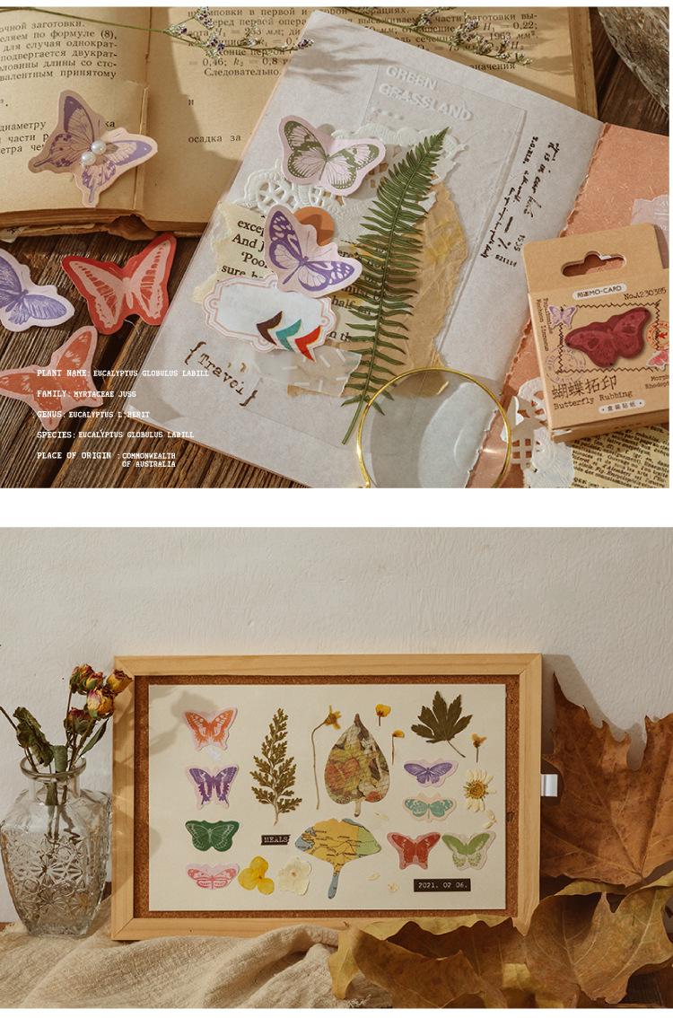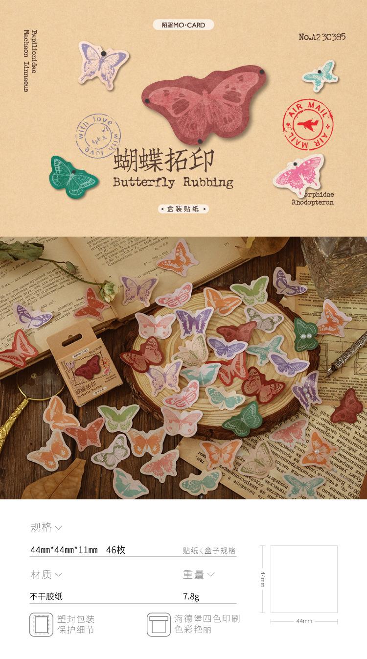 Mo ink sticker en caja mariposa calcomanías de frotado mariposa retro decoración de cuenta de mano sello con forma especial material de pegatina 46