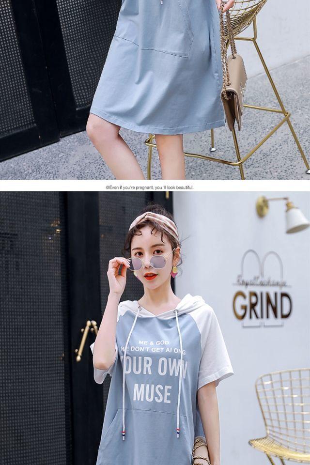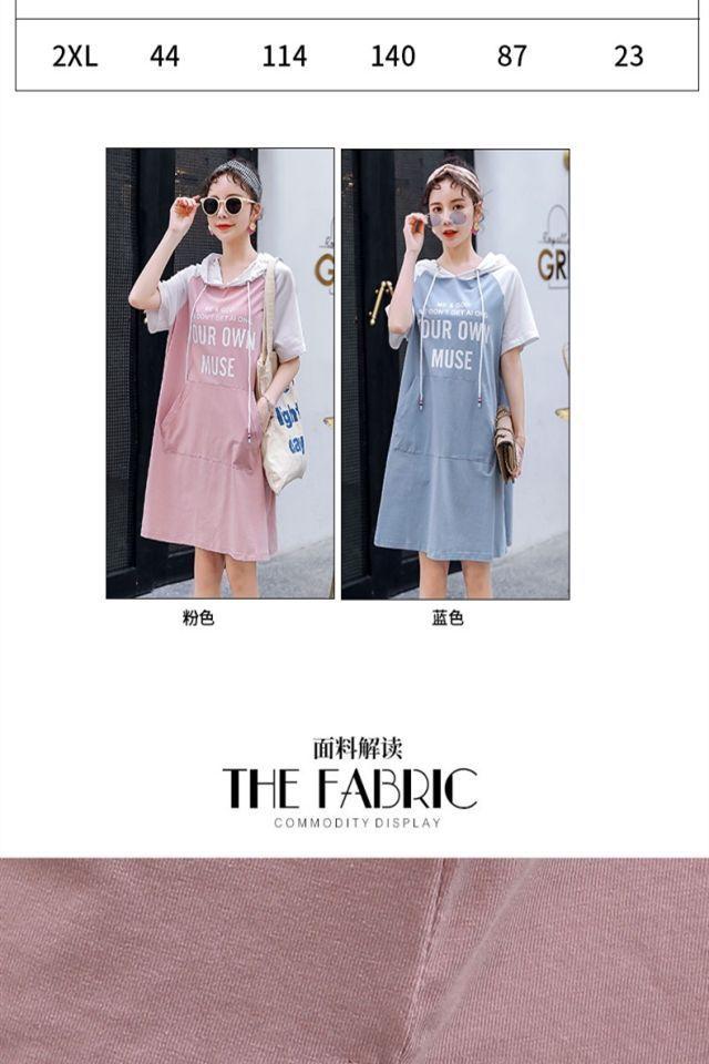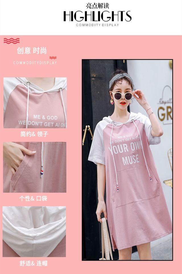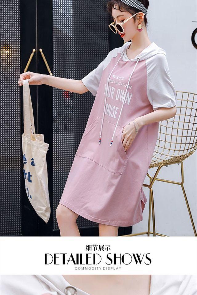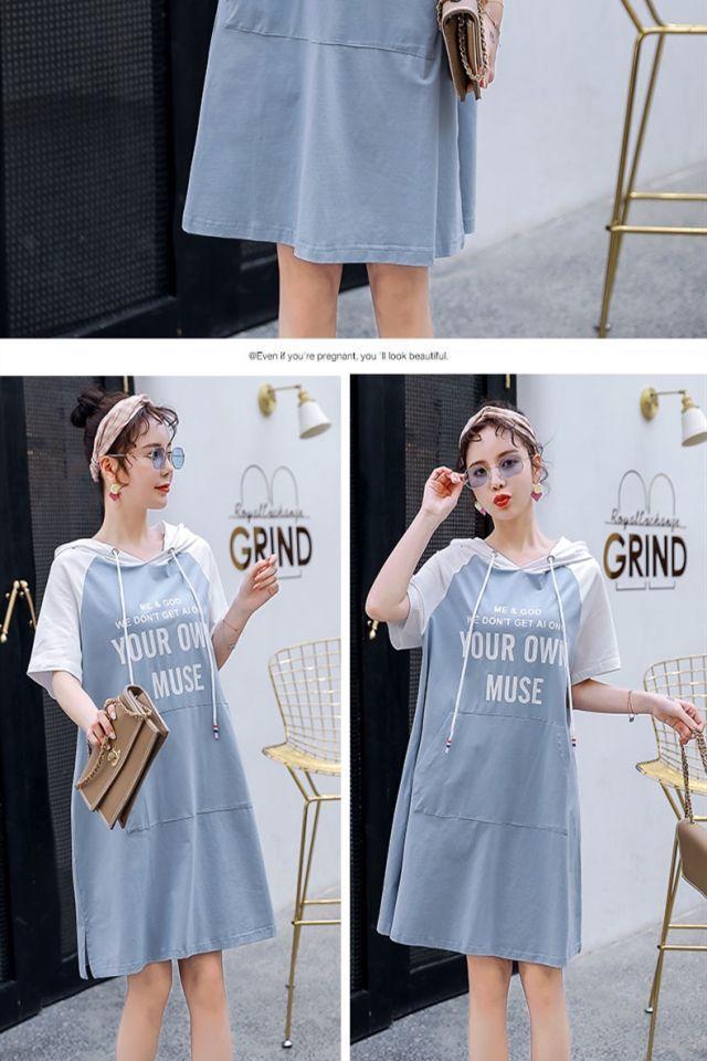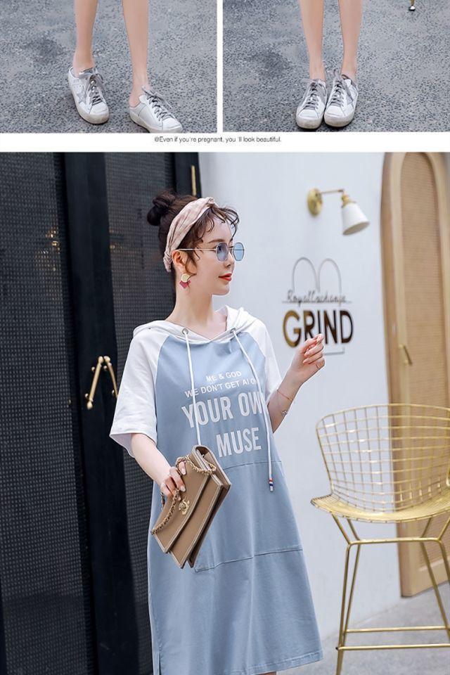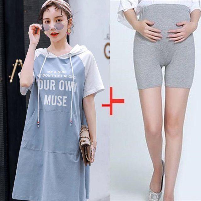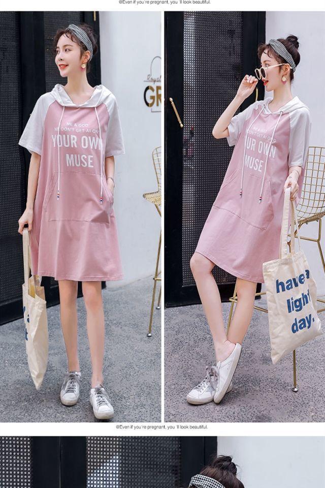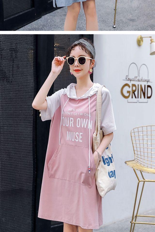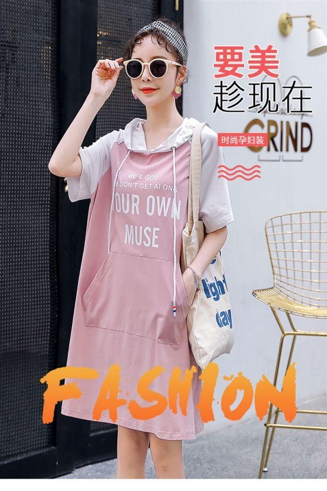Vestido de Verano Nuevo de Maternidad Camiseta de Manga Corta con Capucha de Moda Celebridad de Internet Moda de Maternidad Vestido Elegante para Salir