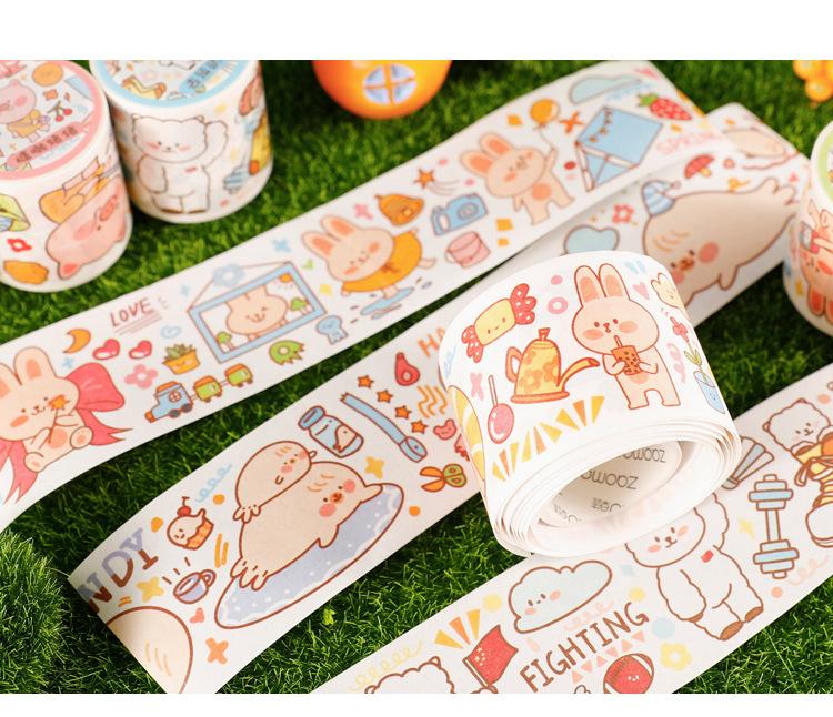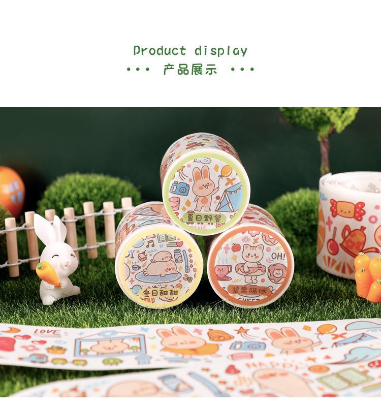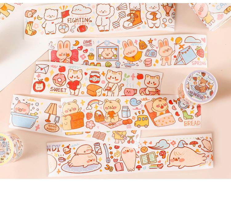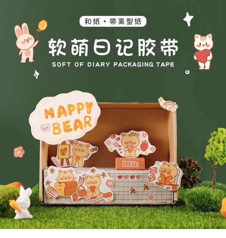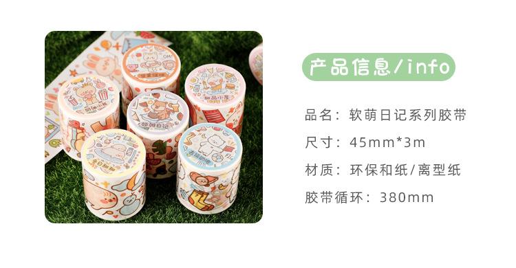 Diario adorable y suave con cinta de papel y espuma matutina, serie de dibujos animados, lindo álbum de fotos con cuenta de mano, pegatinas decorativas DIY 8