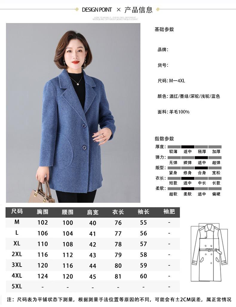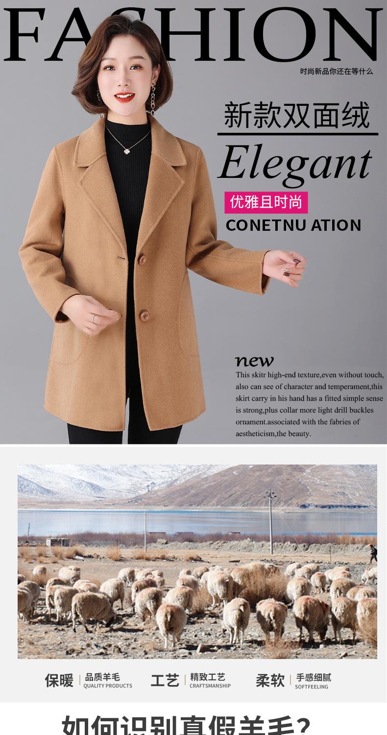 Abrigo de otoño e invierno para mujer de mediana edad y anciana, abrigo de lana de doble cara, abrigo de invierno de lana de madre de temperamento de longitud media para mujer