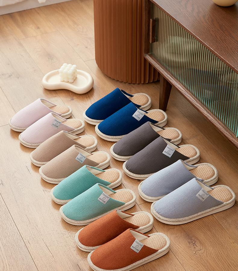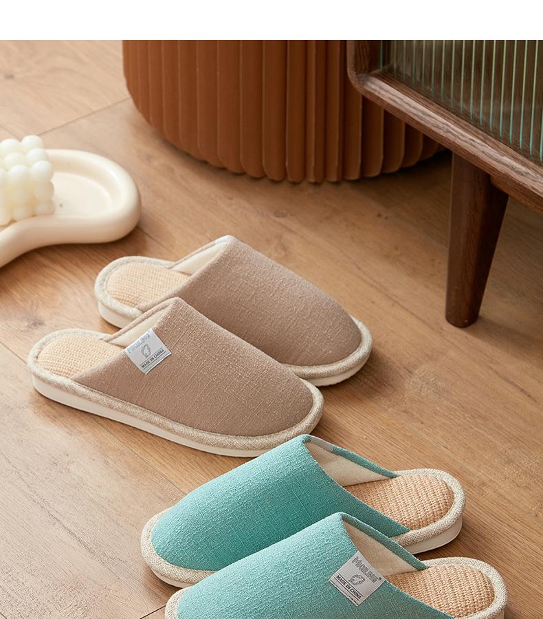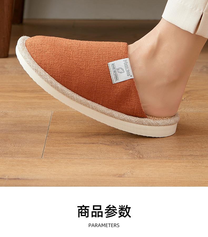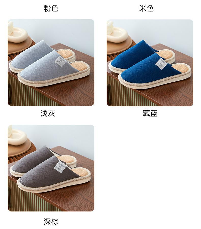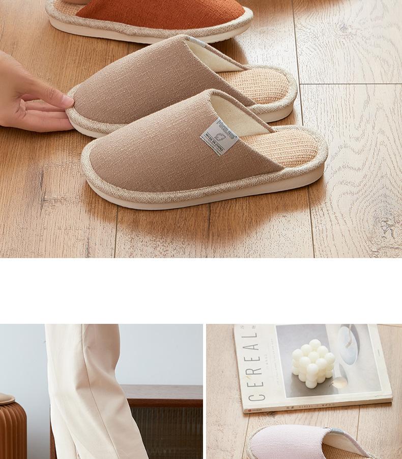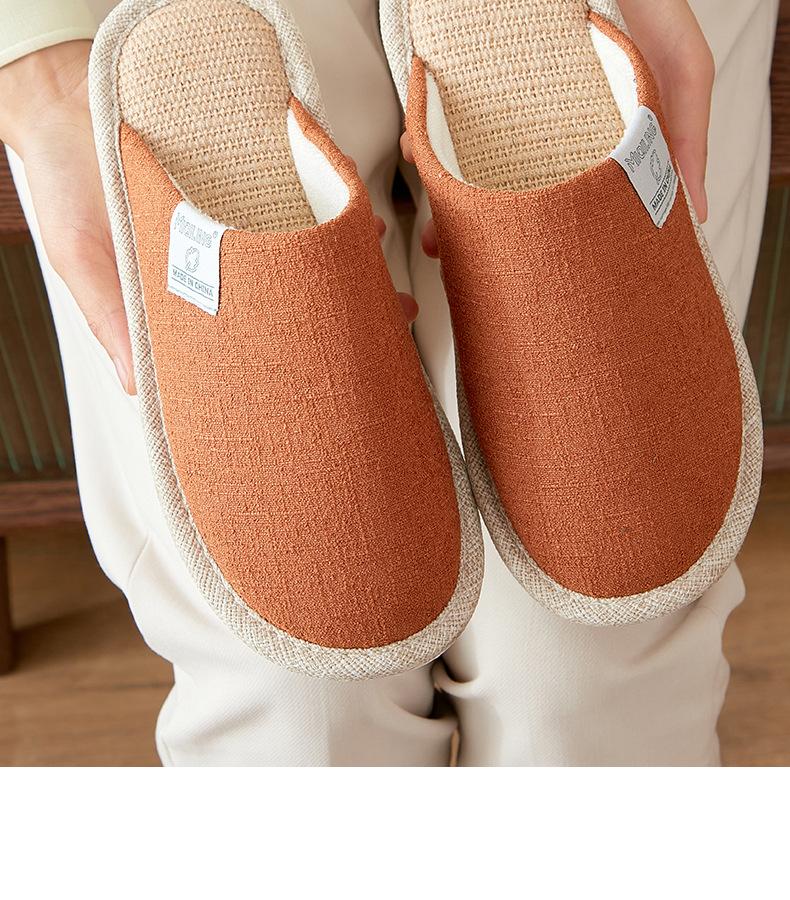 Pantuflas de Algodón y Lino de Otoño e Invierno, Pantuflas de Lino para Mujer para Interior Antideslizantes de Suela Gruesa con Punta Cerrada para Hombre para Casa Silenciosas Planas Cómodas