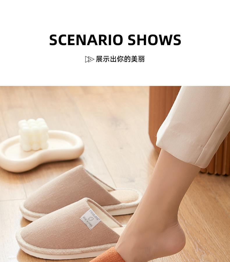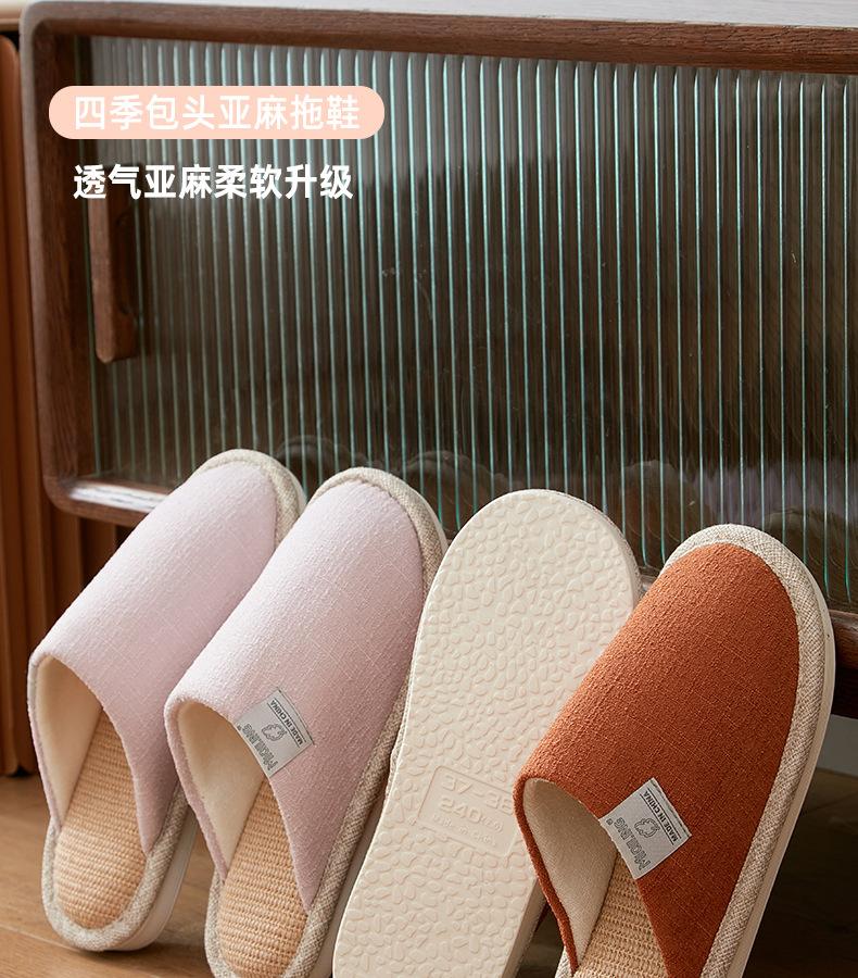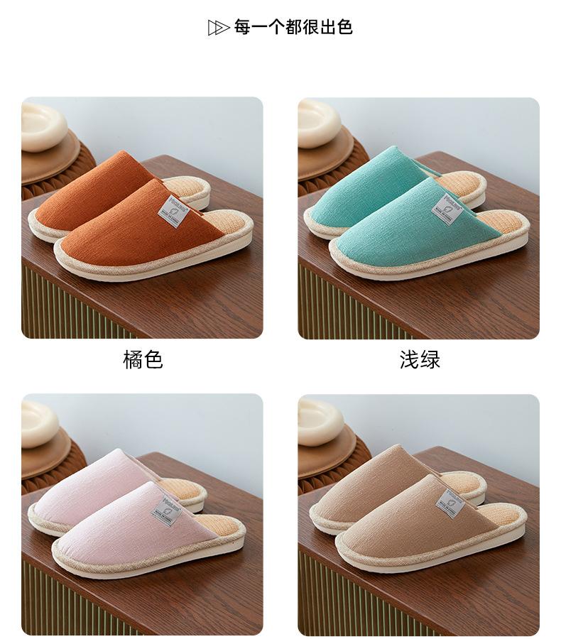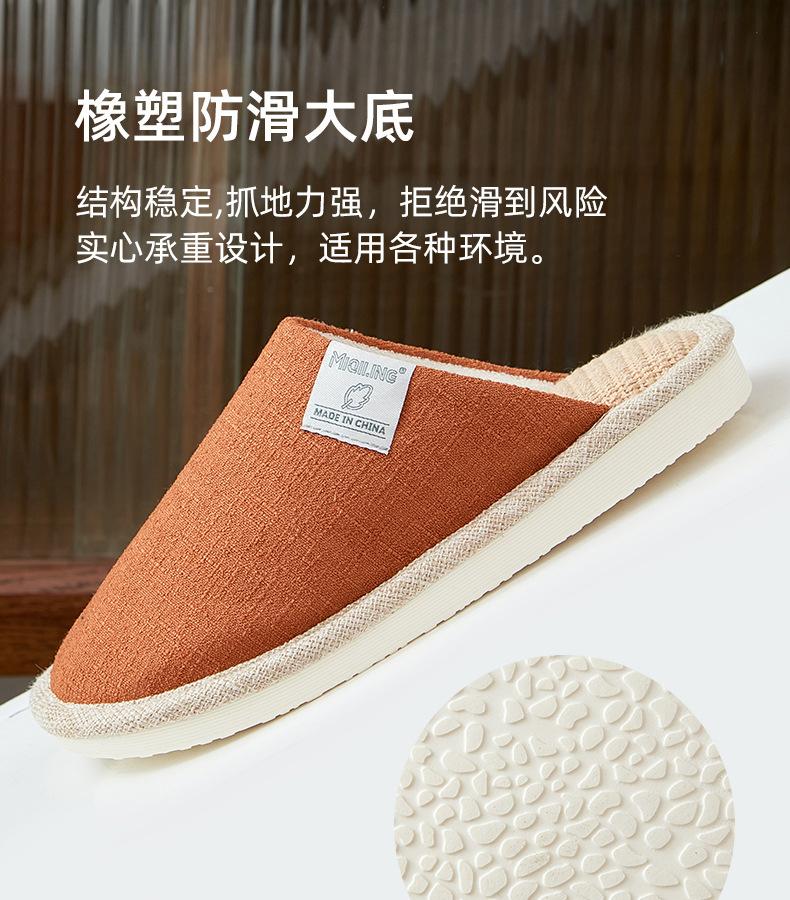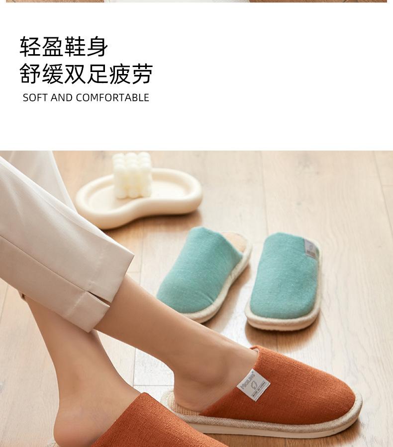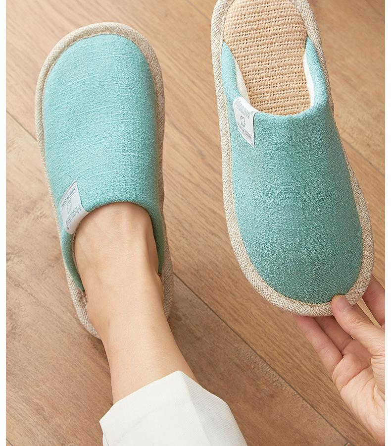Pantuflas de Algodón y Lino de Otoño e Invierno, Pantuflas de Lino para Mujer para Interior Antideslizantes de Suela Gruesa con Punta Cerrada para Hombre para Casa Silenciosas Planas Cómodas