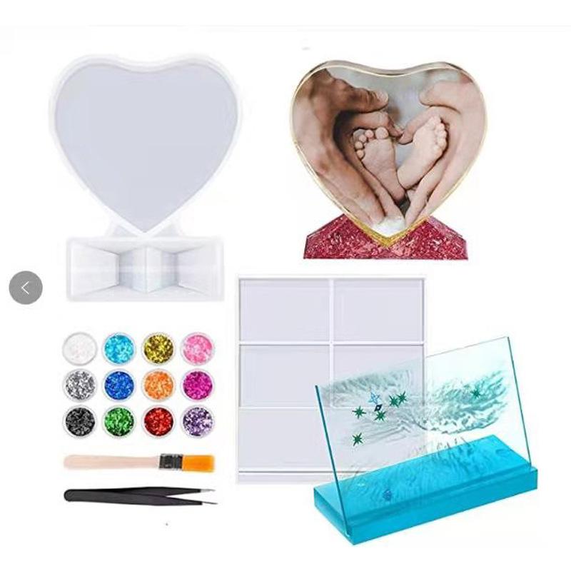 Kit de gotas de gel de cristal transfronterizo, molde de silicona para posavasos con forma de ola de espejo, marco de fotos de amor, adornos de silicona.