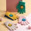 Guantes de otoño e invierno para niños, niñas, resistentes al frío, cálidos, con cinco dedos sonrientes, tejidos, bonitos, de lana, a la moda.
