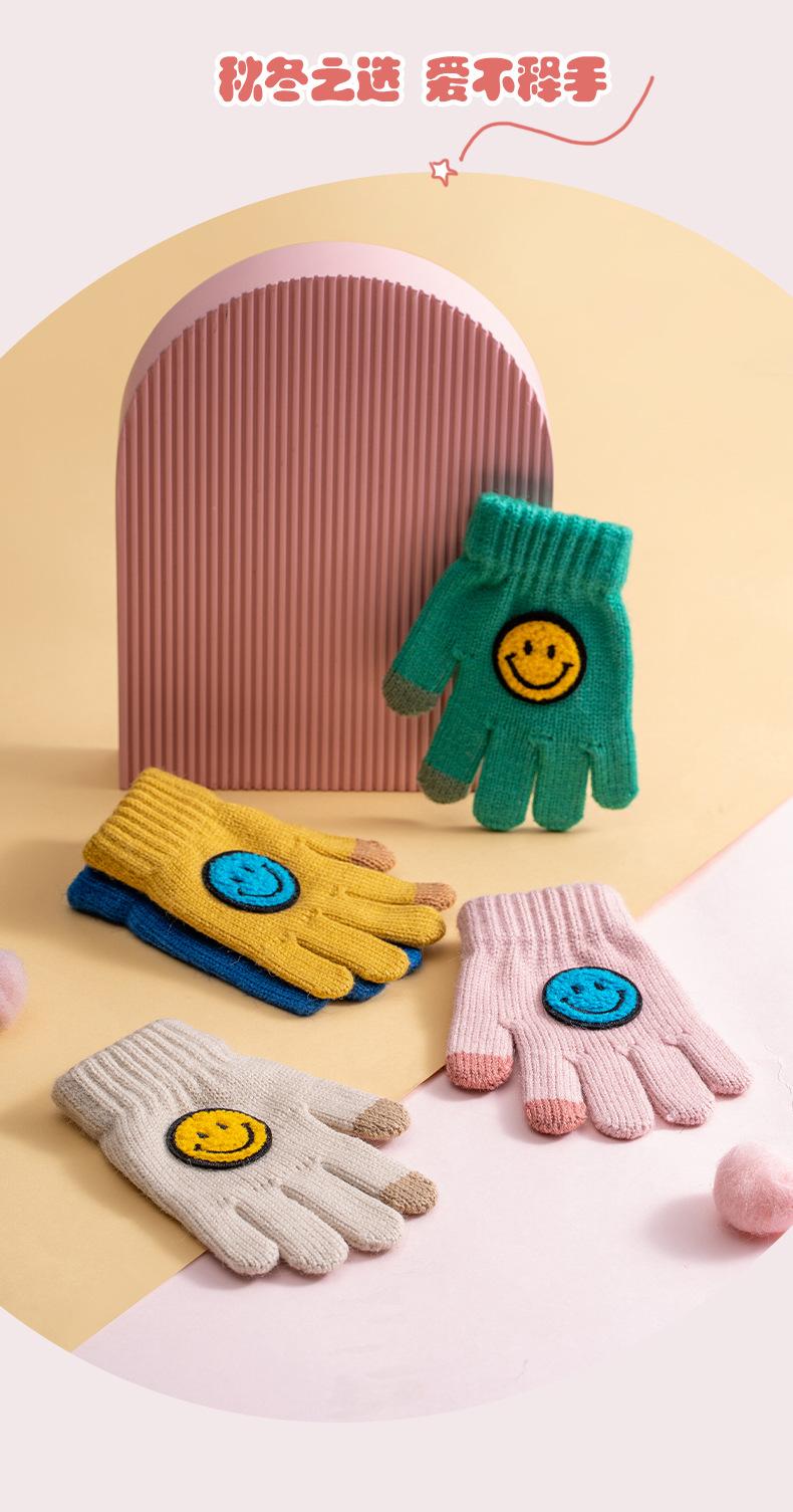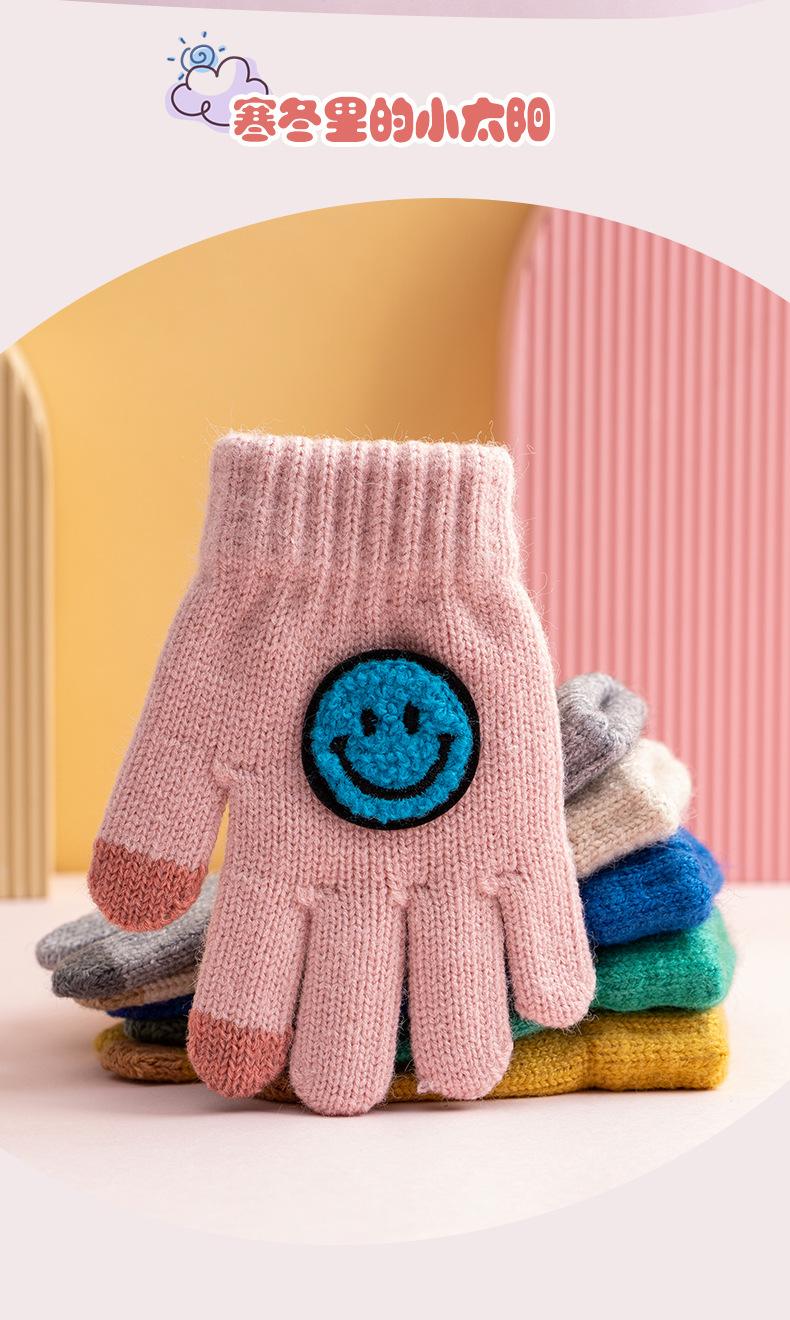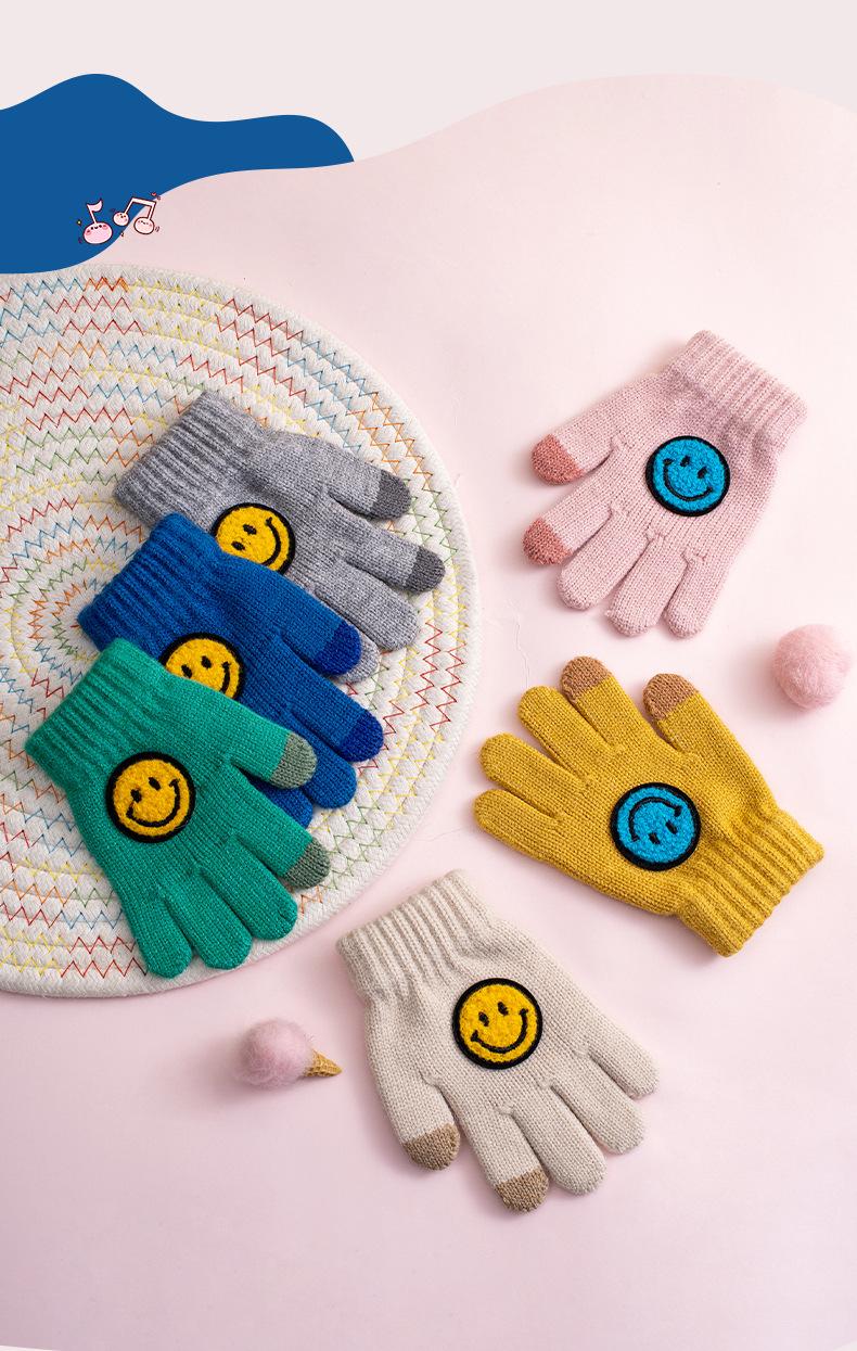 [Pink] (smiley face cloth stickers) children's cute gloves, [Yellow] (smiley face cloth stickers) children's c...