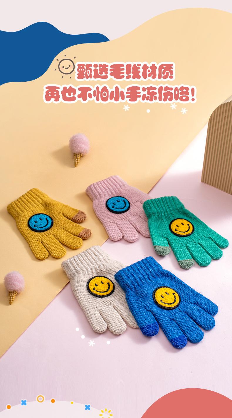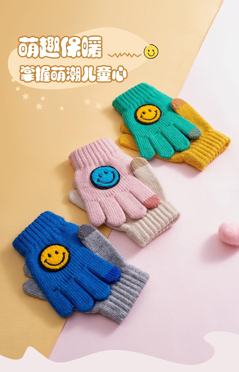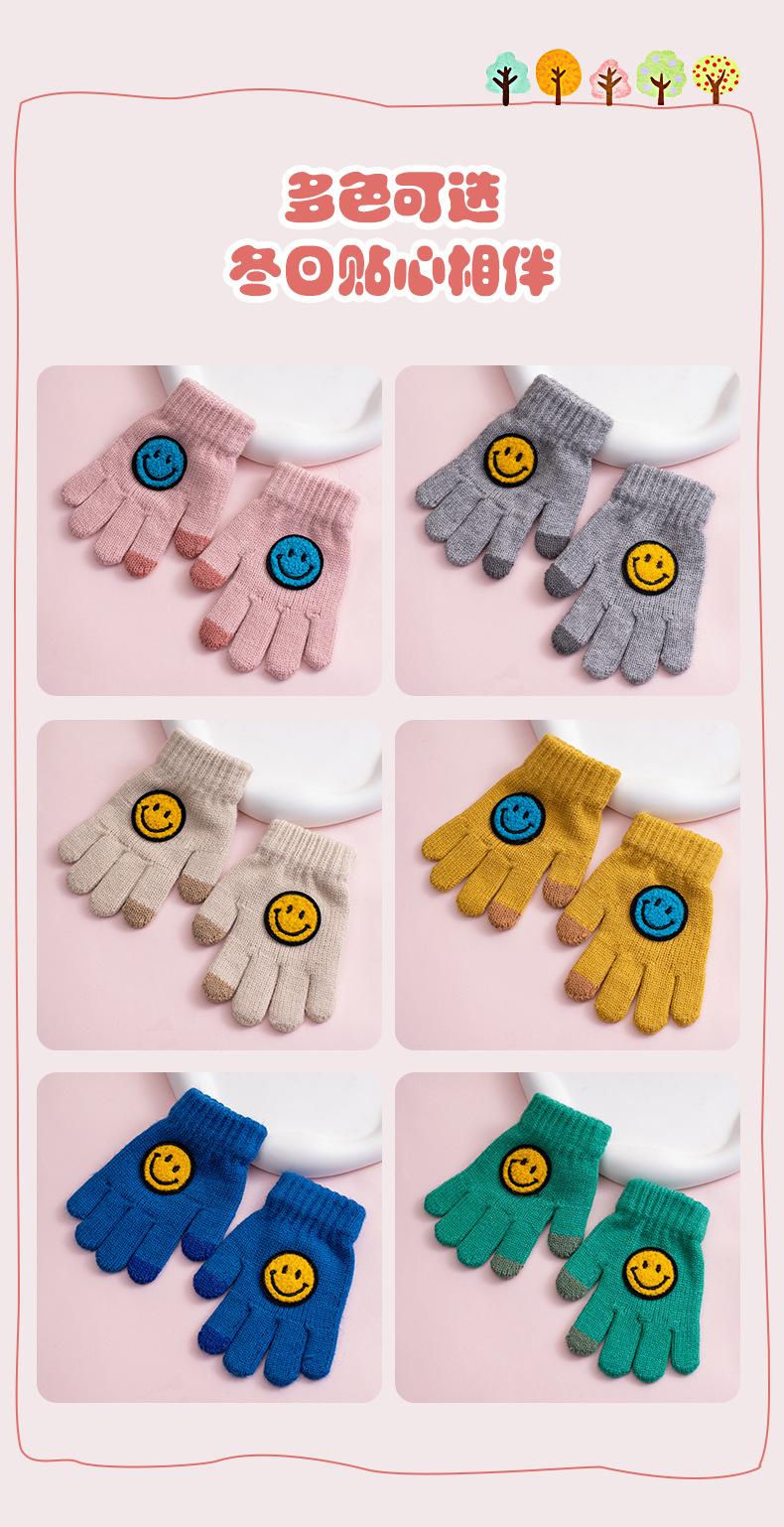 [Pink] (smiley face cloth stickers) children's cute gloves, [Yellow] (smiley face cloth stickers) children's c...