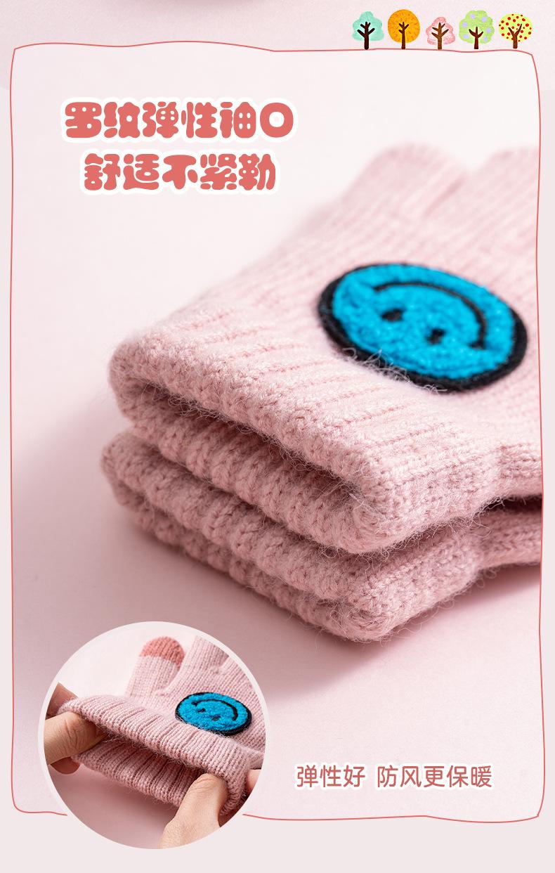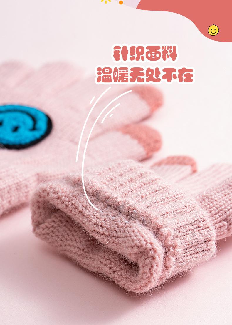 [Pink] (smiley face cloth stickers) children's cute gloves