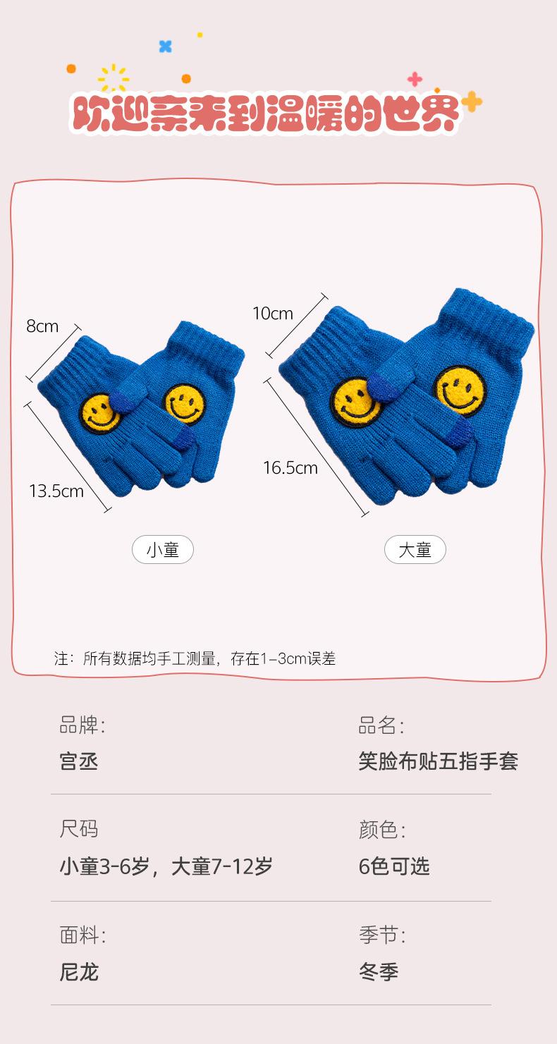 [Dark blue] (smiley face cloth stickers) children's cute gloves