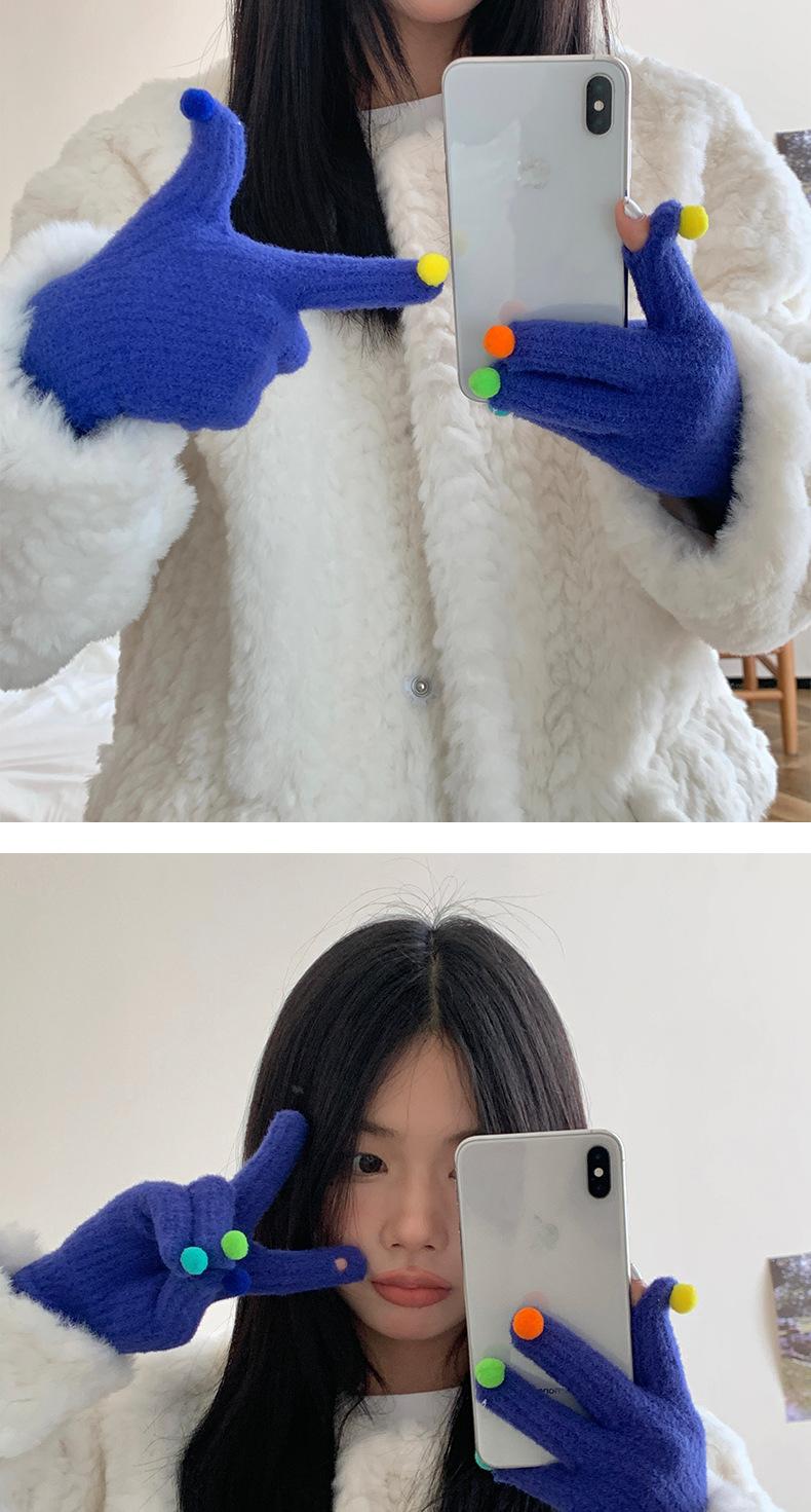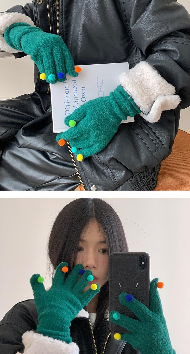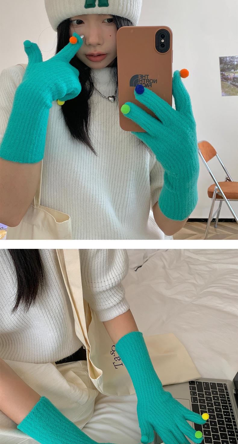 Guantes de Bola de Felpa Coloridos Cálidos Compatibles con Pantalla Táctil Estilo Coreano para Mujer en Invierno, Guantes Gruesos para Ciclismo de Estudiante Lindos