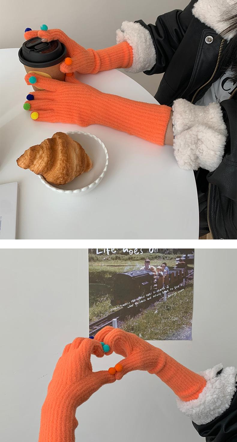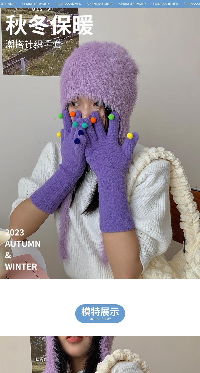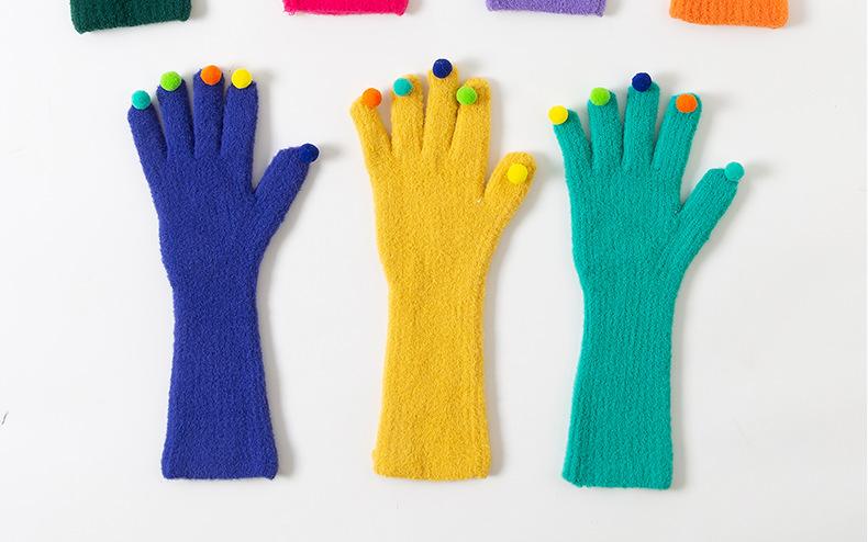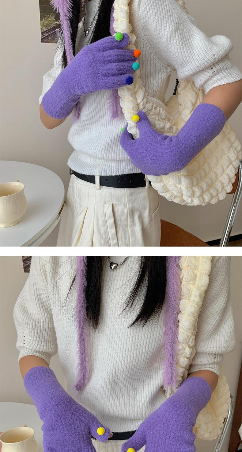 Guantes de Bola de Felpa Coloridos Cálidos Compatibles con Pantalla Táctil Estilo Coreano para Mujer en Invierno, Guantes Gruesos para Ciclismo de Estudiante Lindos