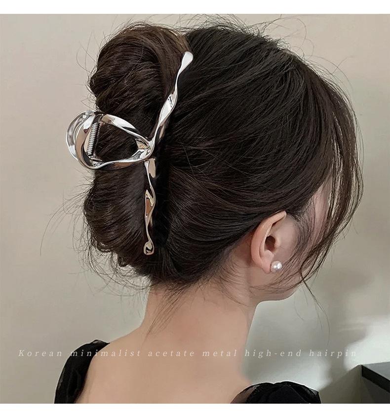 Horquilla de metal simple para mujer, grande, de alta calidad, para la parte posterior de la cabeza, 2023, nueva horquilla con clip de tiburón para tocado