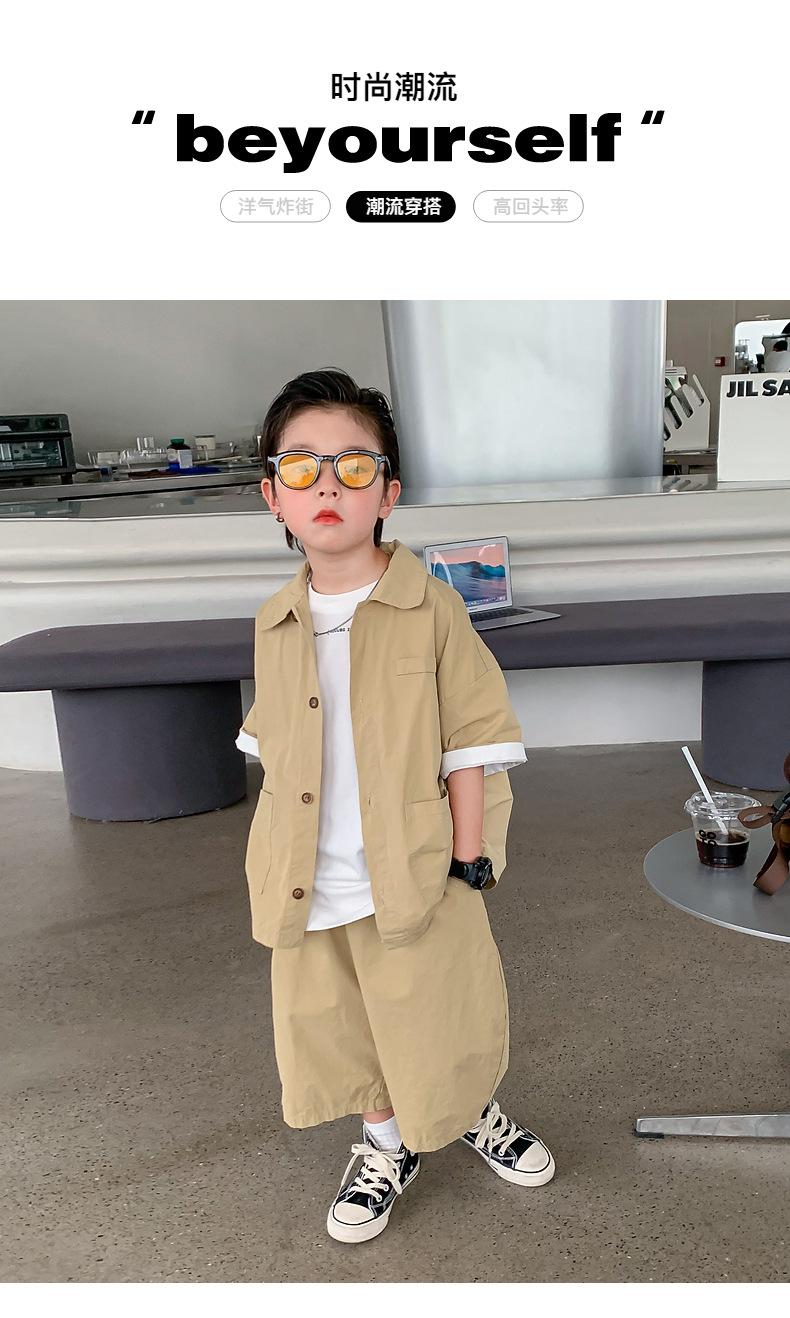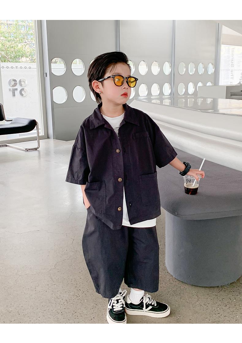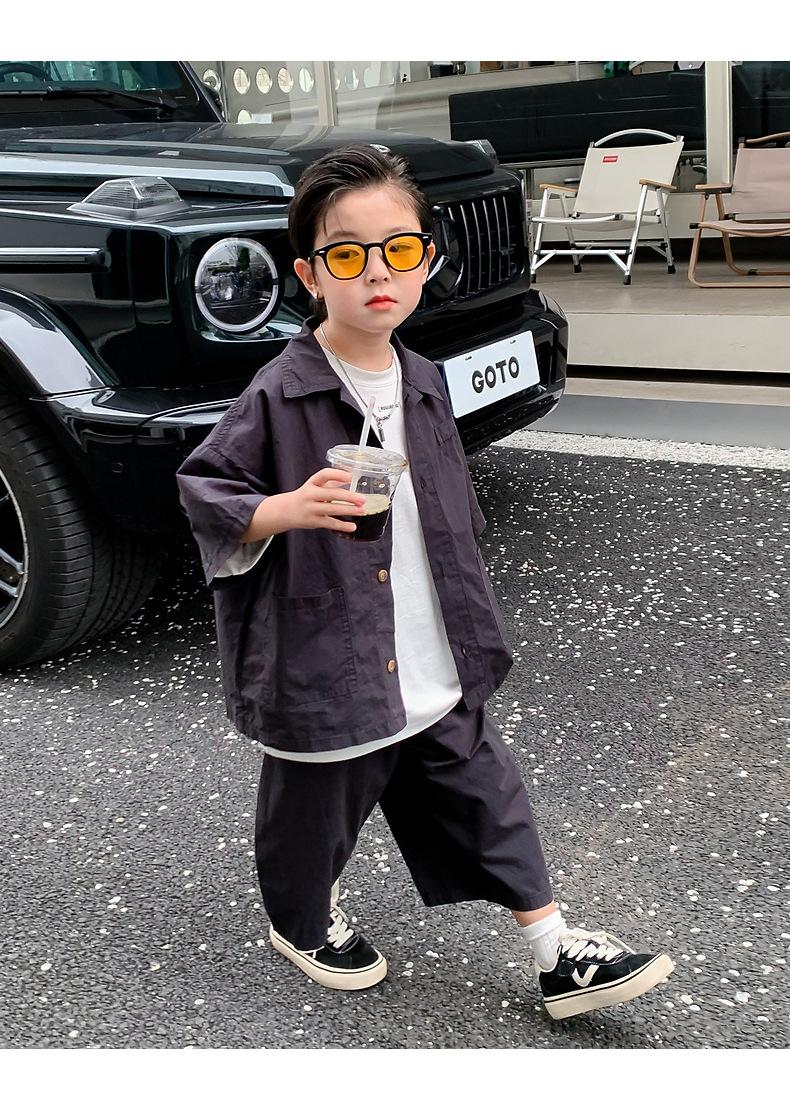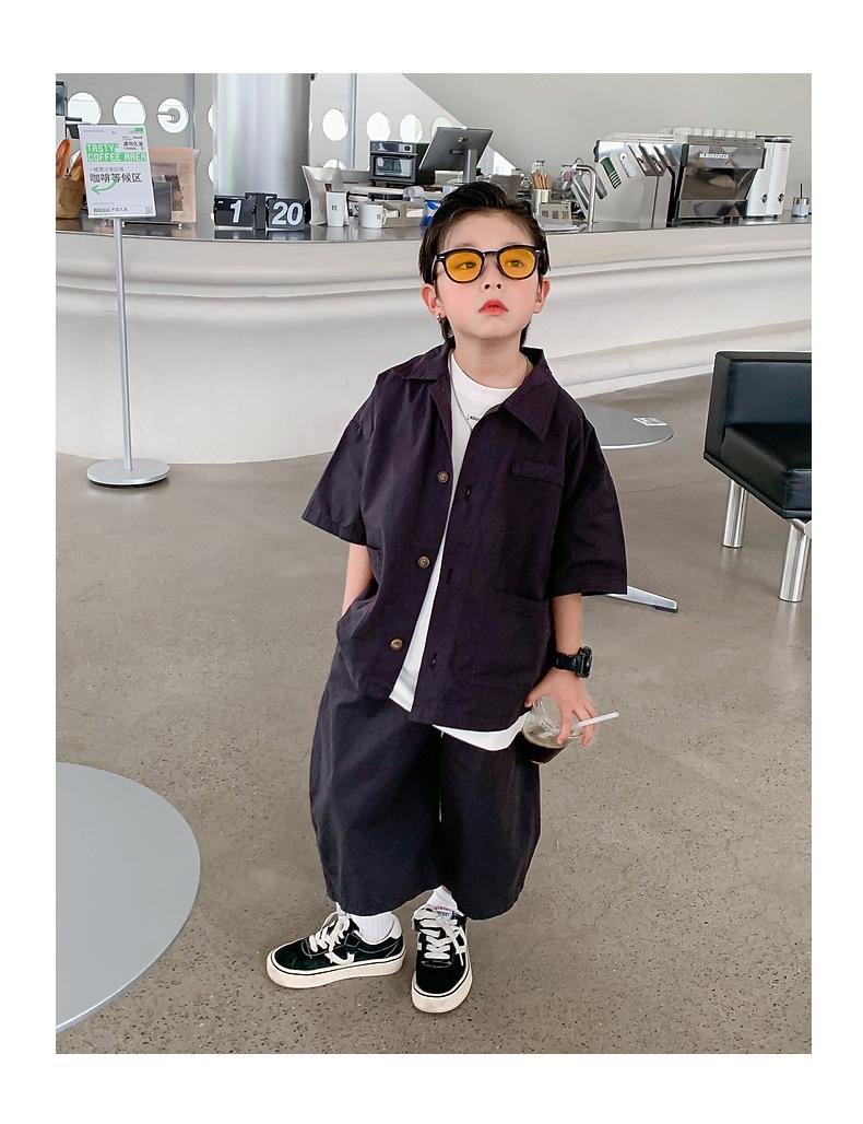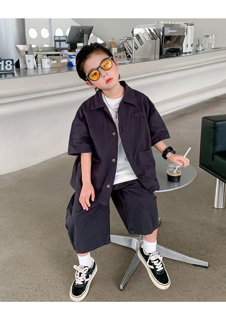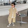 Traje de camisa de manga corta para niños de marca de moda verano 2024 nueva ropa para niños tejida en el gran conjunto de dos piezas de verano para niños
