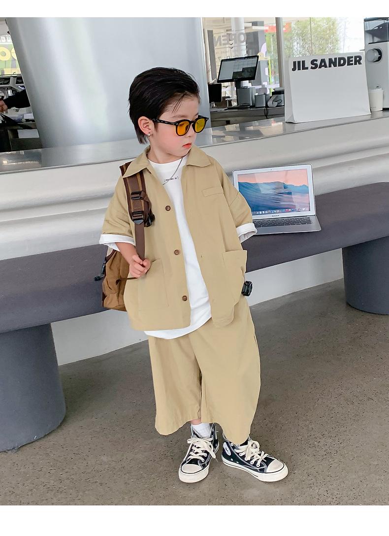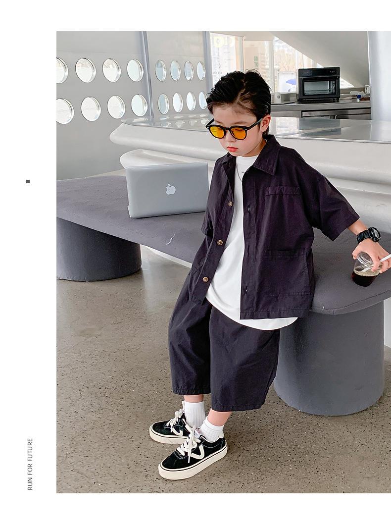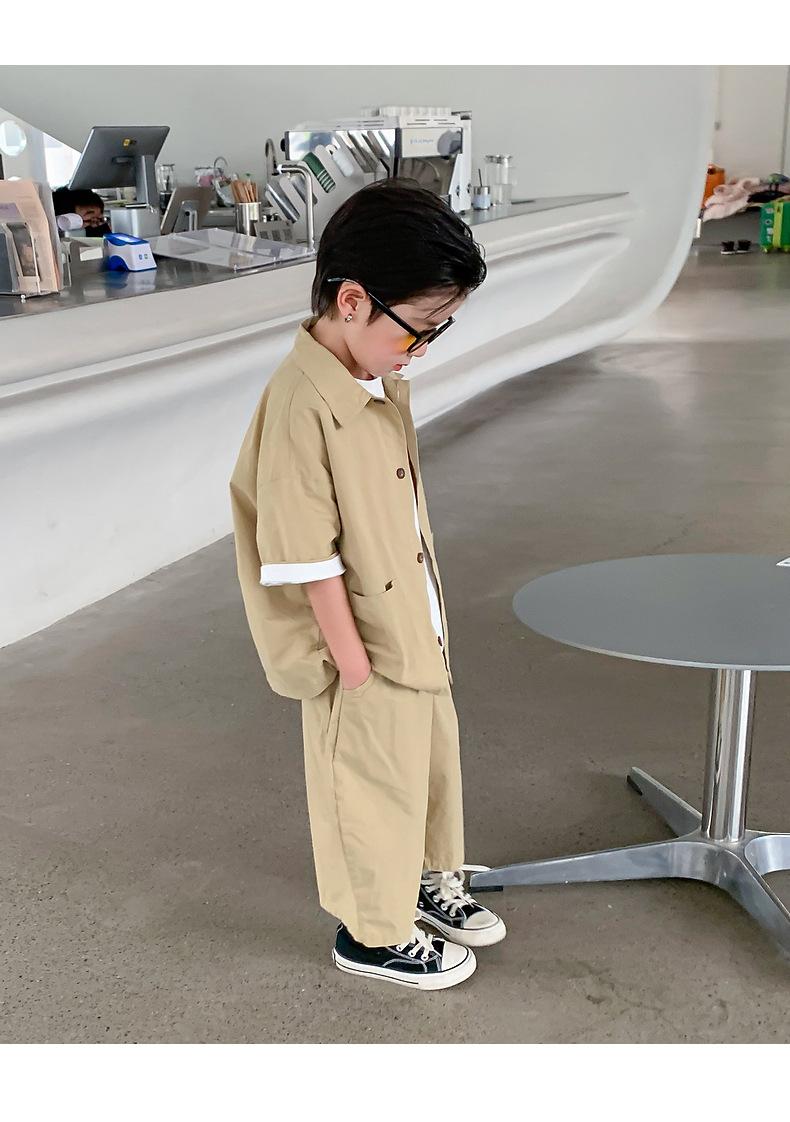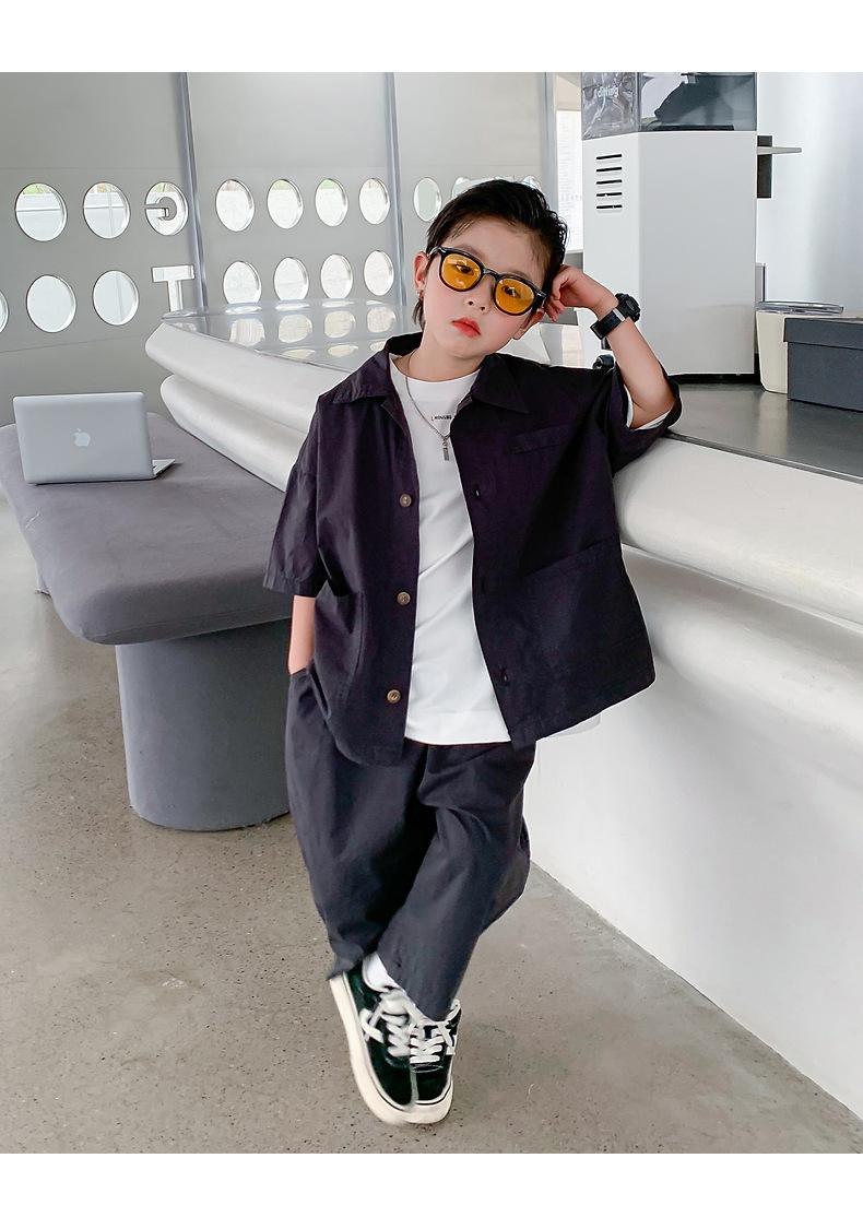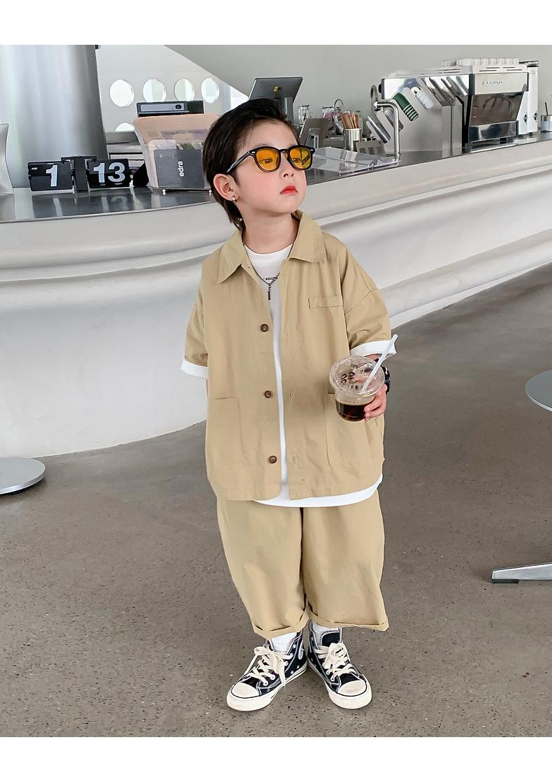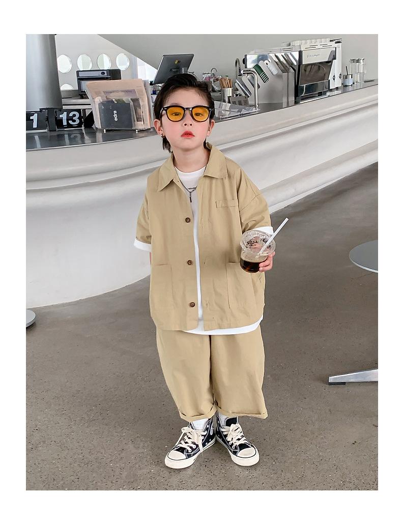 Traje de camisa de manga corta para niños de marca de moda verano 2024 nueva ropa para niños tejida en el gran conjunto de dos piezas de verano para niños