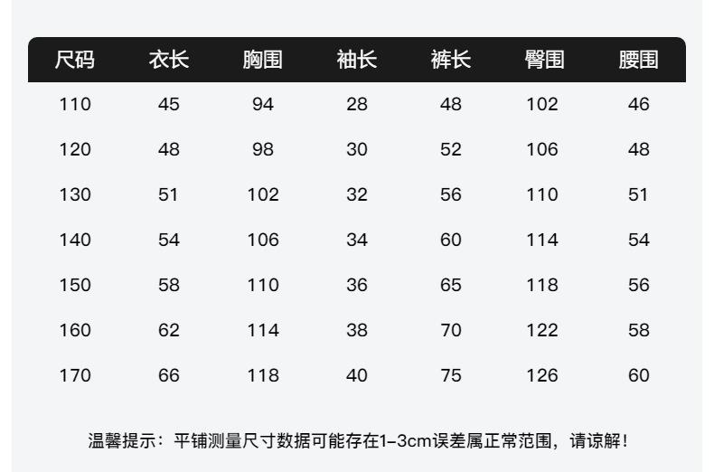 110cm, 120cm, 130cm, 140cm, 150cm, 160cm, 170cm