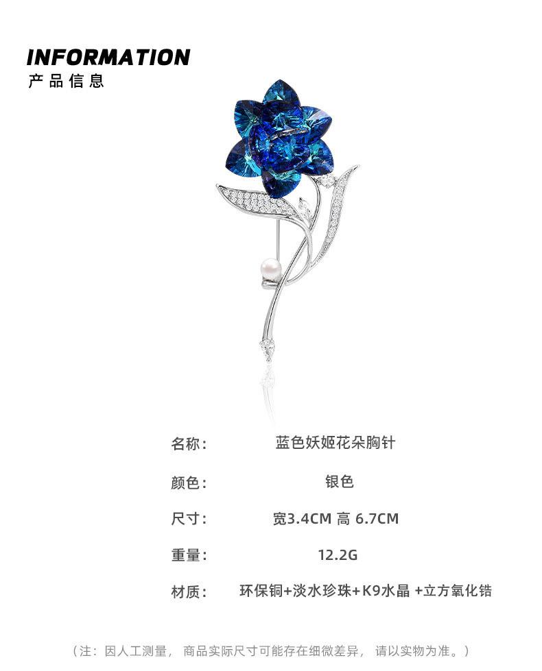 Broche de abrigo elegante con temperamento de hada azul y flores tridimensionales de INS, broche antiexposición de una pieza al por mayor