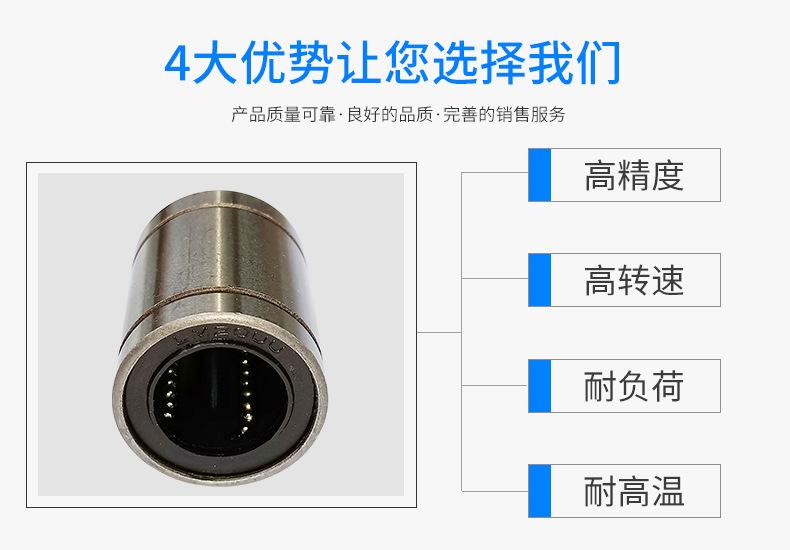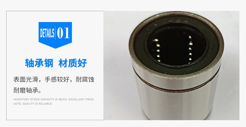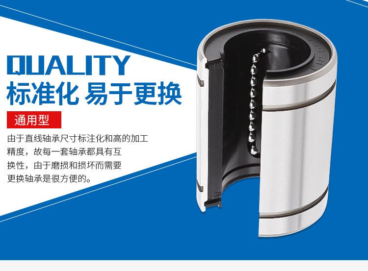 movimiento linealEl rodamiento es un sistema de movimiento lineal de bajo costo utilizado en conjunto con un eje cilíndrico para un recorrido ilimitado. Dado que la bola del rodamiento está en contacto puntual con el eje, la carga es pequeña. La bola de acero gira con una resistencia a la fricción mínima, logrando así un movimiento suave y de alta precisión.