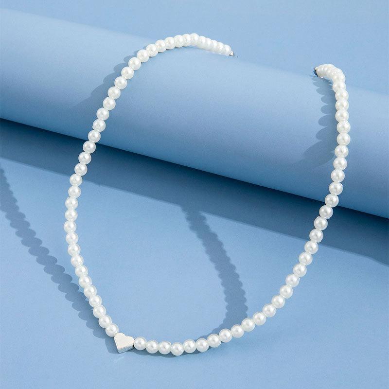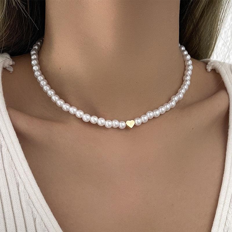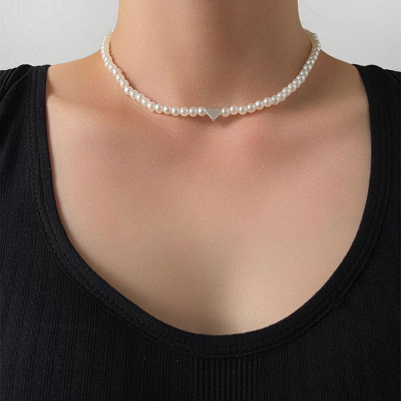 Collar de perlas de imitación con costuras de amor transfronterizo, cadena de clavícula con perlas artificiales de melocotón para mujer, joyería al por mayor
