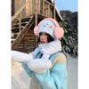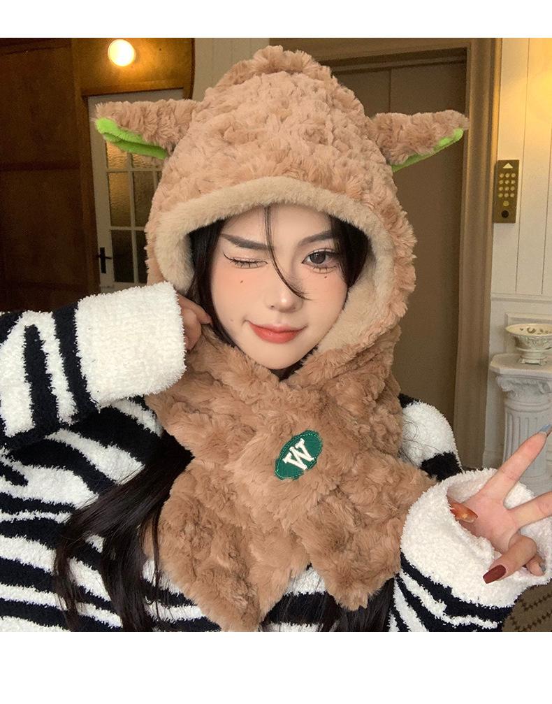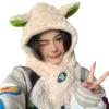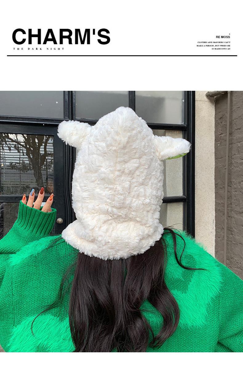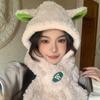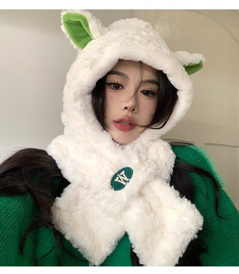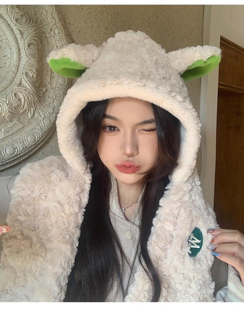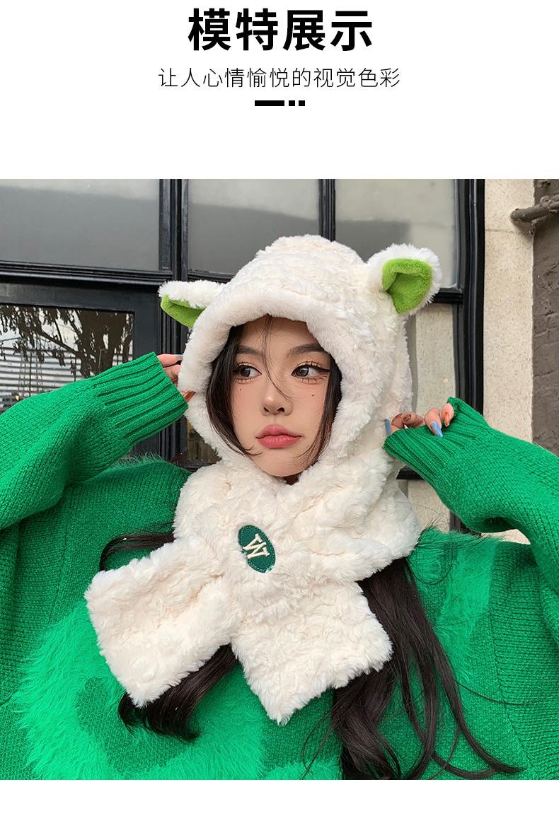 Lindo gorro y bufanda de cordero integrados para mujer, gorro peludo cálido con protección para las orejas, gorro de invierno Lei Feng para otoño e invierno.