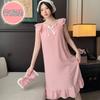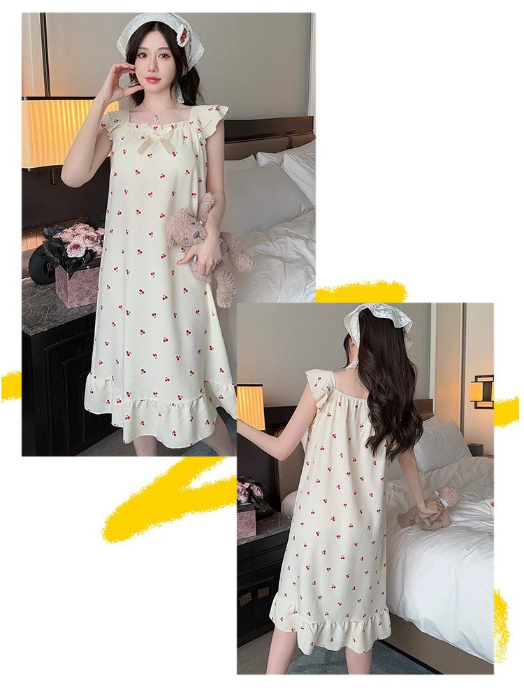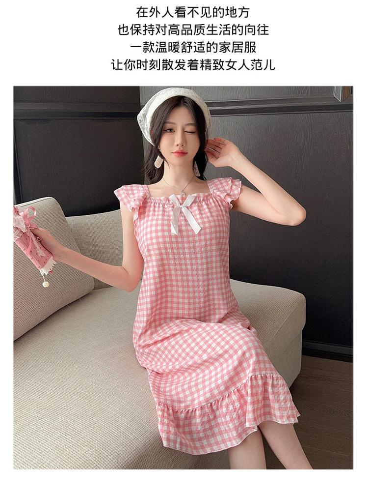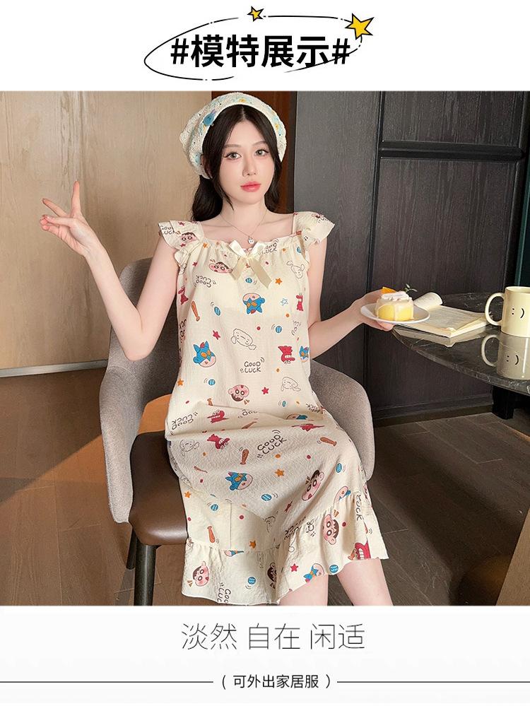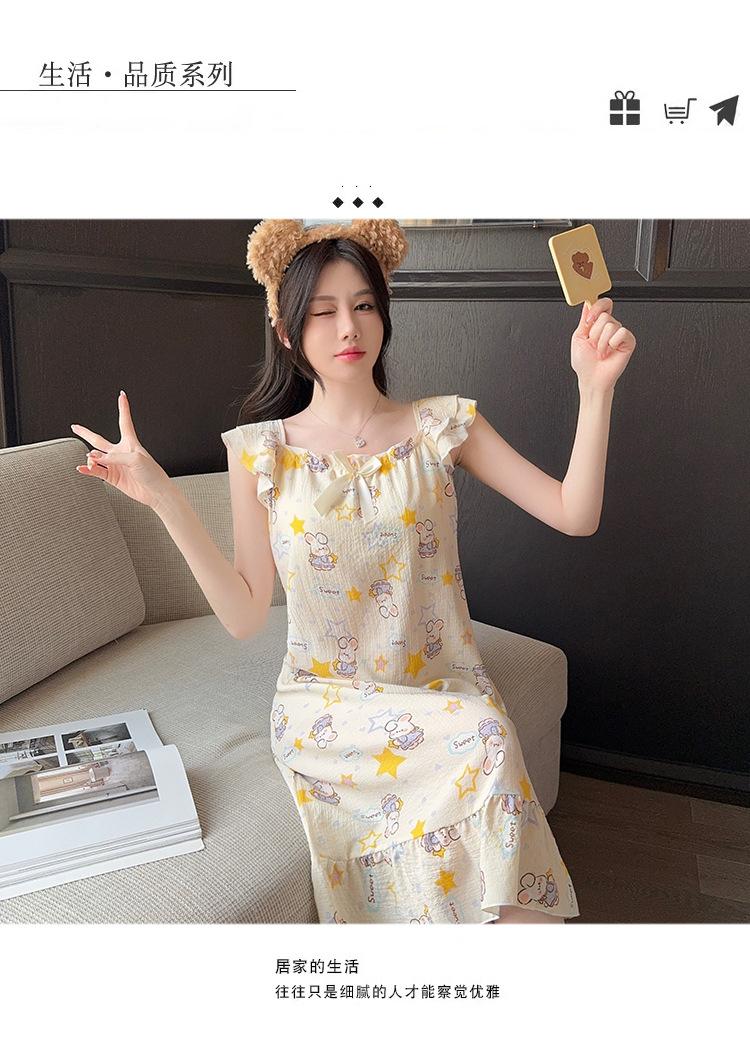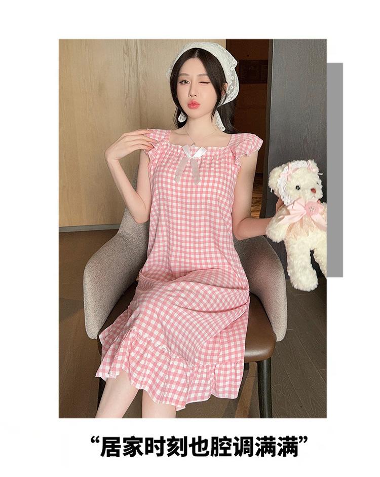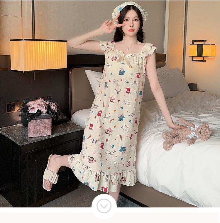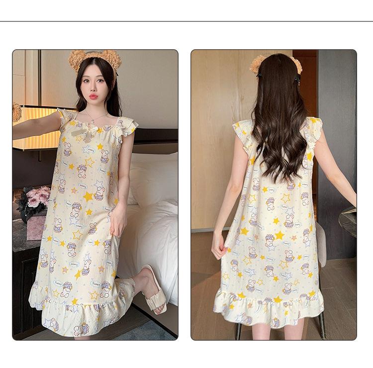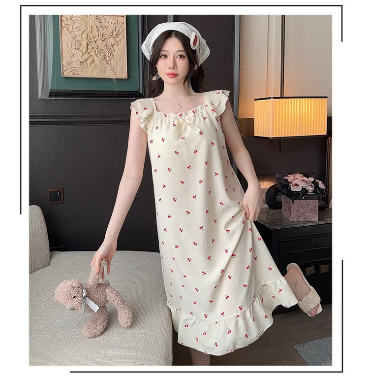 Camisón de Algodón Burbuja para Niña Verano 2024 Dulce Tirantes con Almohadilla en el Pecho Estilo Hada Delgado Casual Ropa de Casa para Estudiante