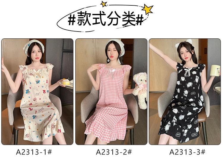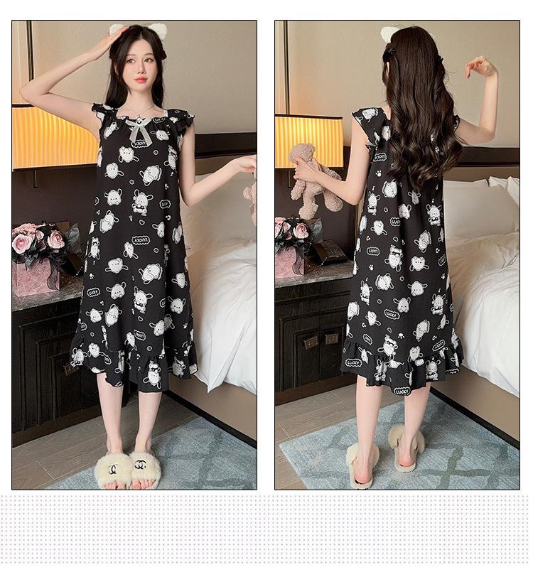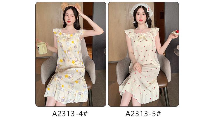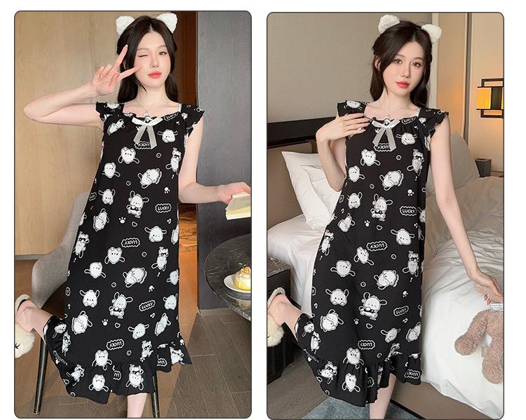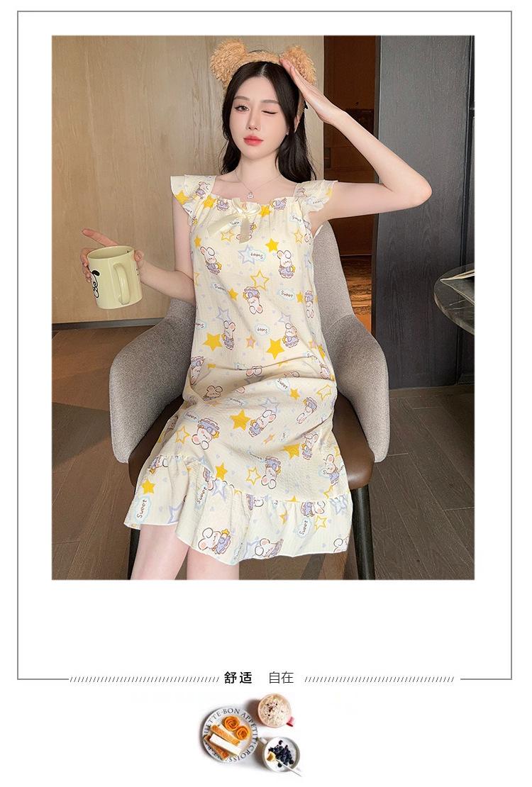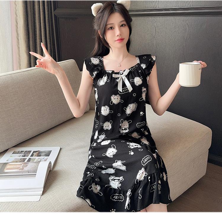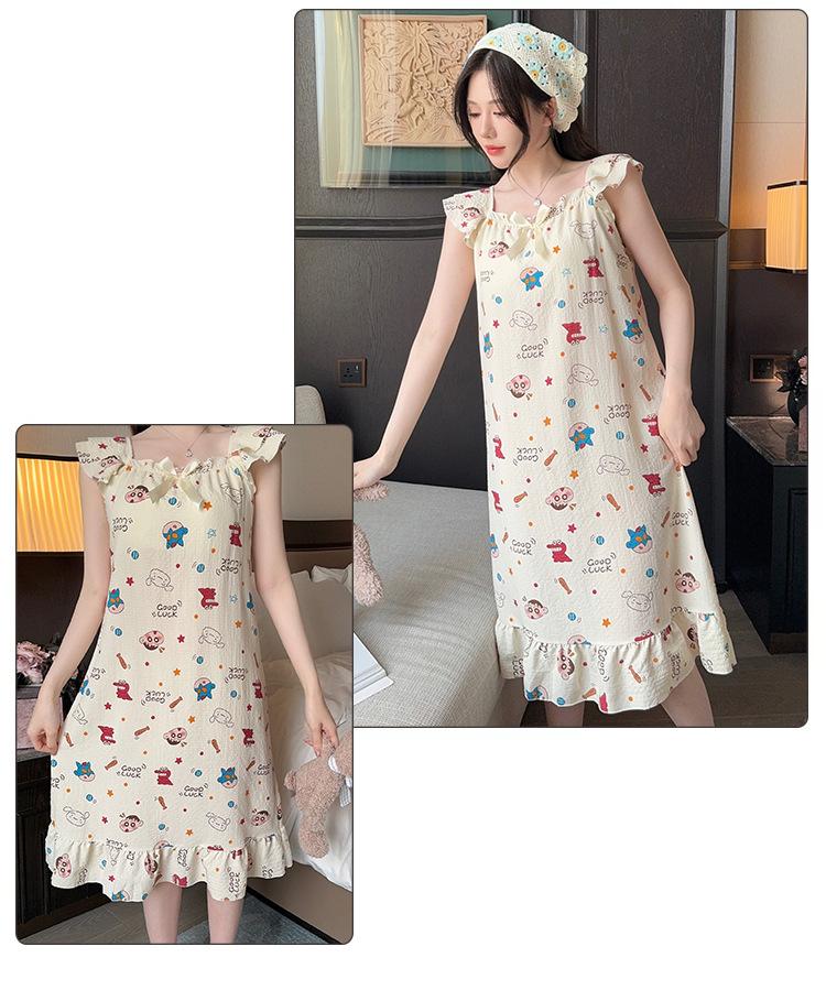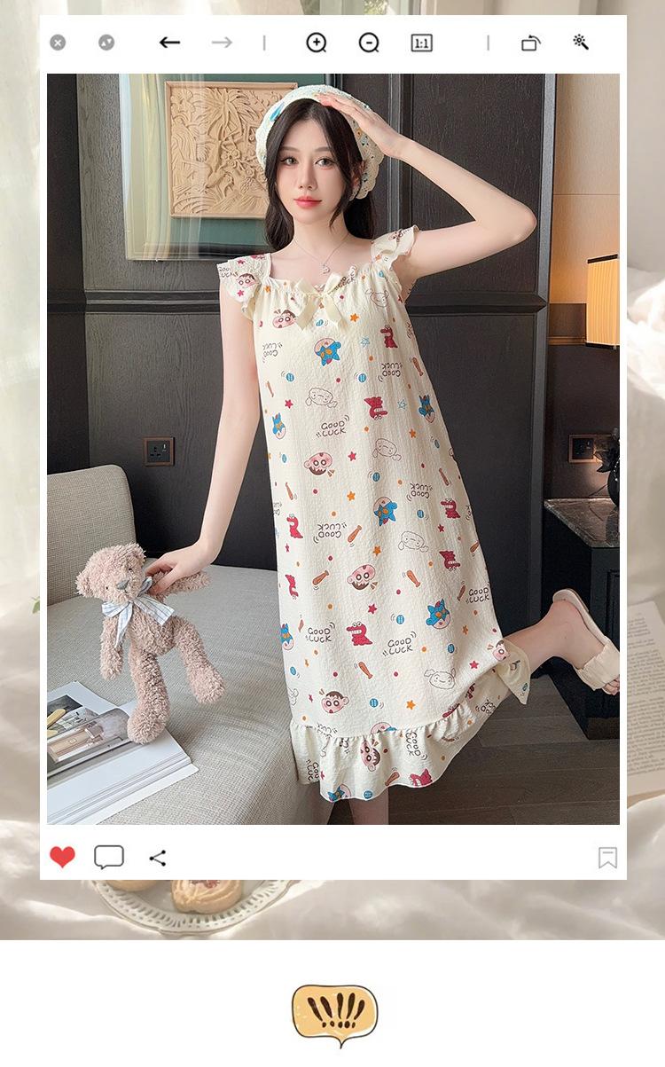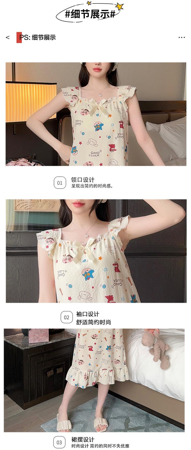 Camisón de Algodón Burbuja para Niña Verano 2024 Dulce Tirantes con Almohadilla en el Pecho Estilo Hada Delgado Casual Ropa de Casa para Estudiante