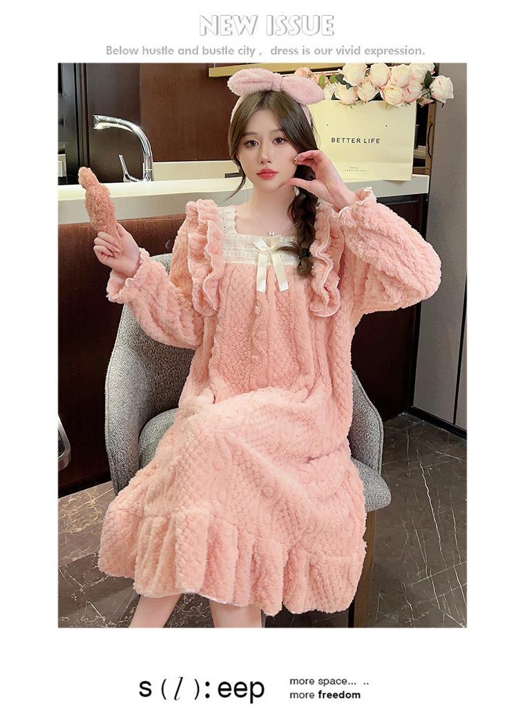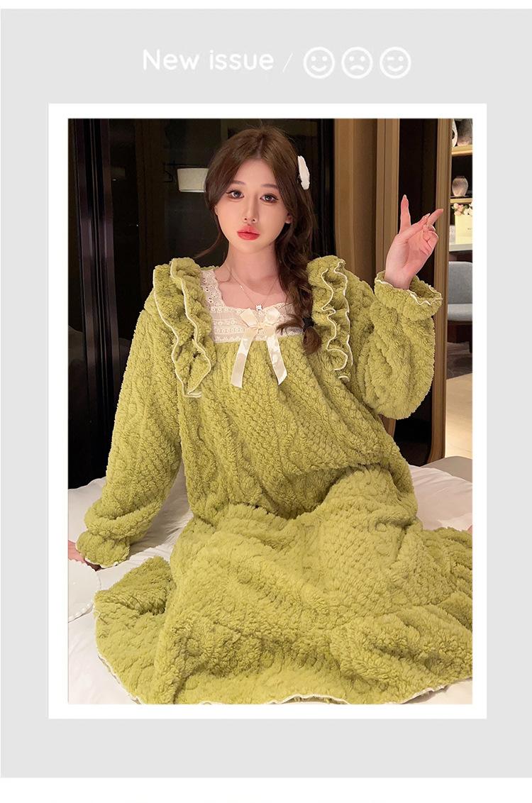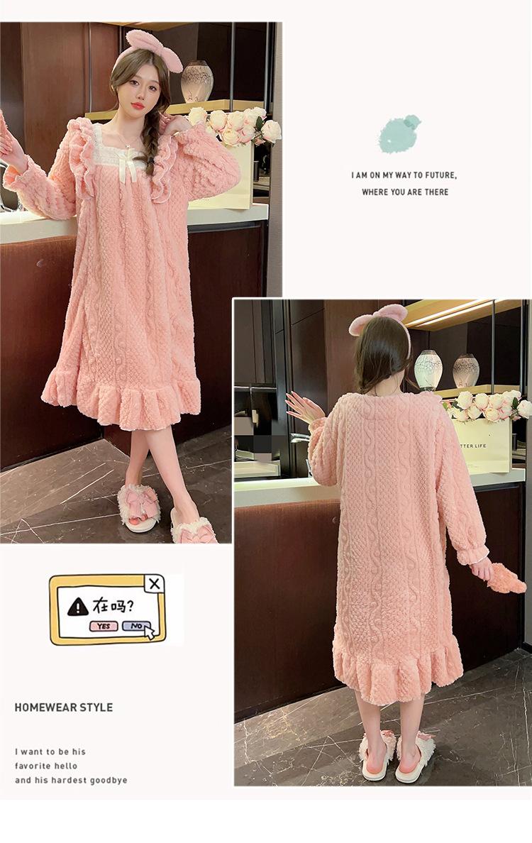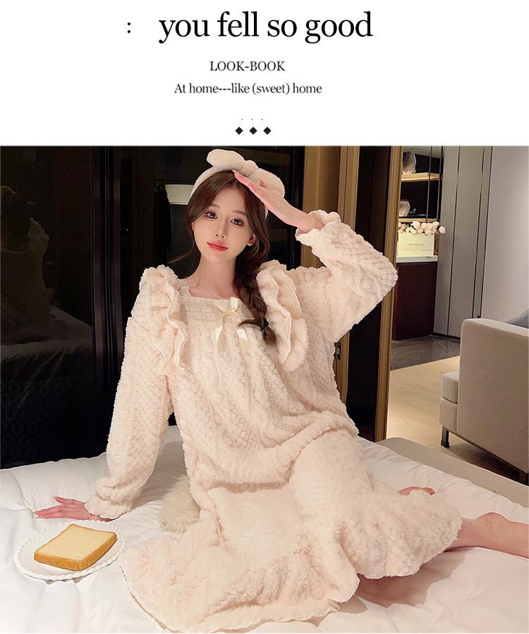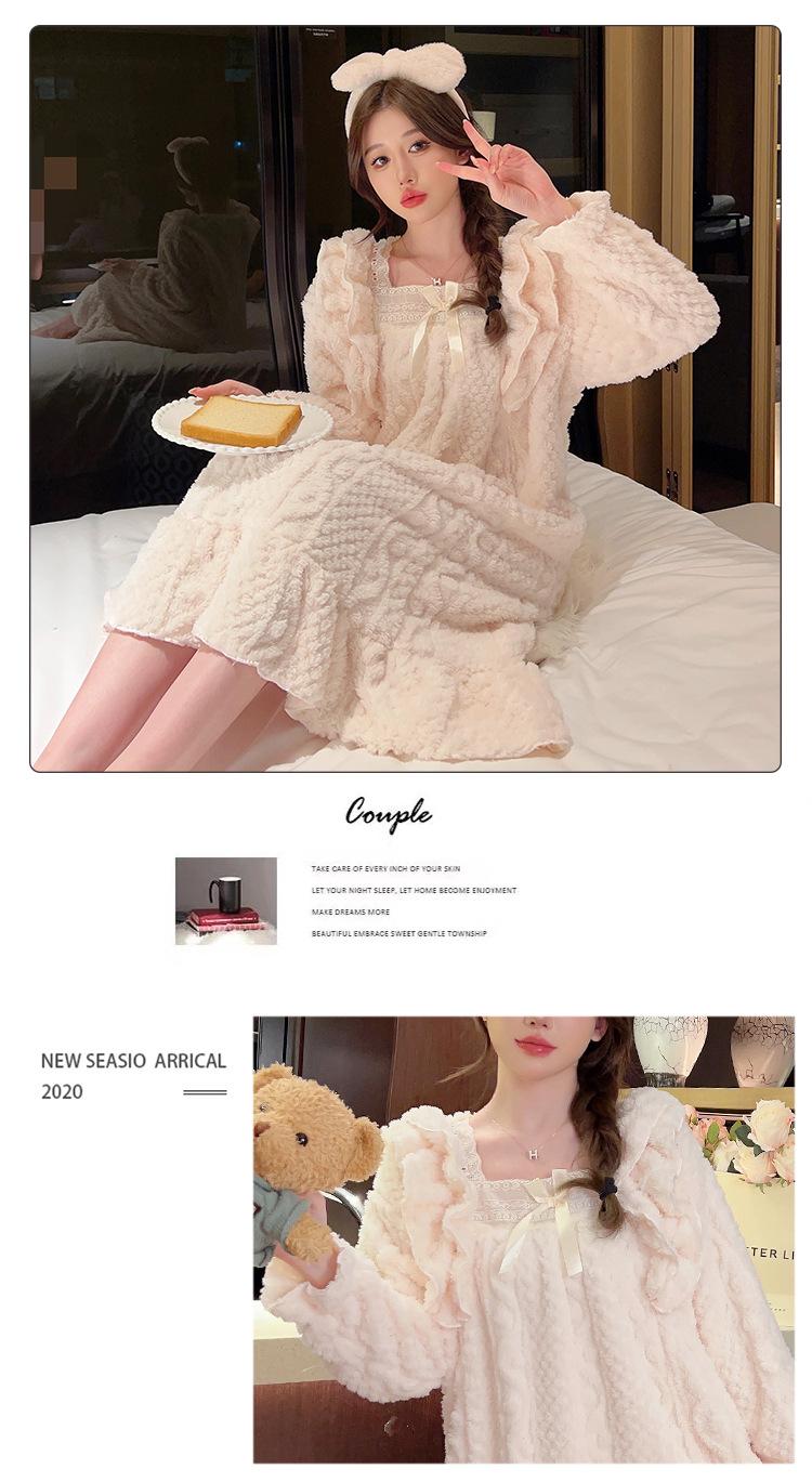 Otoño e Invierno camisón de felpa para mujer lindo dulce estilo princesa ins cuello cuadrado talla grande chica gordita ropa para el hogar