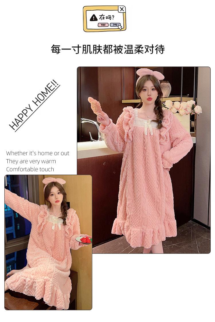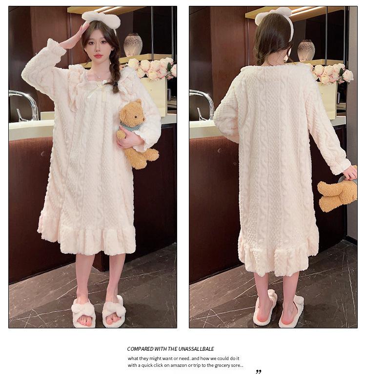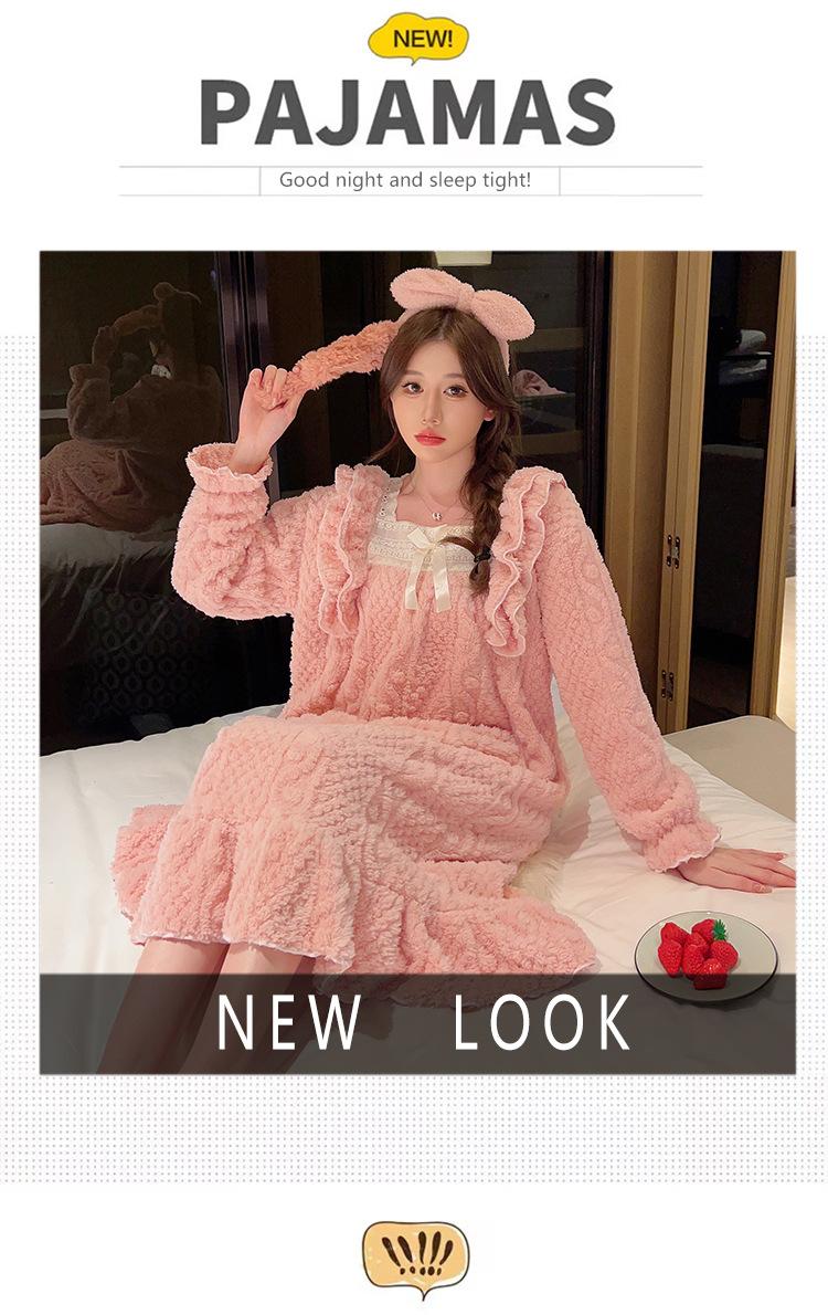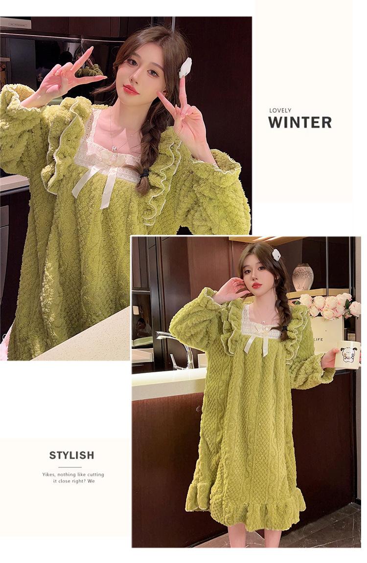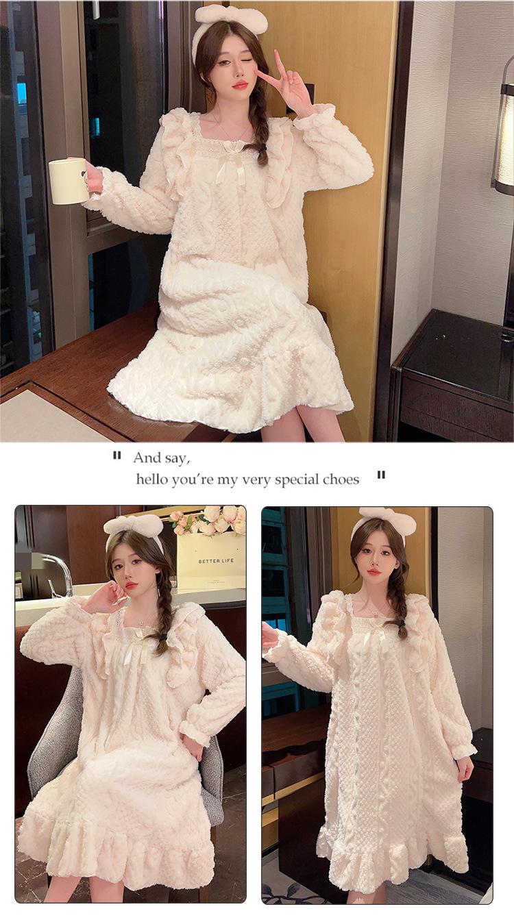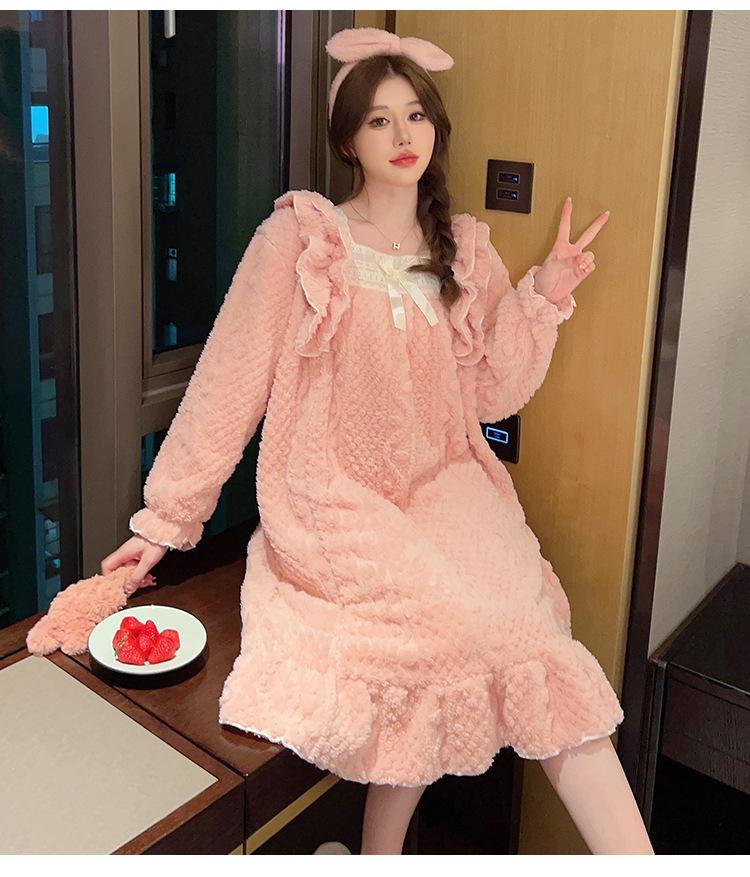 Otoño e Invierno camisón de felpa para mujer lindo dulce estilo princesa ins cuello cuadrado talla grande chica gordita ropa para el hogar