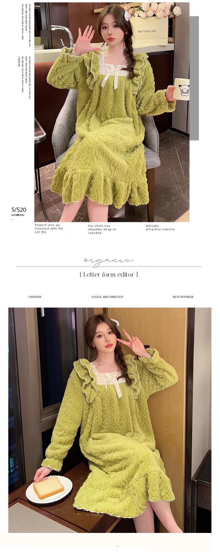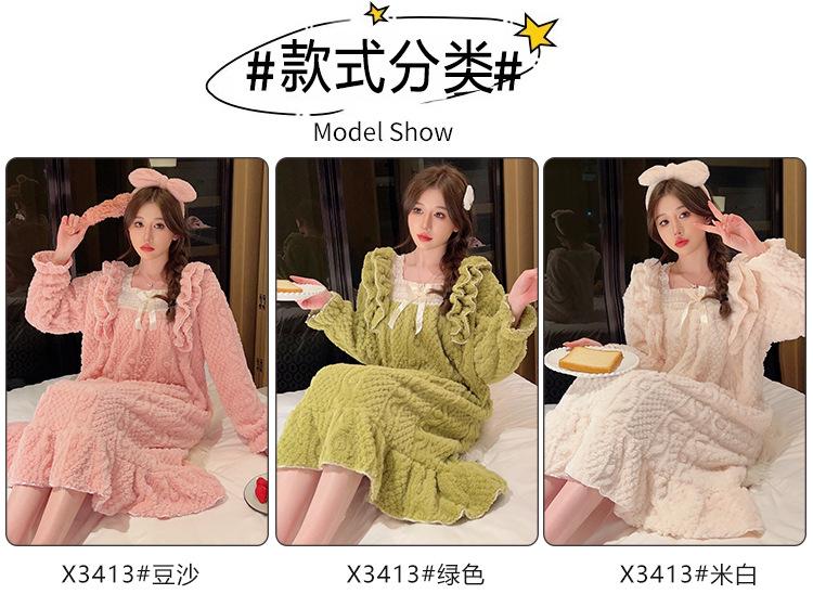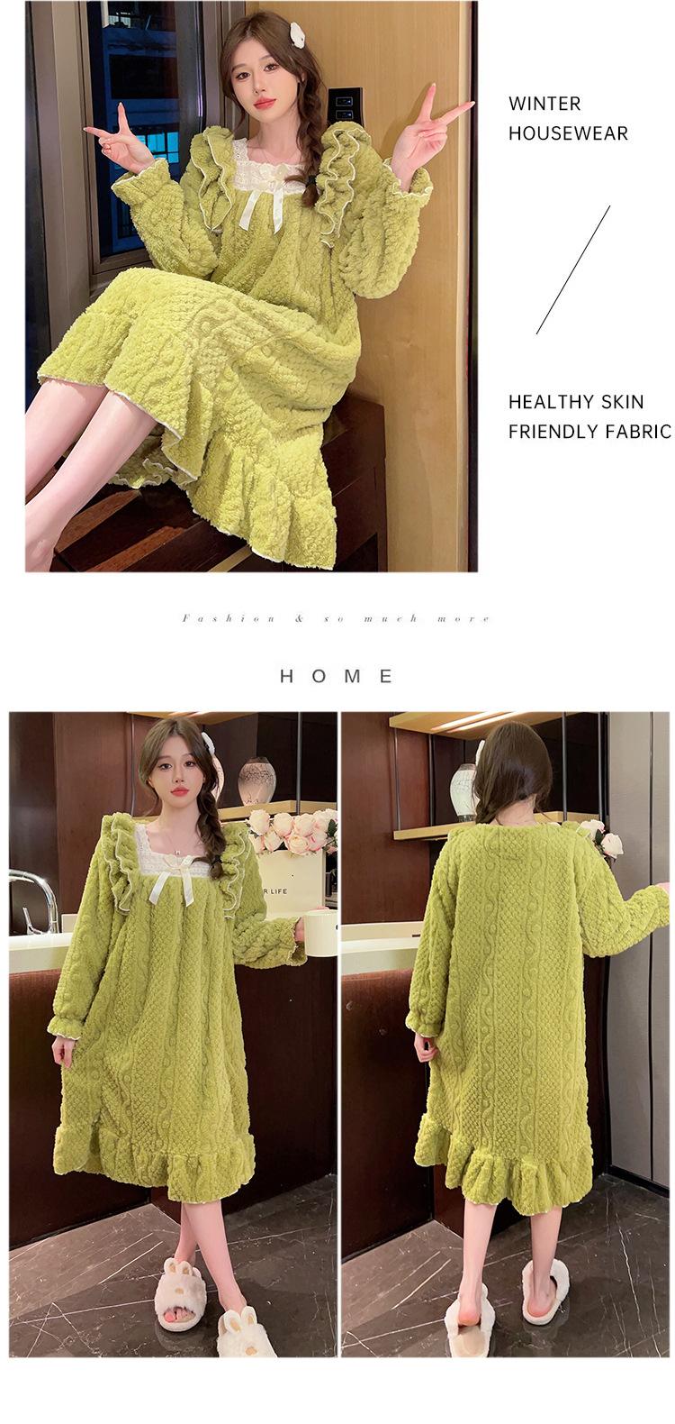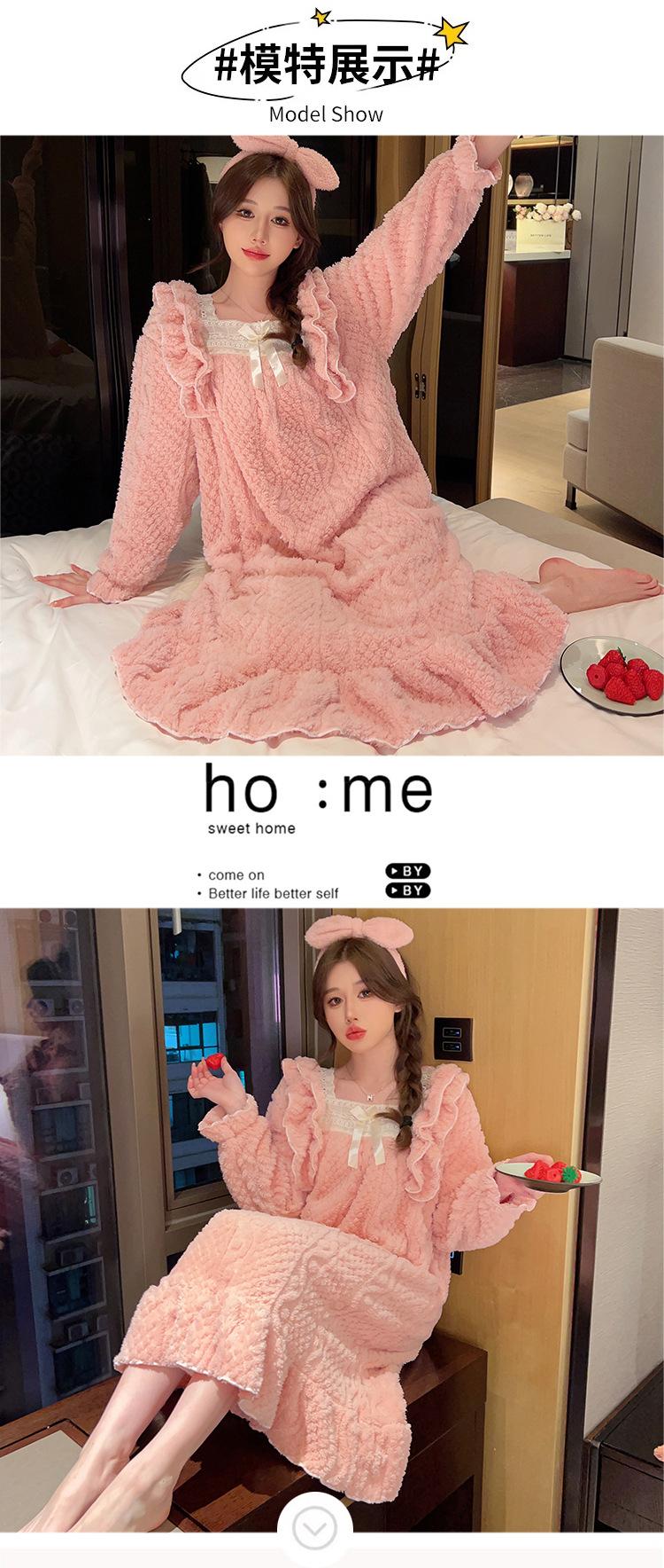 Otoño e Invierno camisón de felpa para mujer lindo dulce estilo princesa ins cuello cuadrado talla grande chica gordita ropa para el hogar