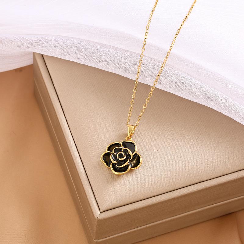 Collar Camellia de acero de titanio para mujer, primavera y verano 2023, cadena de clavícula de estilo fragante de alta calidad, combinable con todo, cadena de lana ligera de lujo.
