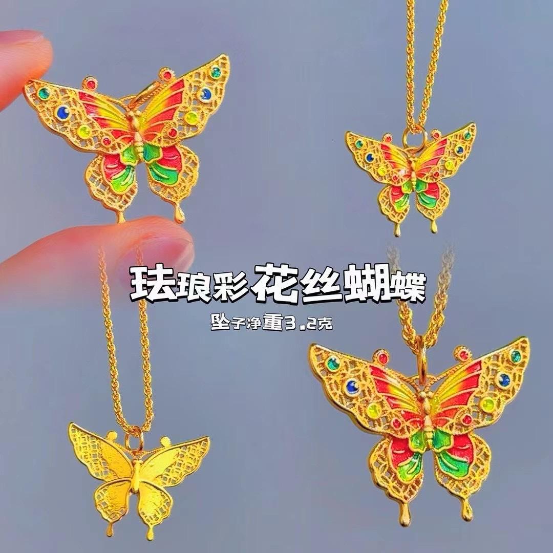 Colgante de mariposa de seda esmaltada estilo palacio para mujer, chapado en oro, temperamento Han, ropa con colgante, suministro de joyería al por mayor