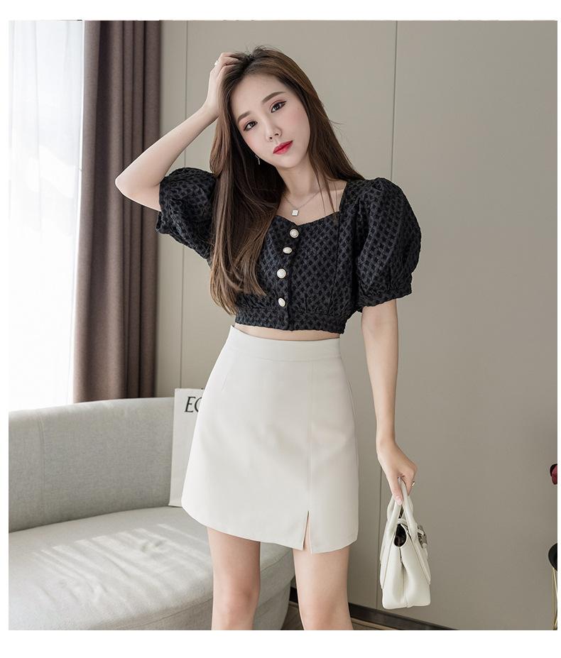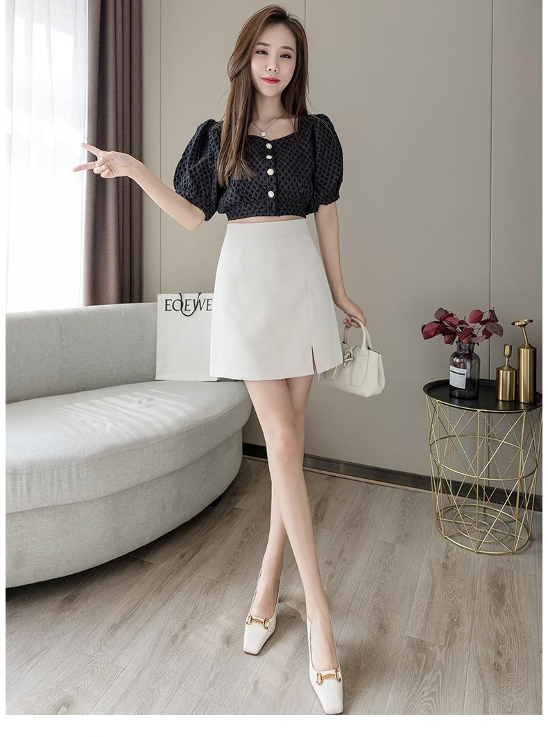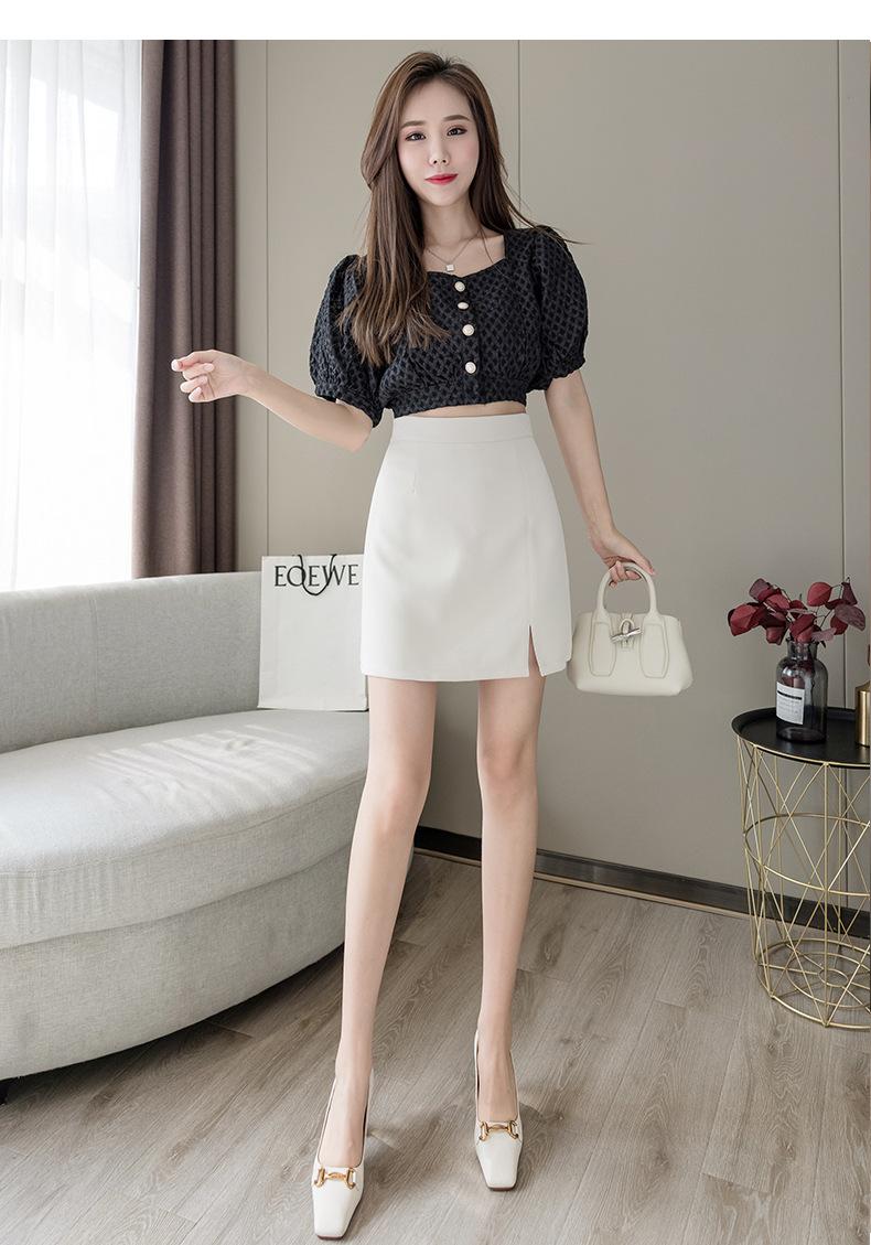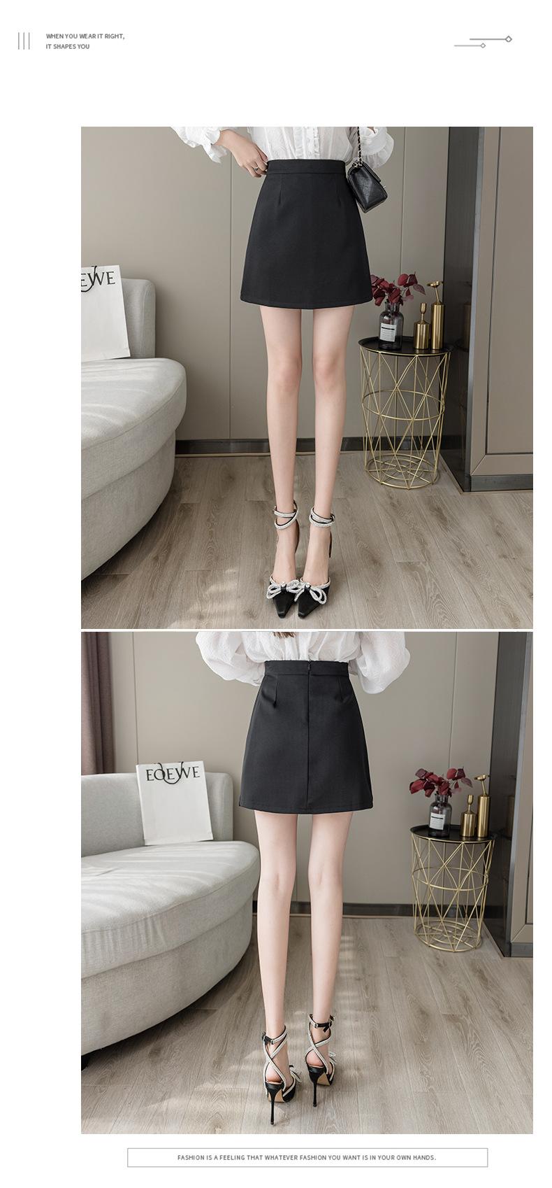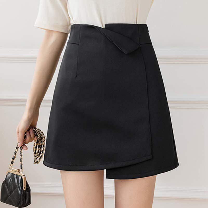 Falda negra de cintura alta con abertura para mujer, ropa de verano 2023, nueva falda profesional de corte A, falda corta, falda a la cadera