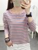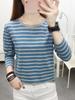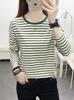 Camiseta holgada de manga larga para mujer, versión coreana de talla grande, combina con todo, ropa a rayas, otoño 2024