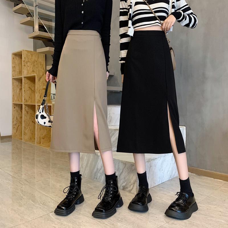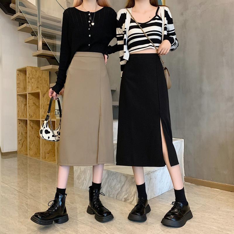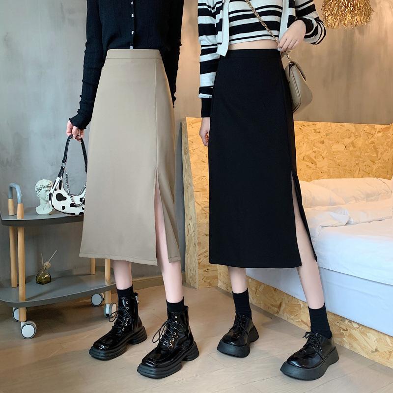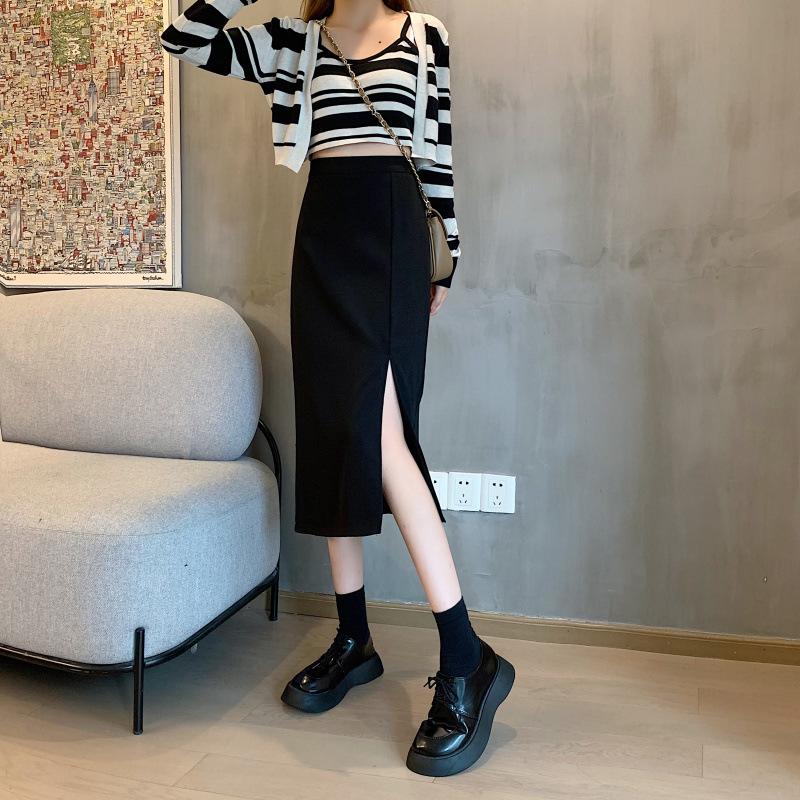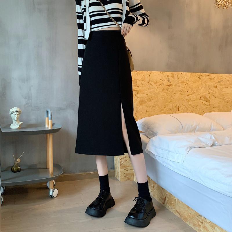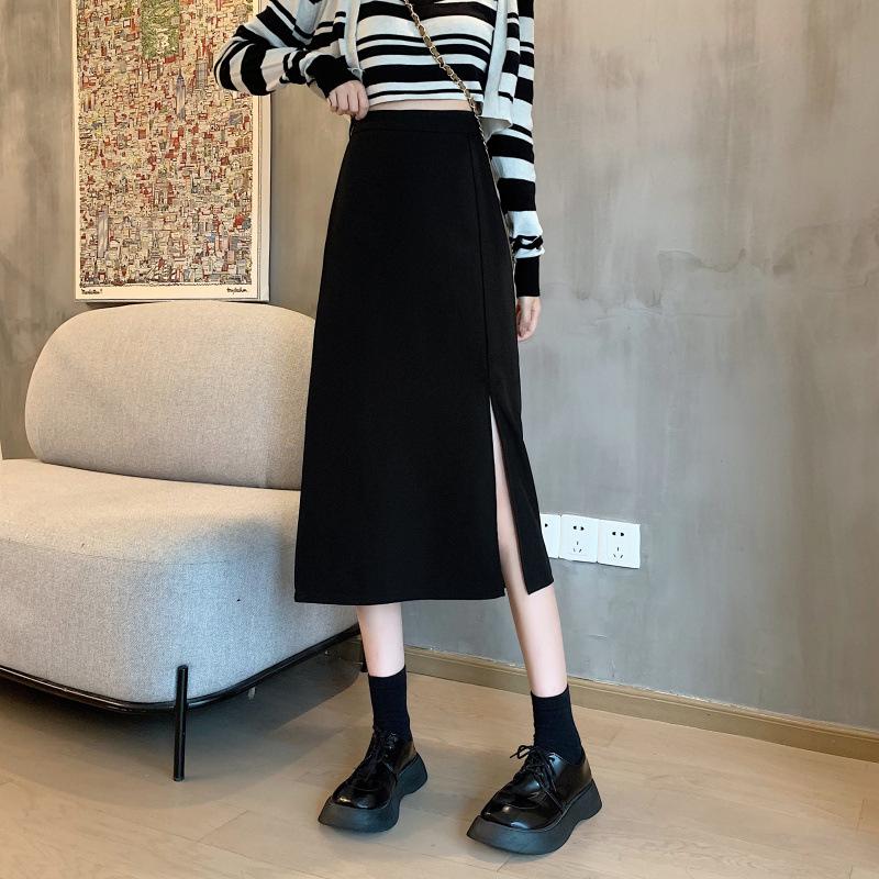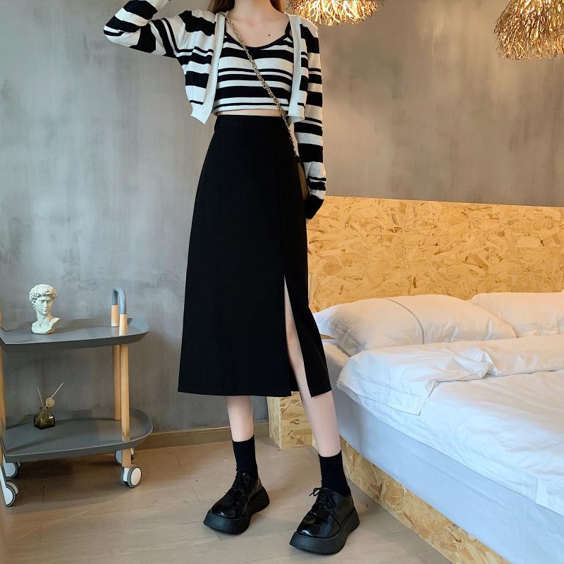 Falda de verano para chicas gorditas, de talla grande, nueva, de cintura alta, adelgazante, con abertura, de longitud media, fina, de corte A, falda negra a la cadera