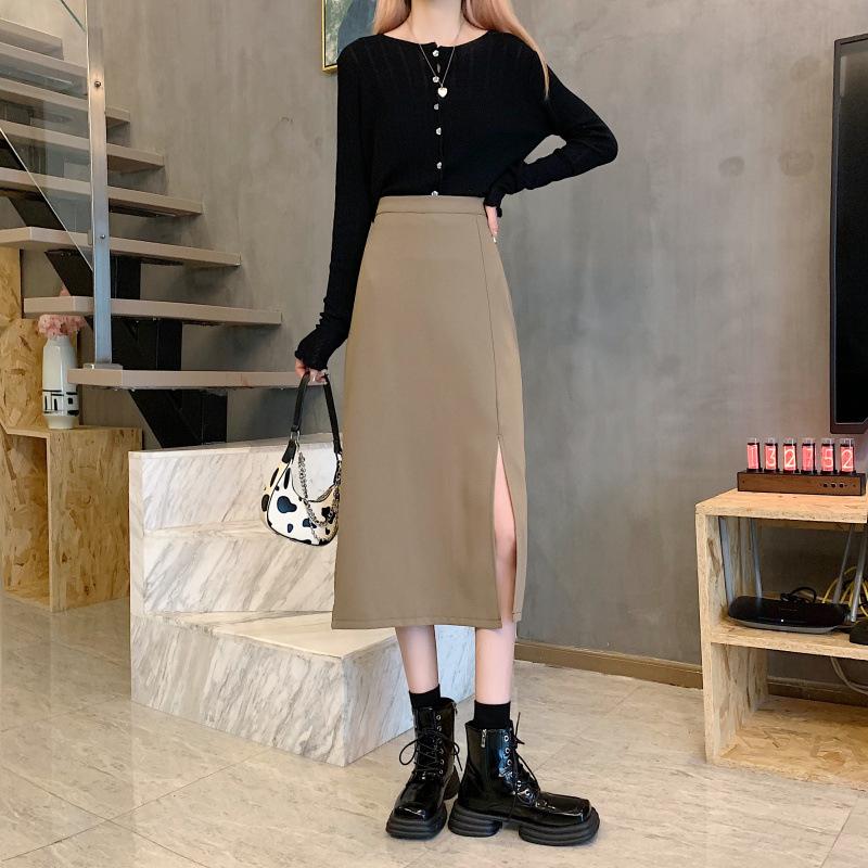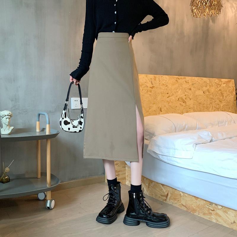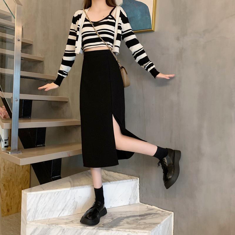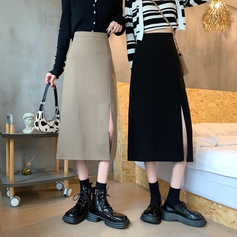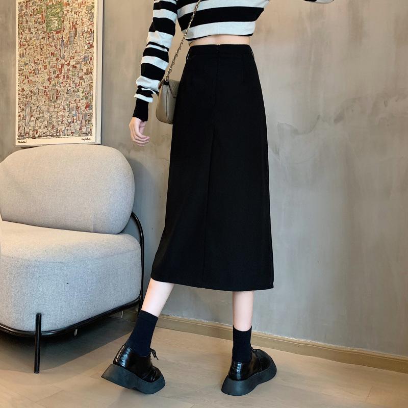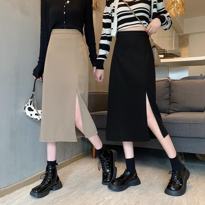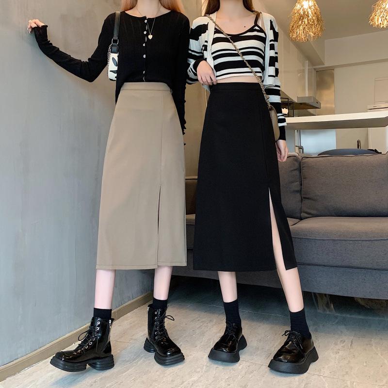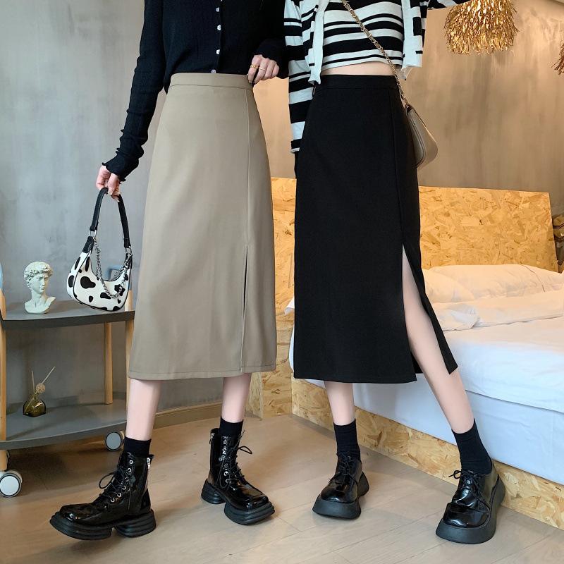 Falda de verano para chicas gorditas, de talla grande, nueva, de cintura alta, adelgazante, con abertura, de longitud media, fina, de corte A, falda negra a la cadera