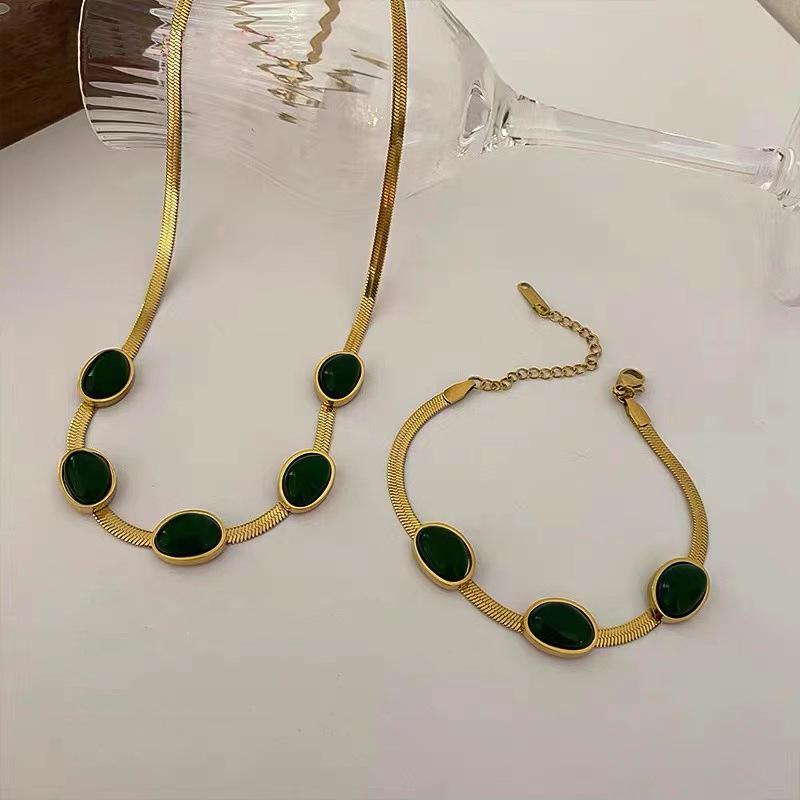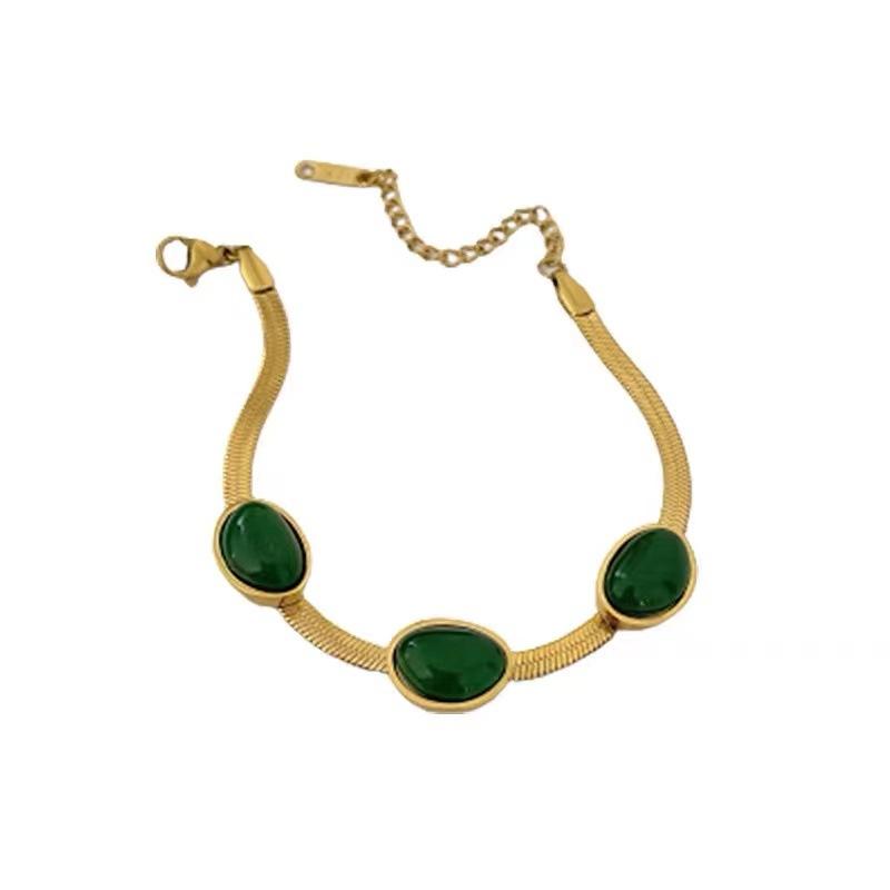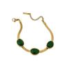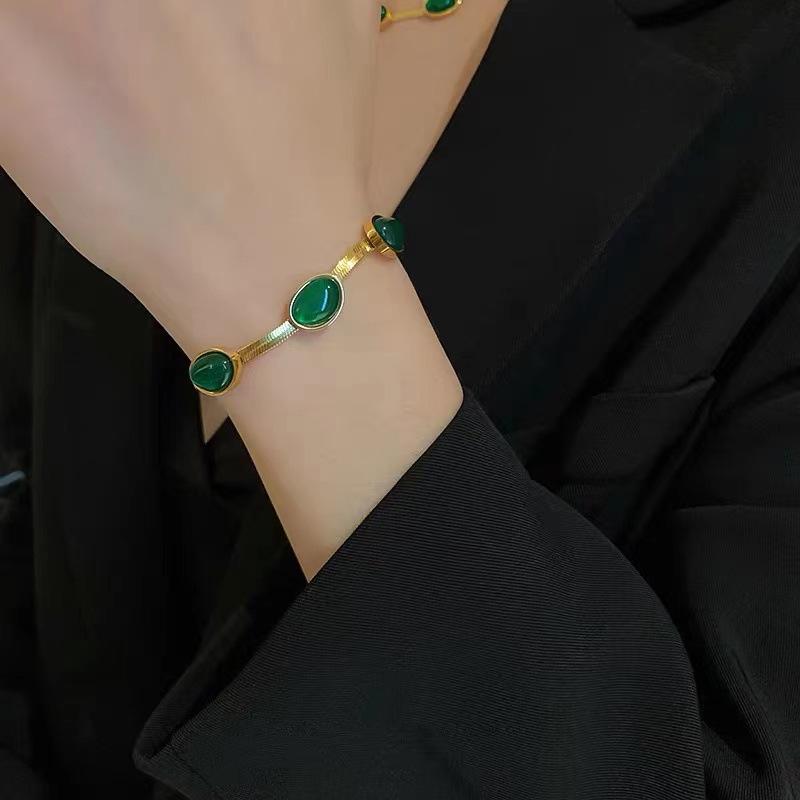 Pulsera de Cadena de Acero de Titanio Retro Hoja Esmeralda para Mujer Simple Elegante Sensación de Alta Gama Oro Sensación de Diseño Famoso