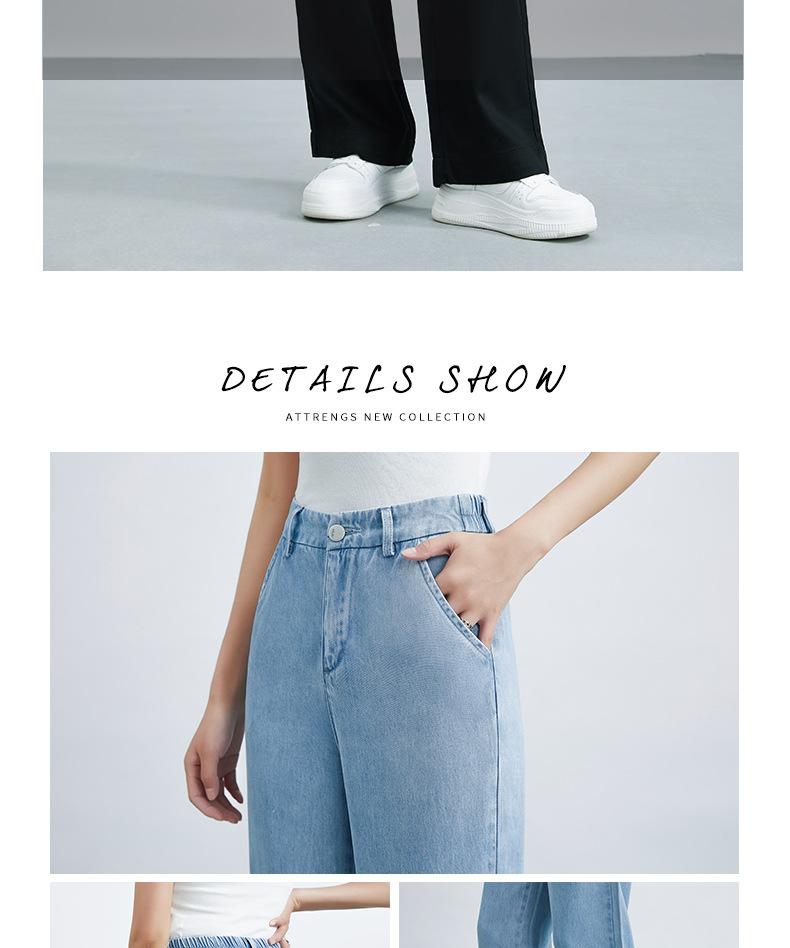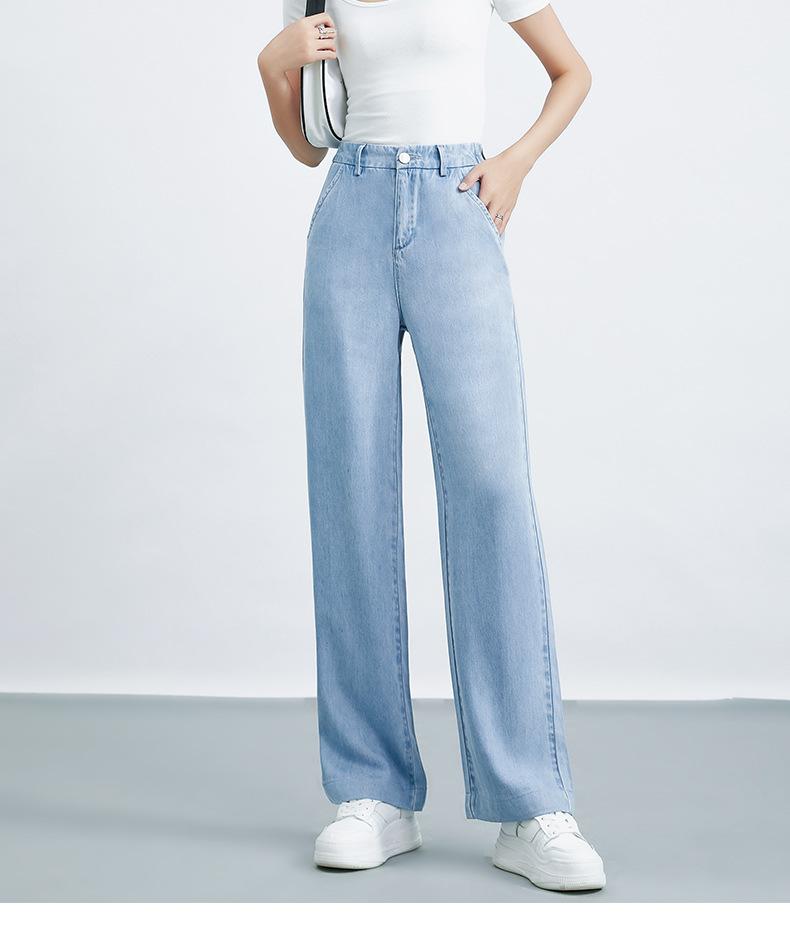 Pantalones anchos de Tencel para mujer, verano 2025, finos, sueltos, adelgazantes, rectos, de mezclilla negra, cintura alta, drapeados.