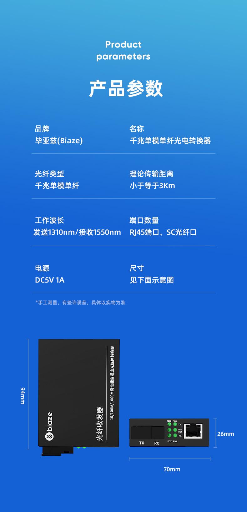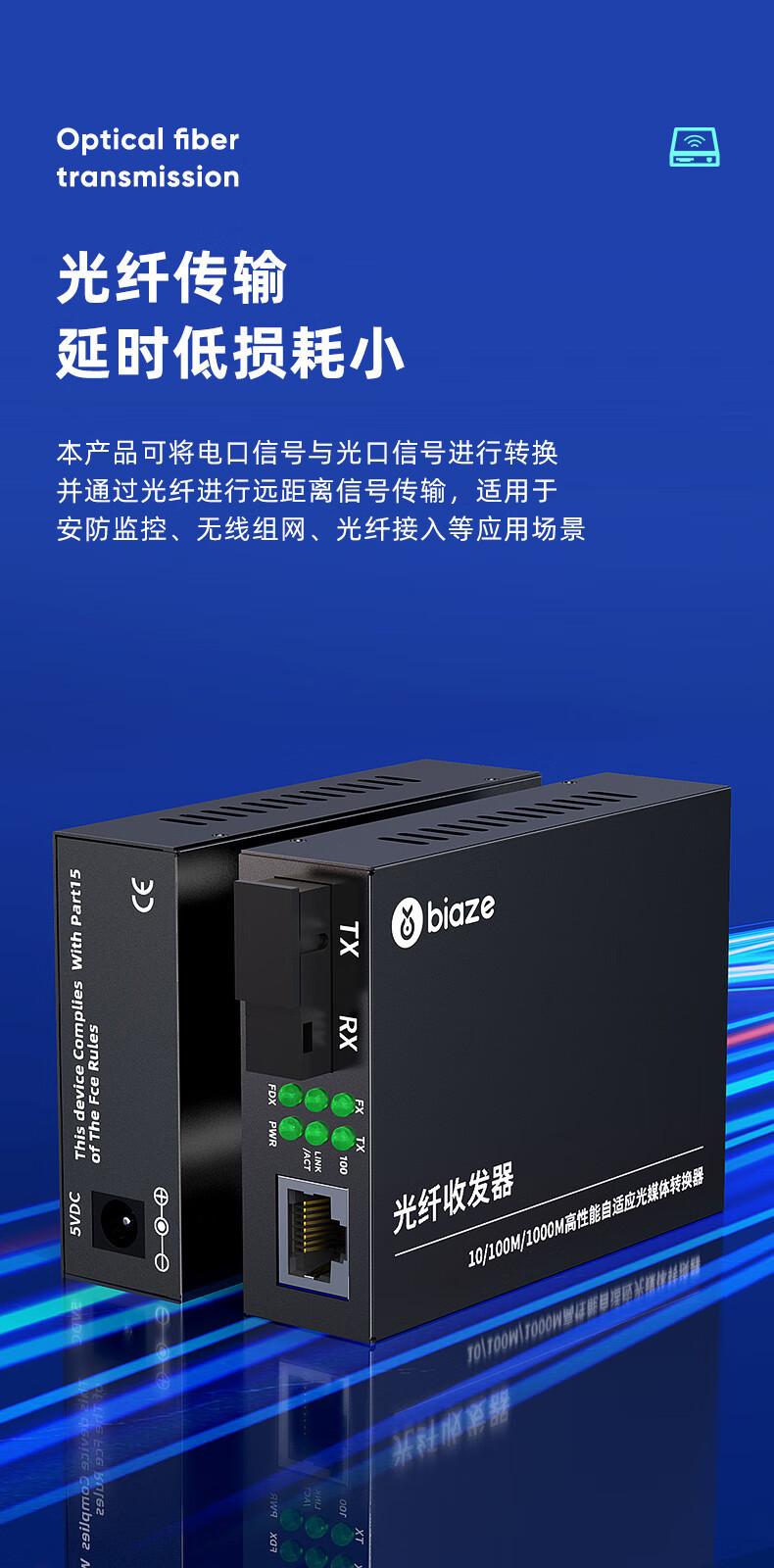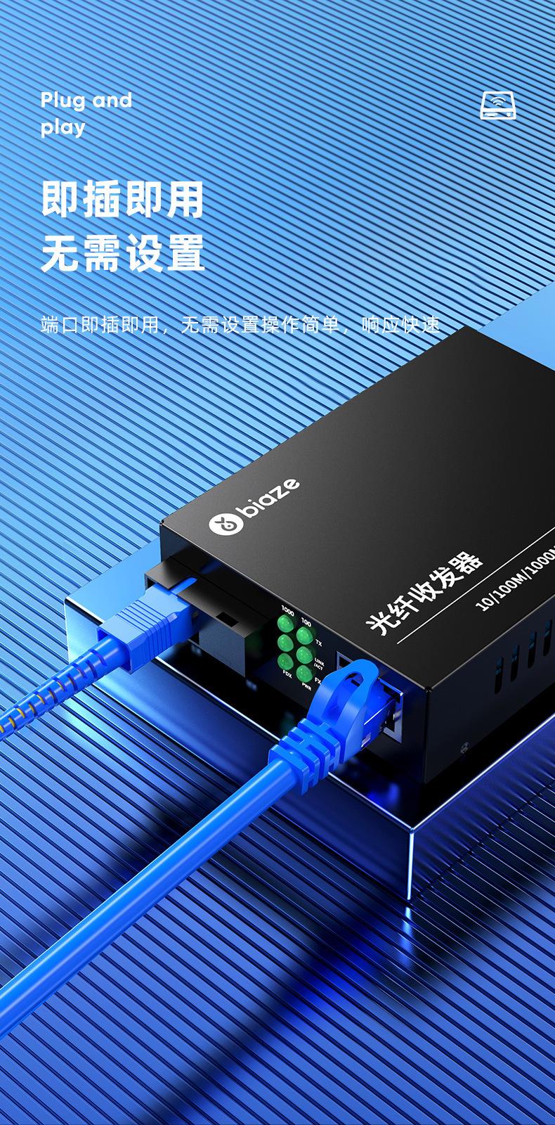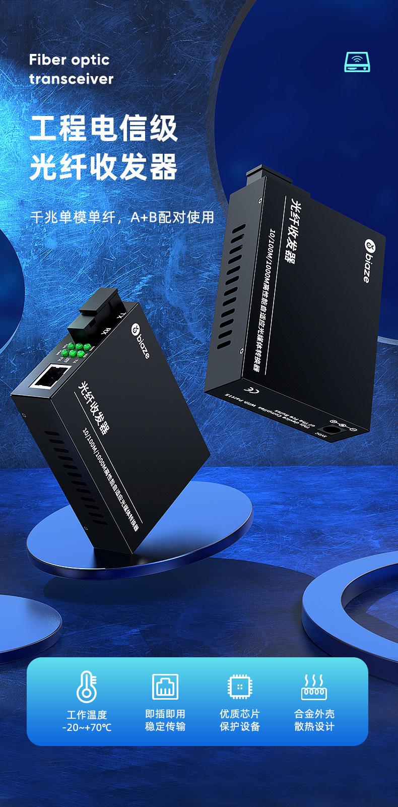 Transceptor de fibra óptica Biaz, convertidor fotoeléctrico de fibra única monomodo de par Gigabit, transceptor óptico de red, monitoreo de red