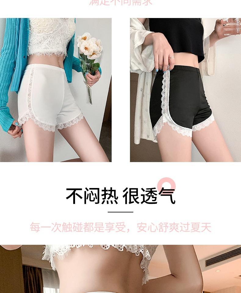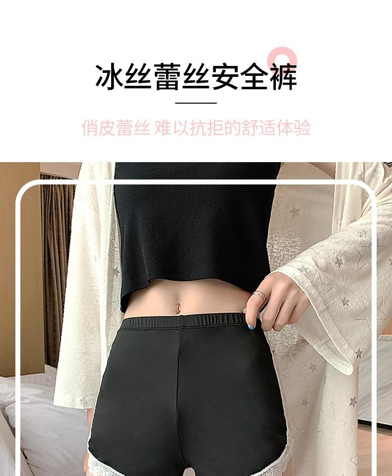 Pantalones de seguridad de tres puntos encaje anti-luz ropa para el hogar negro Seda de Hielo cómodos ajustados shorts básicos de verano 3015