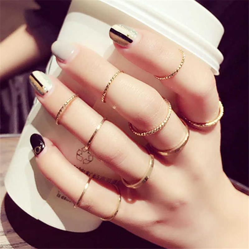 Corea del Sur Nuevo Anillo de Diez Piezas de Personalidad Simple para Mujer Juego de 10 Piezas Anillo de Articulación Anillo Delgado Decoraciones para el Dedo Índice