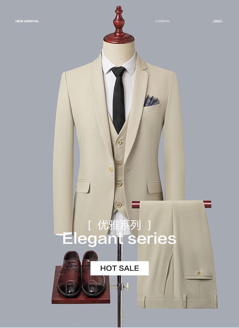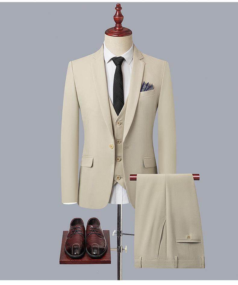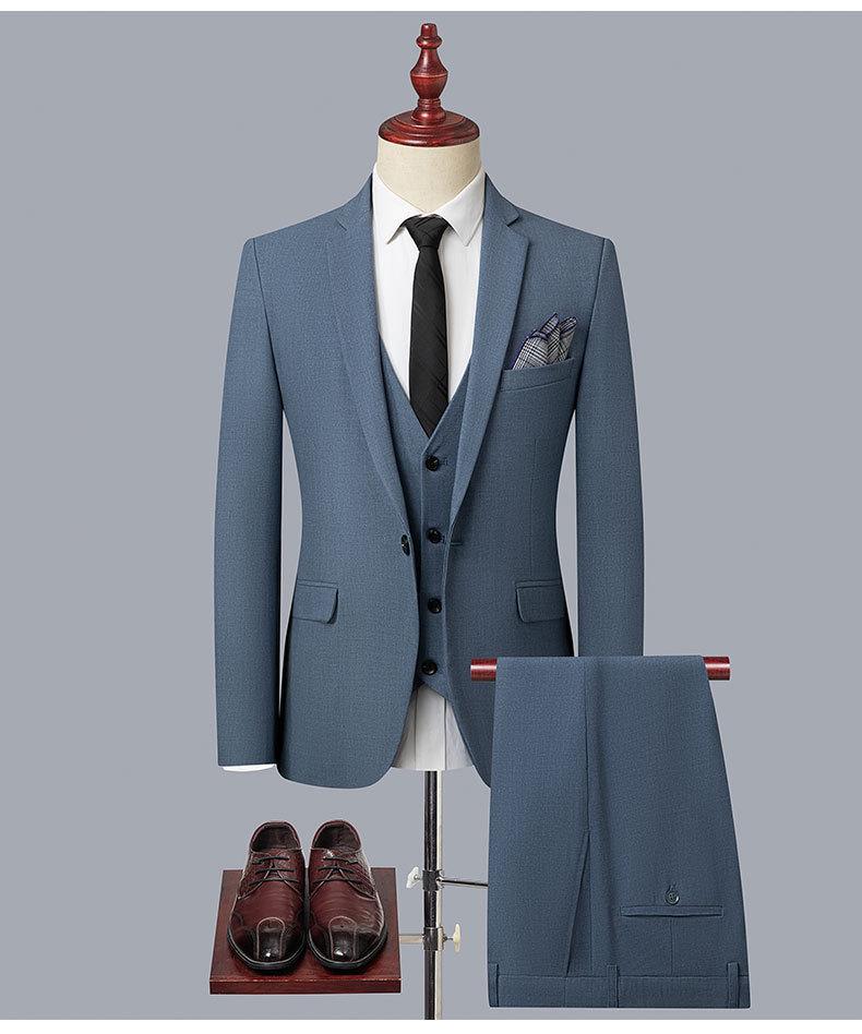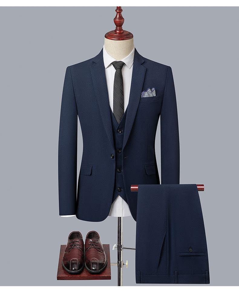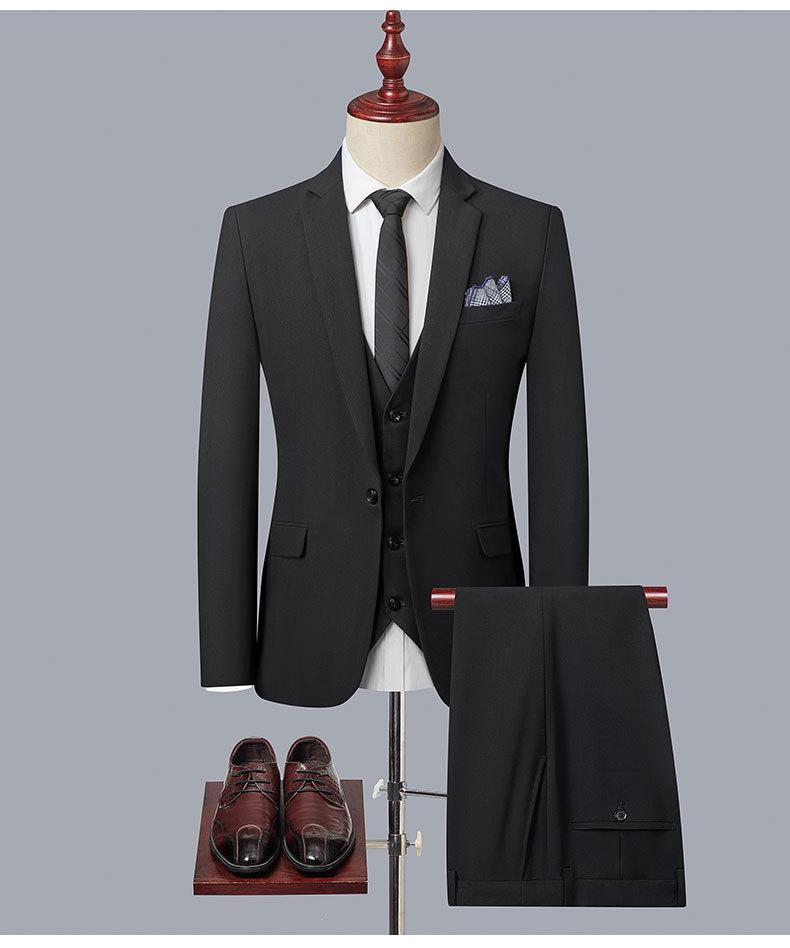 Conjunto de traje para hombre, estilo británico coreano, corte entallado, conjunto de negocios de tres piezas, regalo para padrino, ropa, traje combinado de licra para hombre