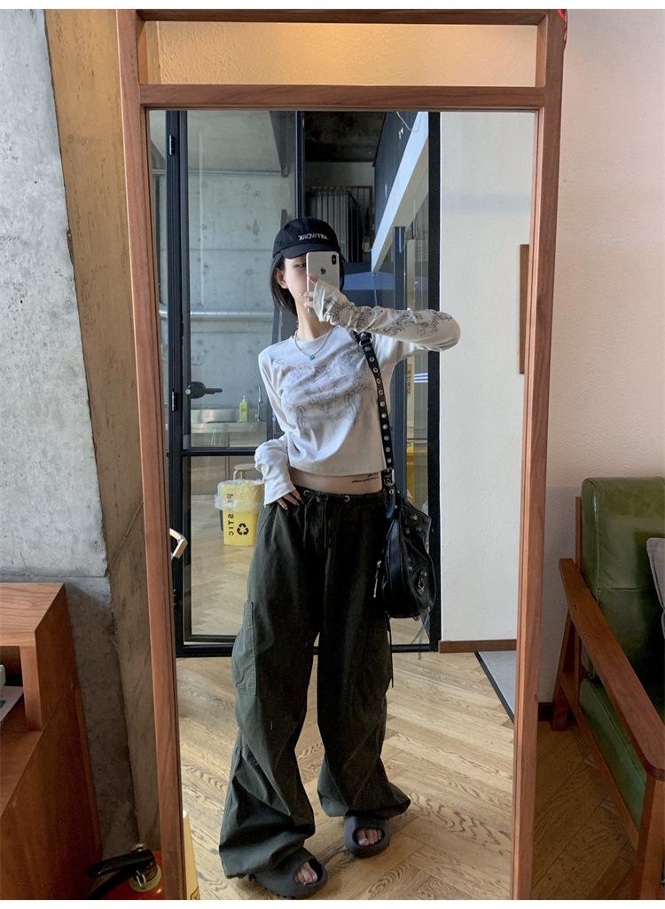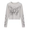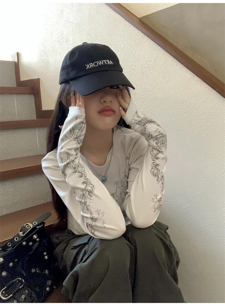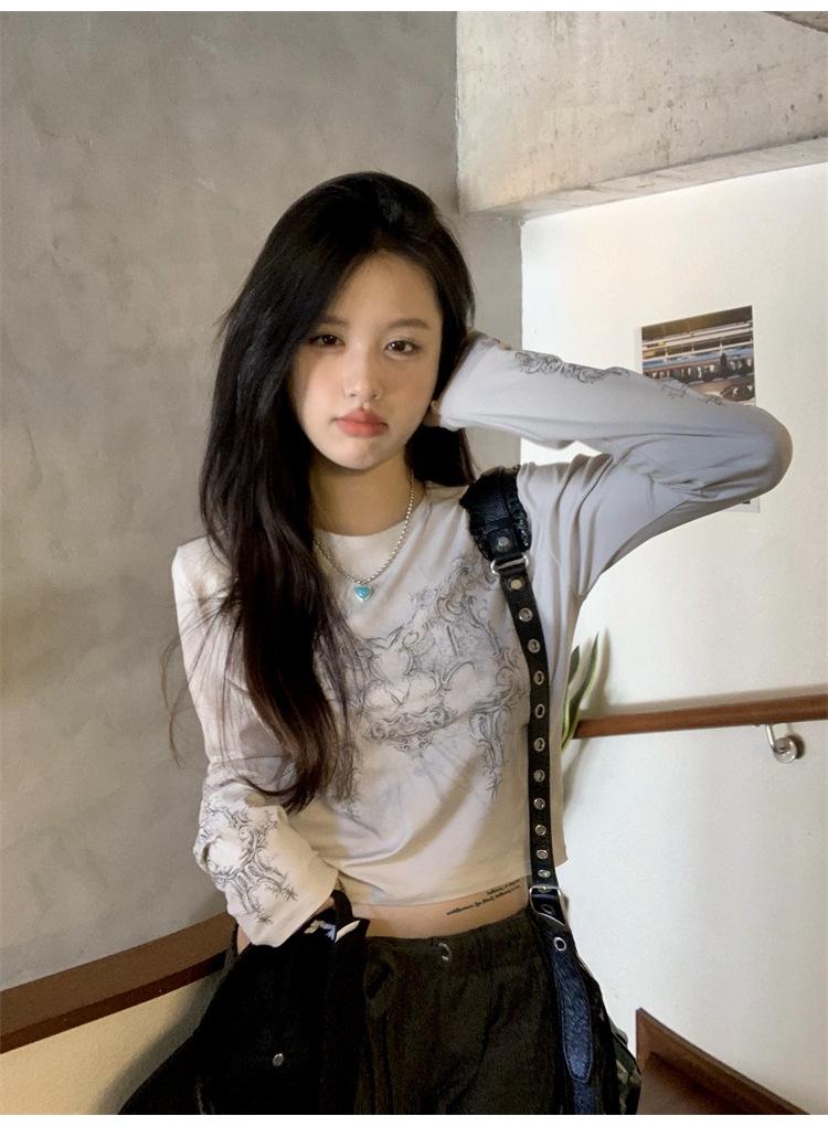 Playera Corta Estampada Retro Chic para Mujer 2025 Nuevo Diseño Nicho de Otoño Temprano Slim Slim de Manga Larga