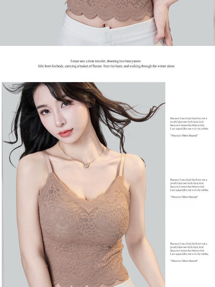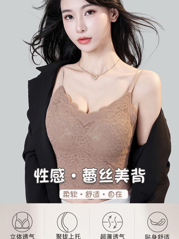 Camisola de encaje de primavera y verano para mujer, sujetador sin costuras con almohadilla para el pecho, ropa interior de una pieza, ropa exterior, ropa interior adelgazante para la espalda